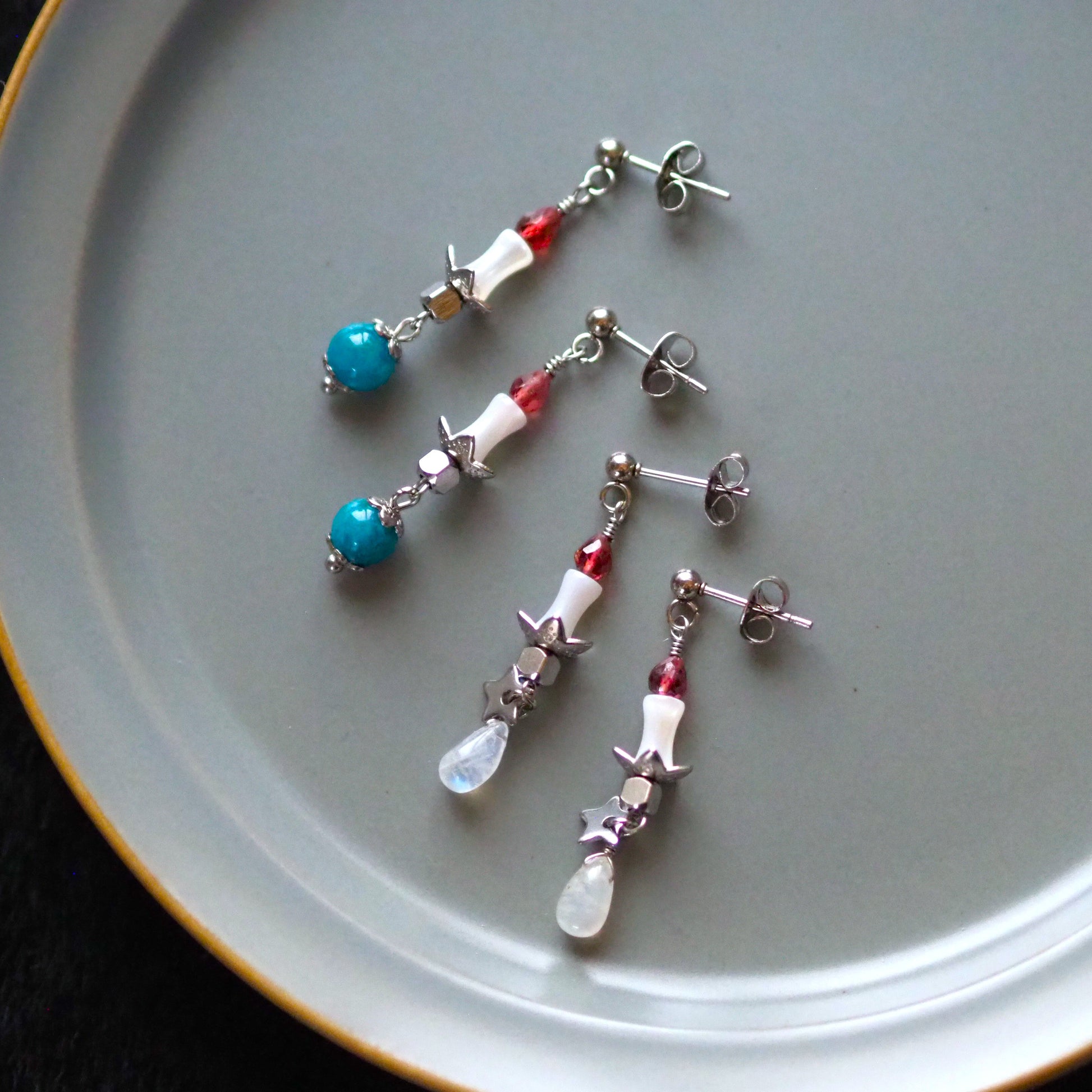 シェルとガーネットでロウソクをイメージしたアクセサリーです。