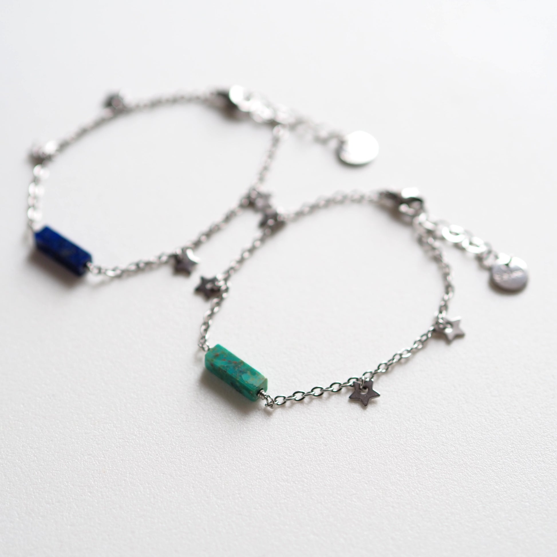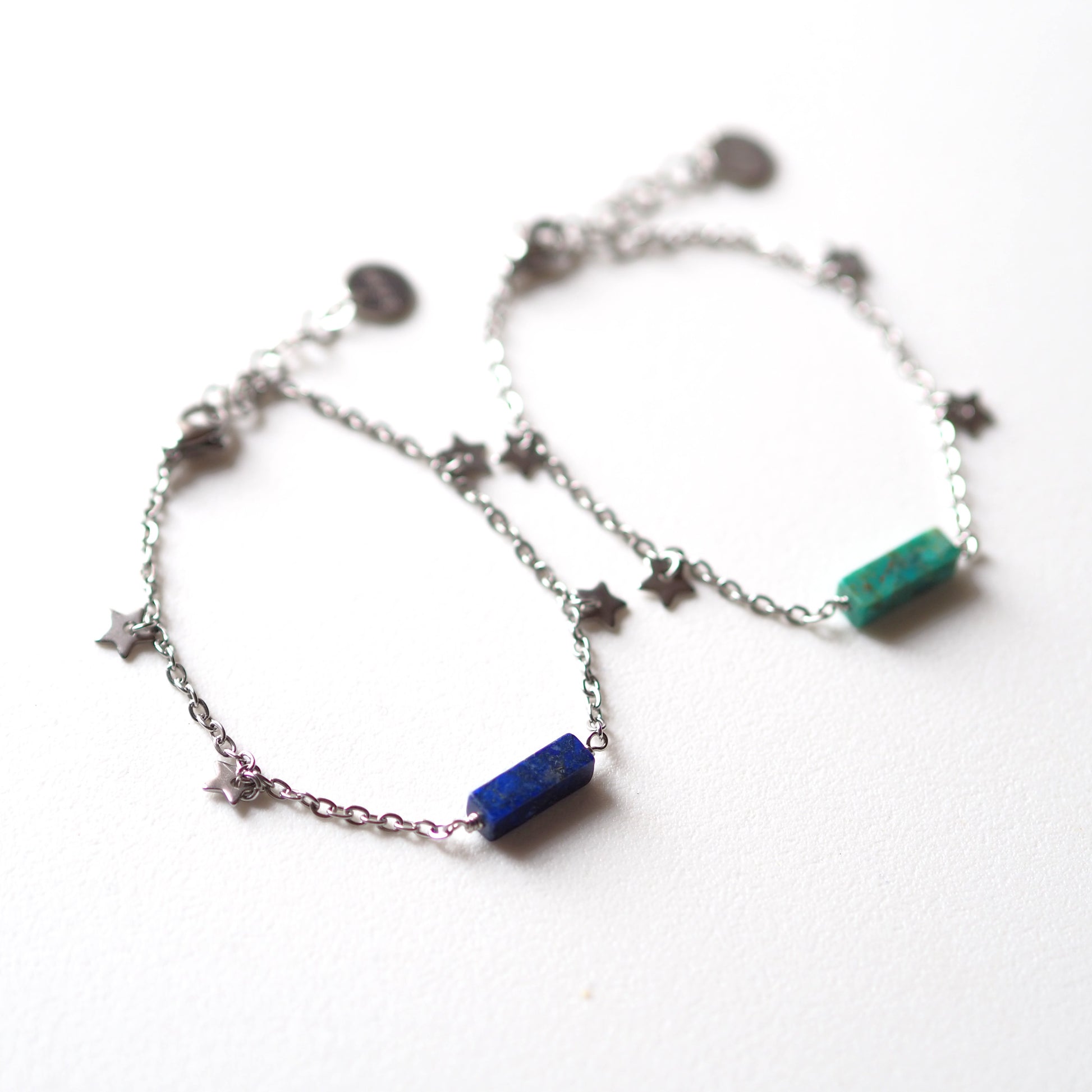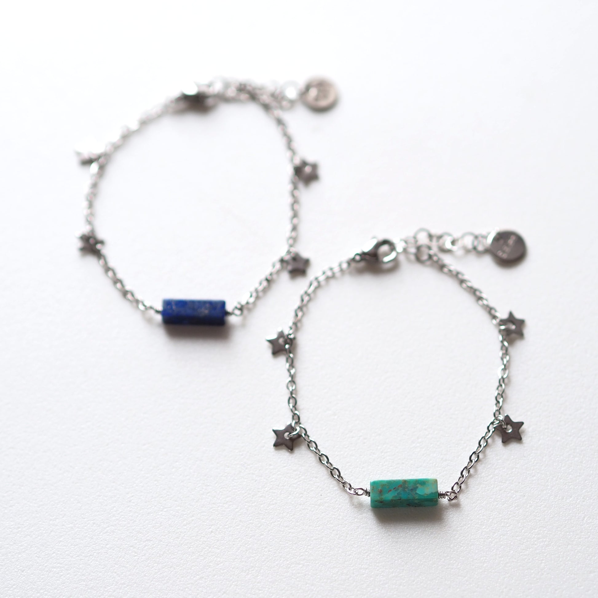 小さなラピスラズリとターコイズを使ったブレスレットです。