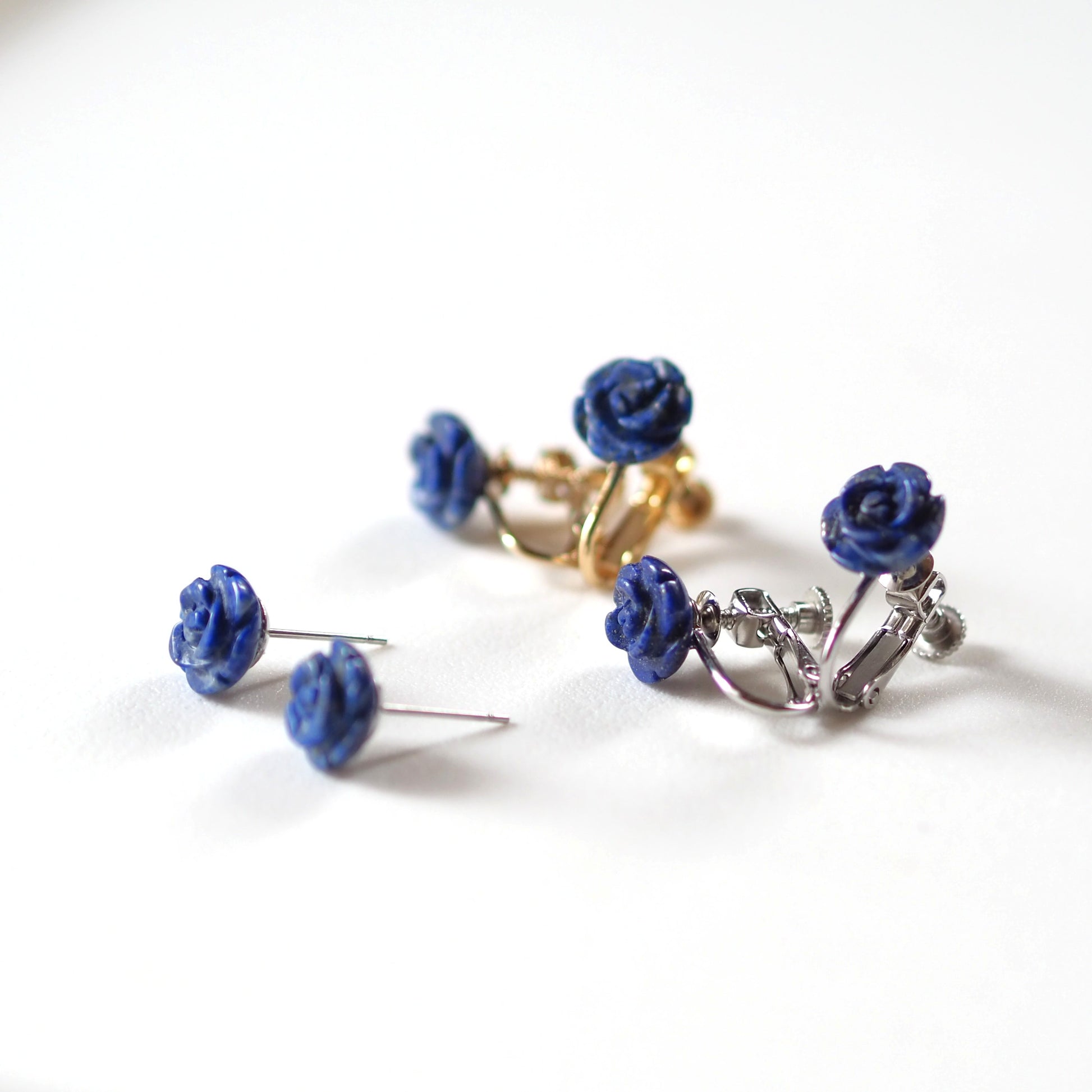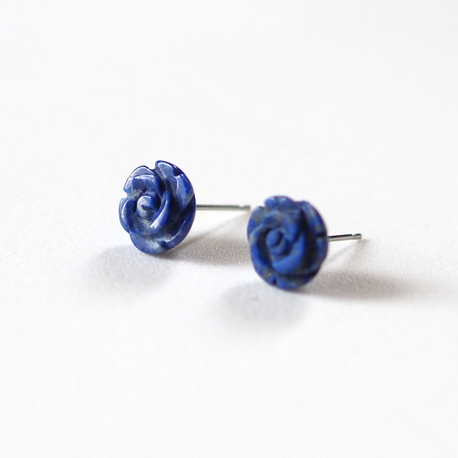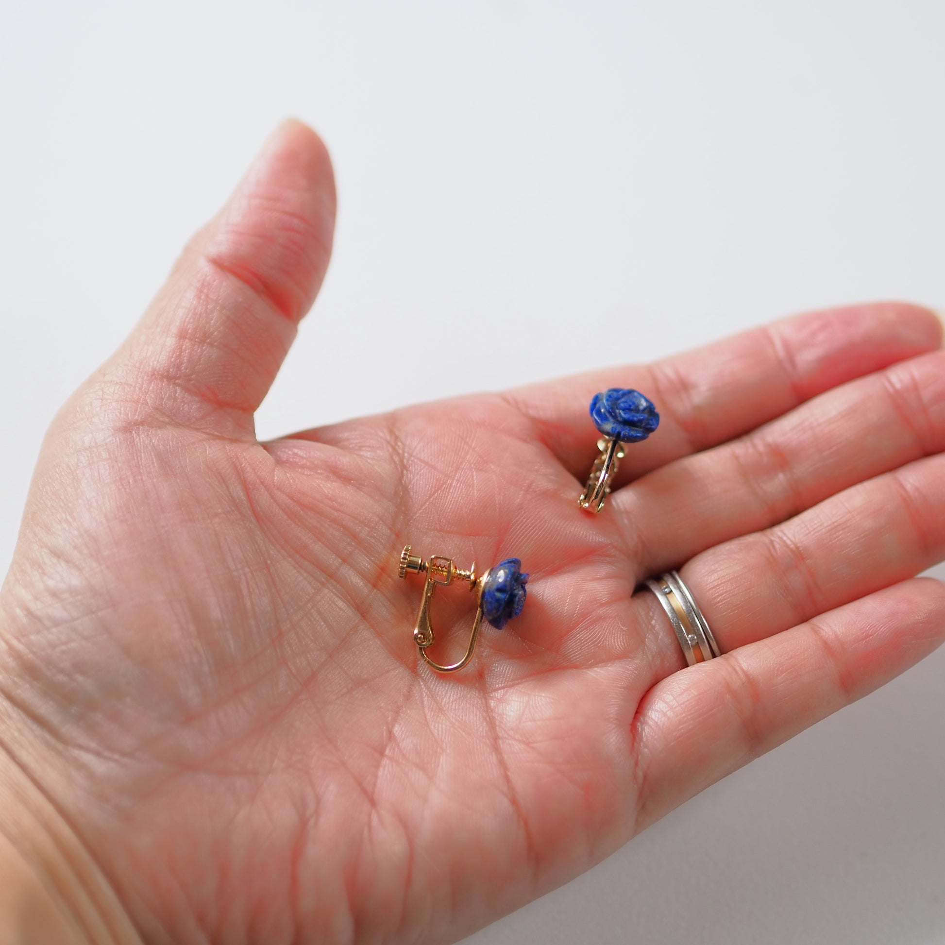 小さすぎず、大きすぎない10mmのラピスラズリのバラの耳飾りです。