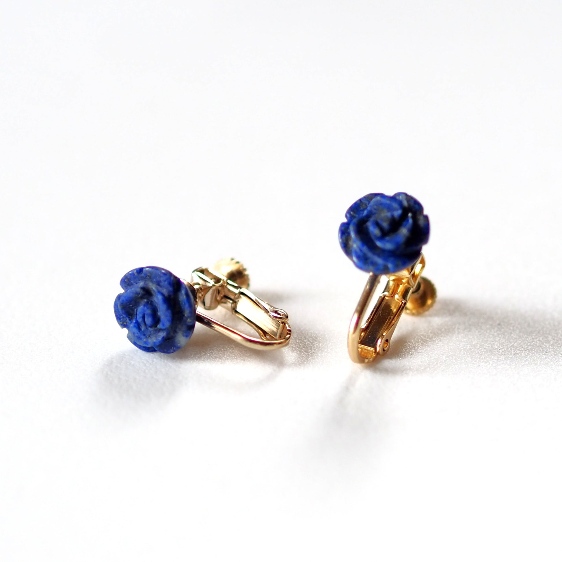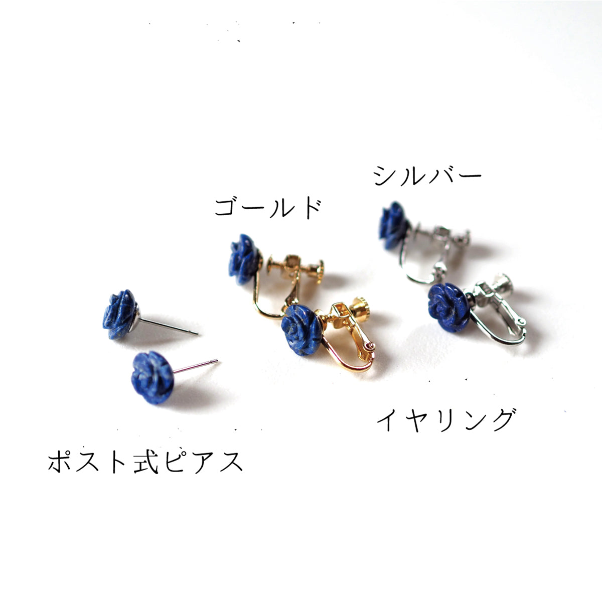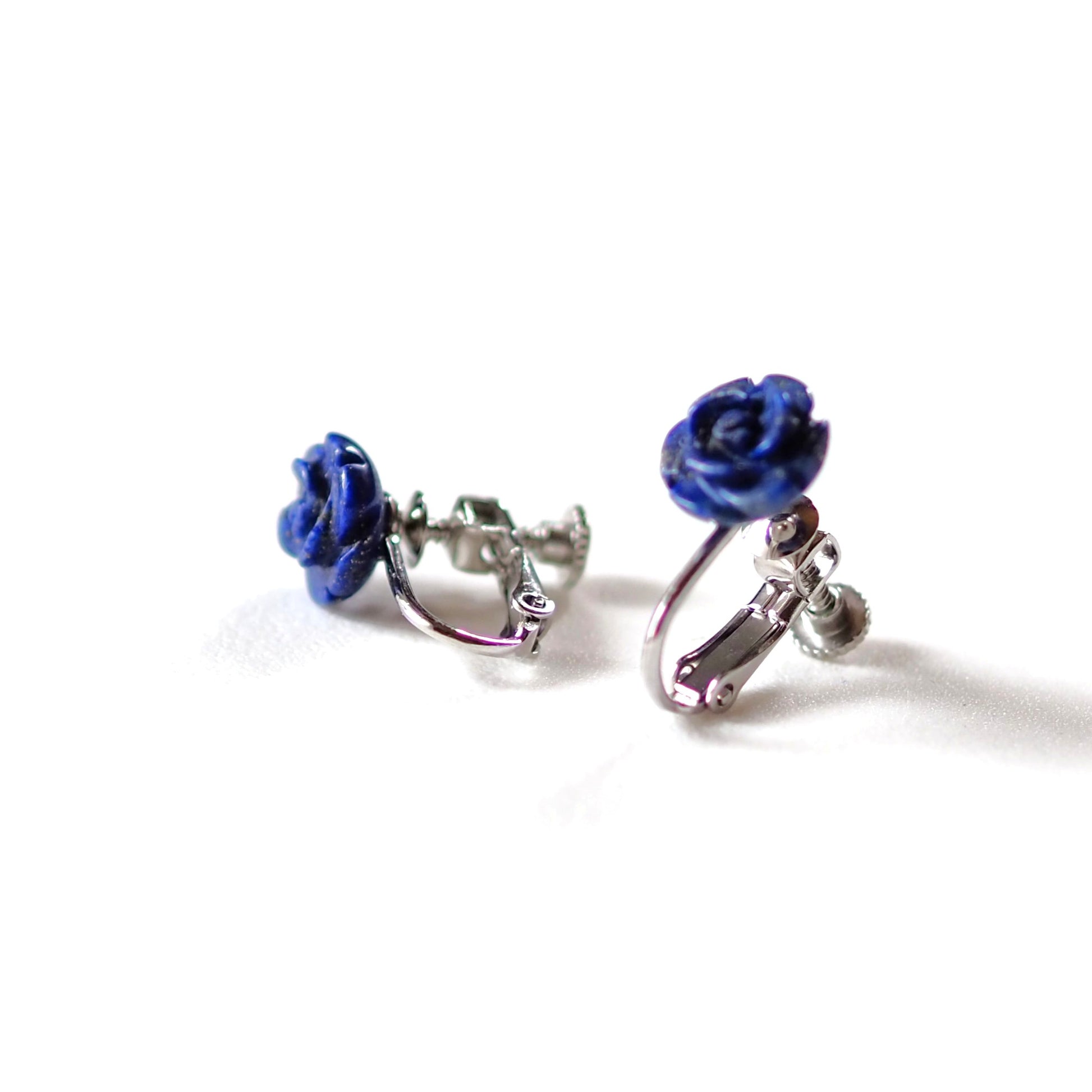 小さすぎず、大きすぎない10mmのラピスラズリのバラの耳飾りです。