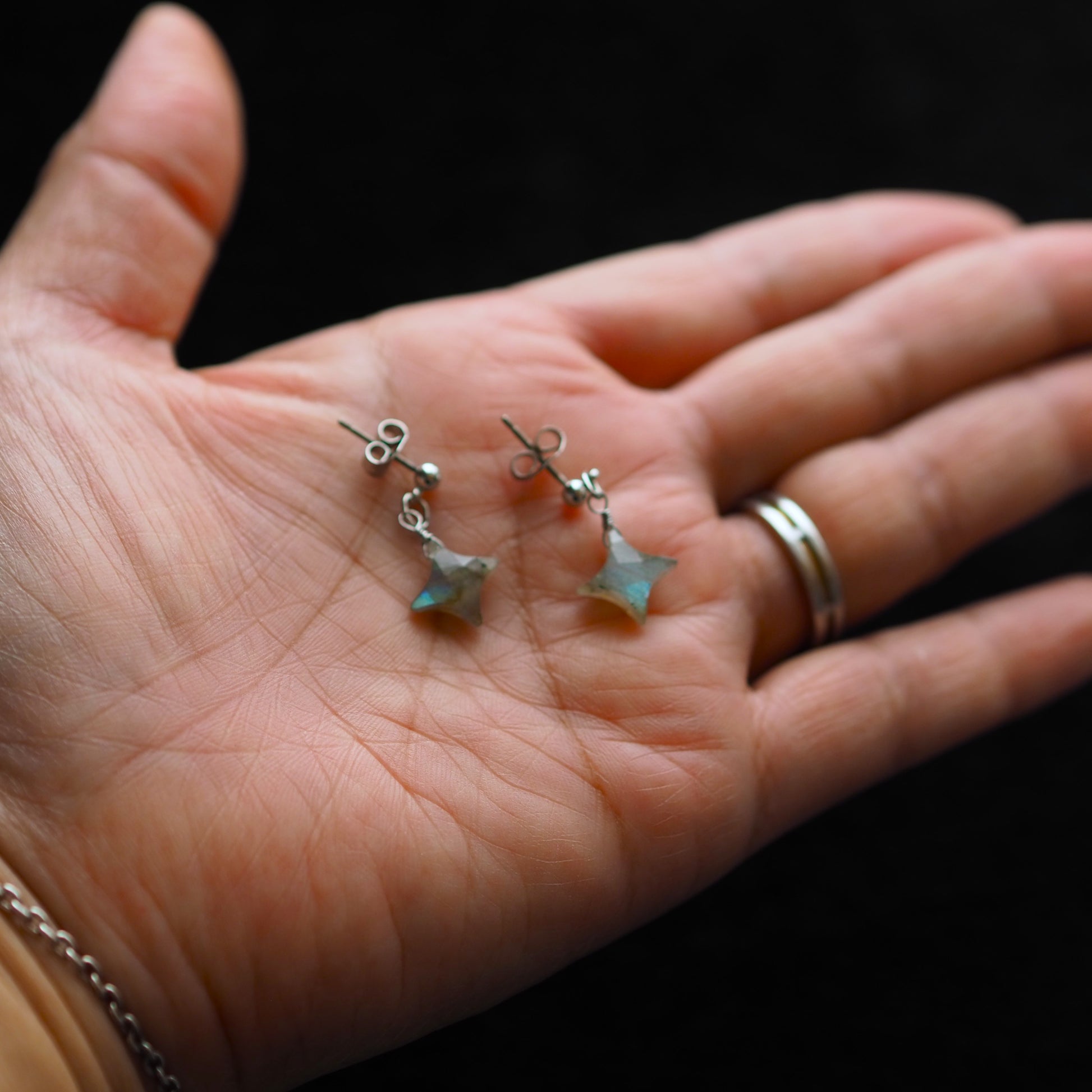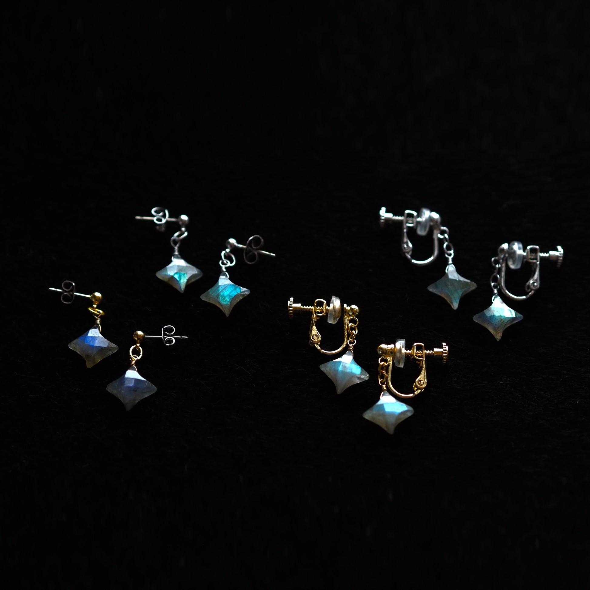 宝石加工の工場で経験豊富な職人さんに「一番小さなトゥインクル型を」とお願いして作ってもらった、ラブラドライトのトゥインクルです。