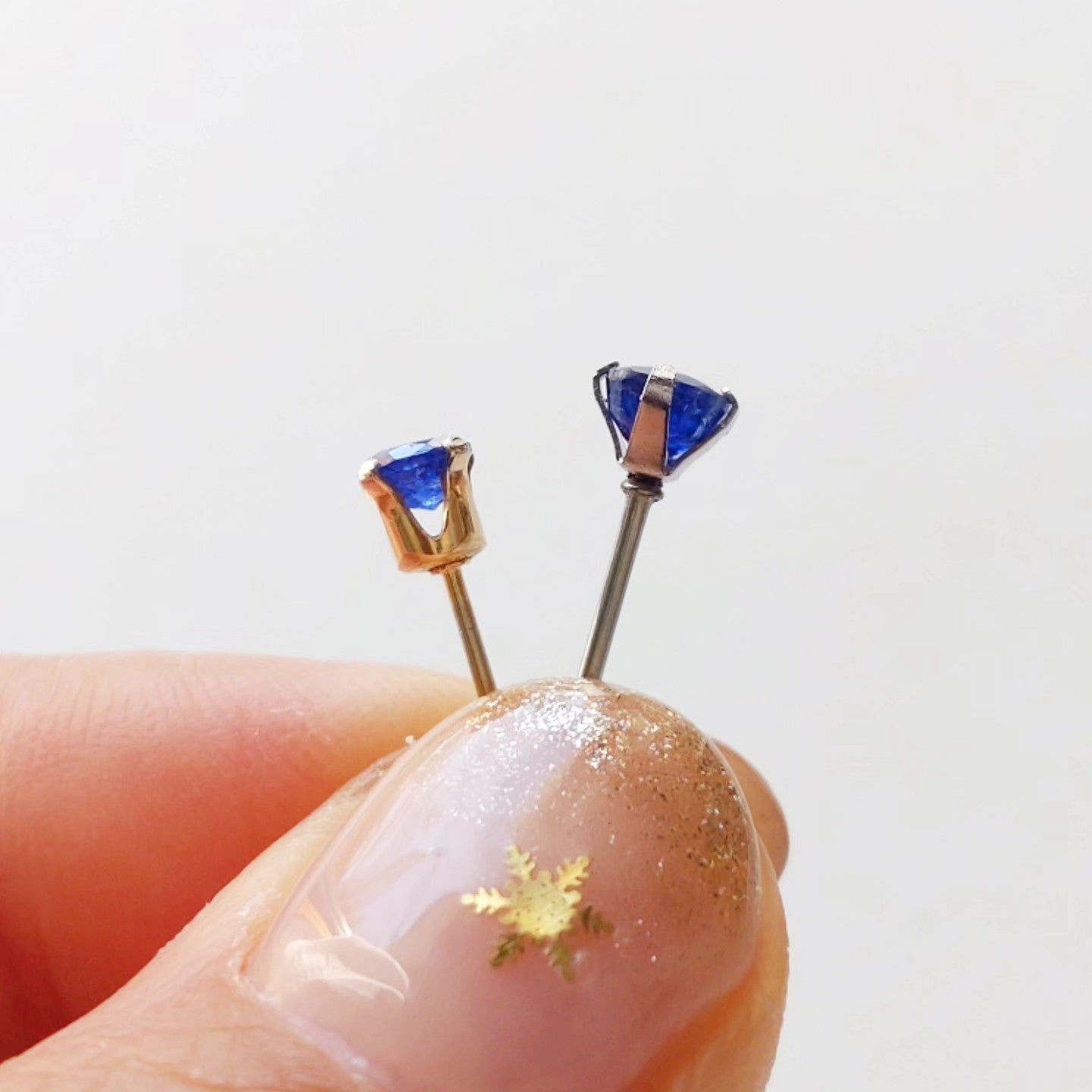 夜空のような深いブルーがとても美しく、4mmと小さめなので華美なアクセサリーはNGのオフィスでも安心して使えます。
