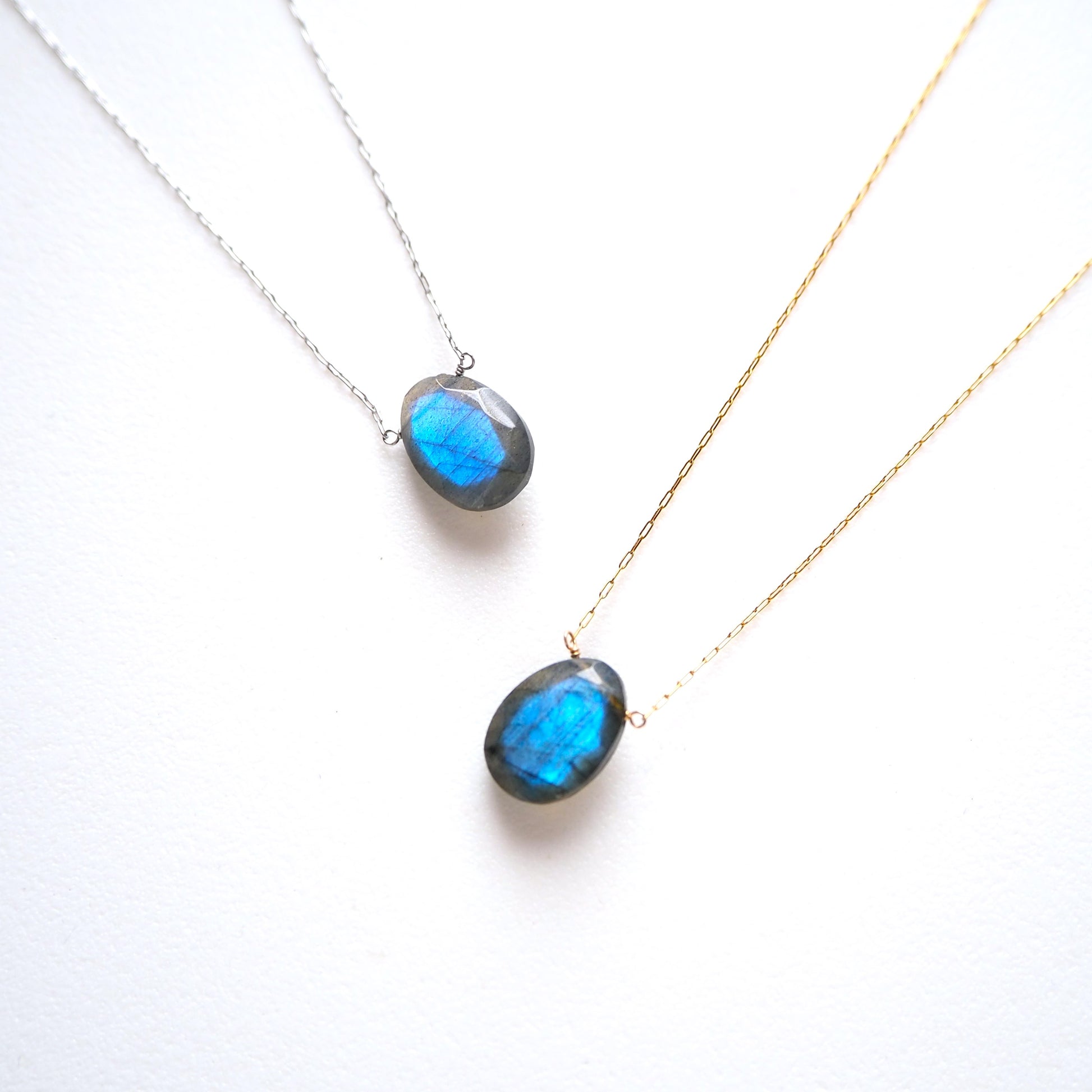 上質で美しいシラーが全面に浮かぶ上質なラブラドライトは、夜の空に浮かぶオーロラのような色合いと表現されることも多い石。