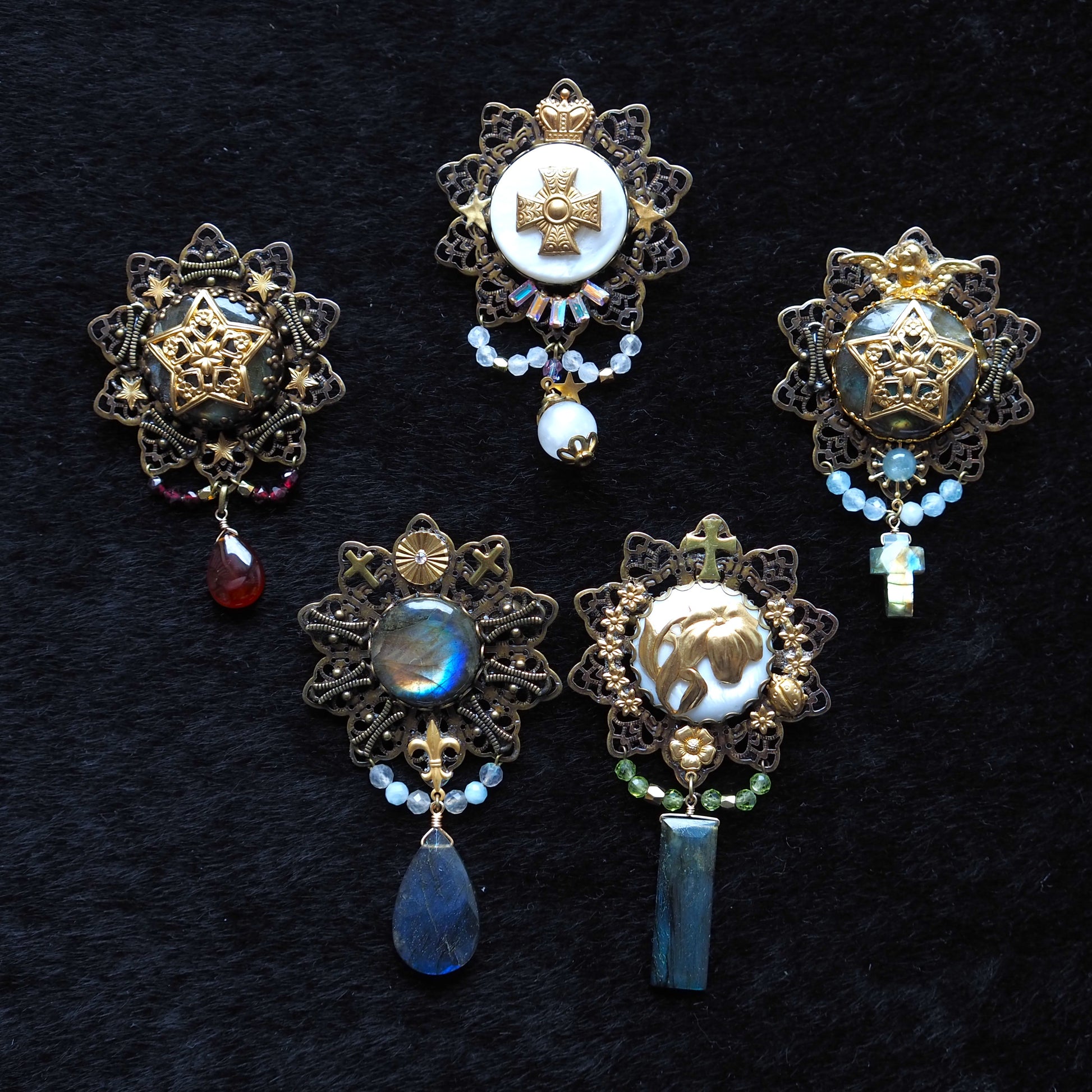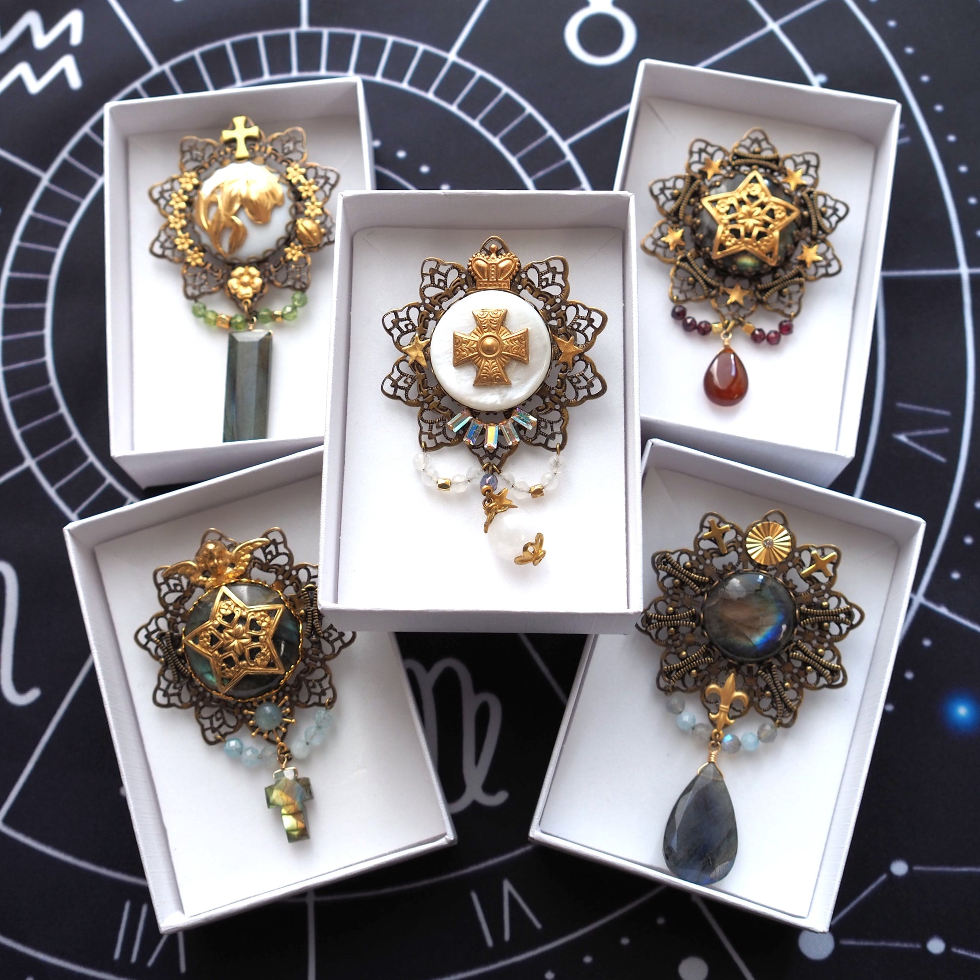 天然石やシェルを使い高級感ある大人のアクセサリーとして、身に着けやすい“大人の魔法具”に仕立てました。