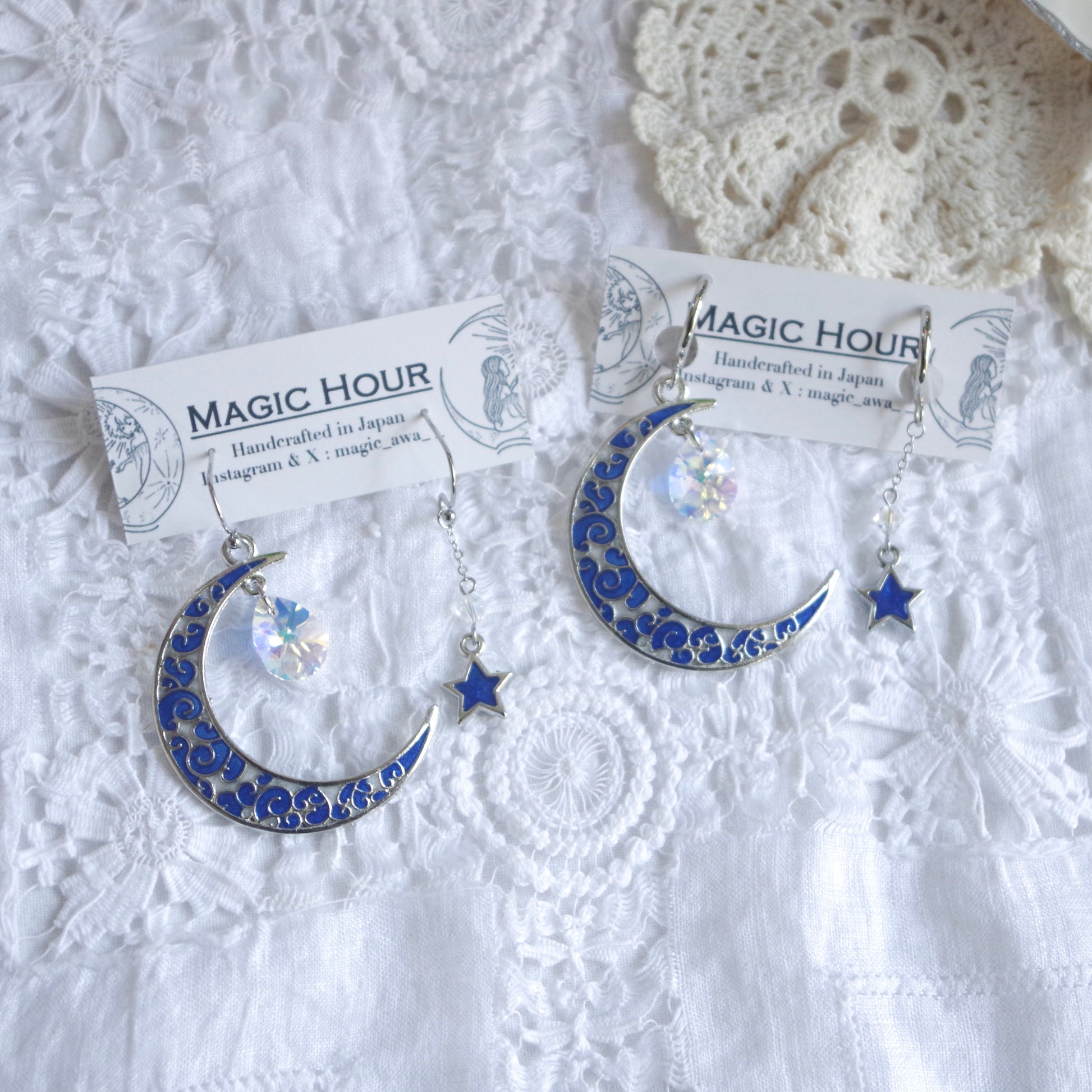 【サイズ】月:長さ5cm,幅3.5cm/星:長さ4.4cm,幅9mm