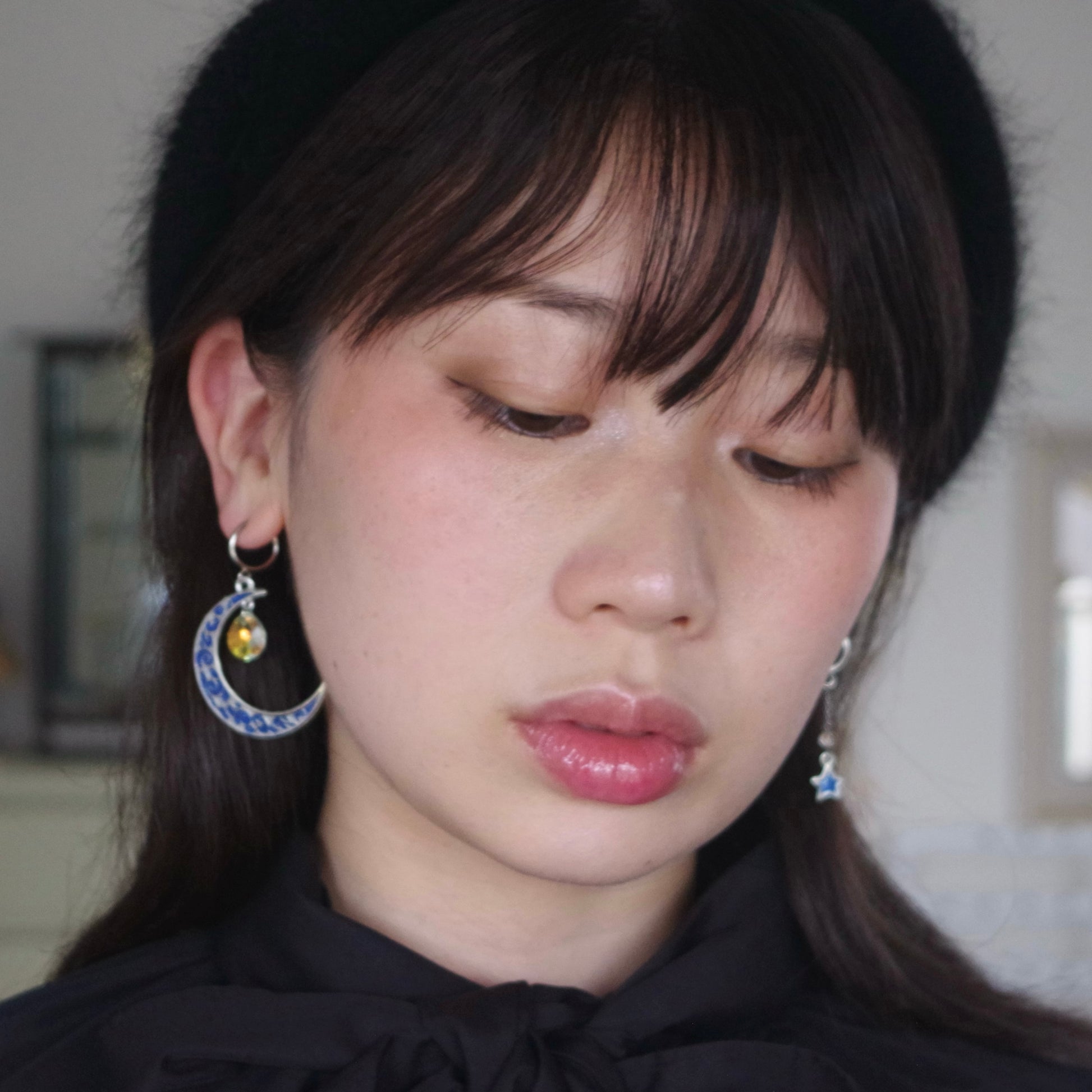 大きな月はゆったりと、クリスタルドロップはキラキラしながらぷるぷると揺れます。クリスタルは見る角度によってカラーが変化するのも魅力です。