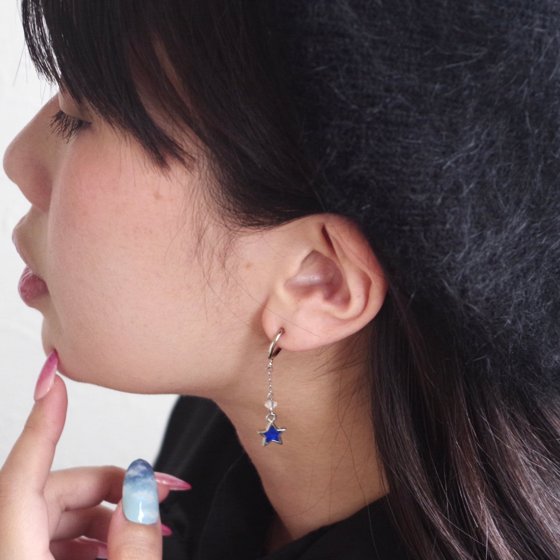 大人のためのロマンティックな大ぶりイヤリングです。Magic Hourで人気のカラー〈East China Sea : 深いロイヤルブルー〉を使って作りました。