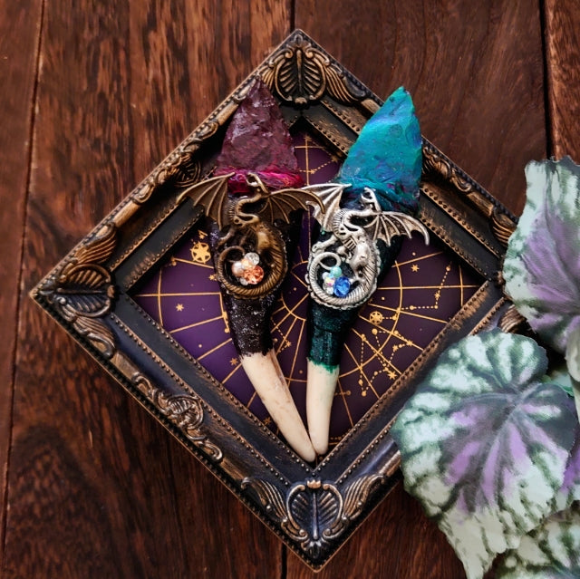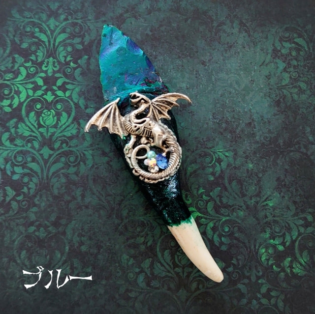 素材:メタルコート水晶、鹿角、メタルパーツ、ビジューガラス