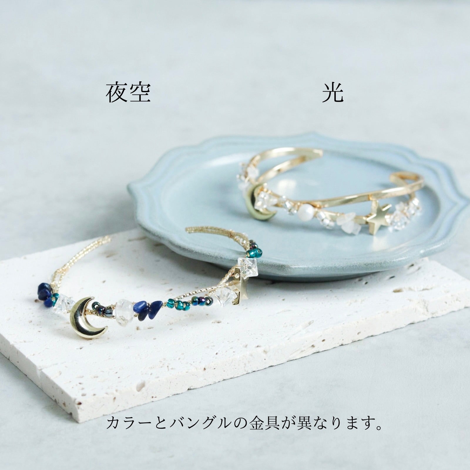 それぞれバングルの金具のスタイルが違い、月夜と星明かりを際立たせます。