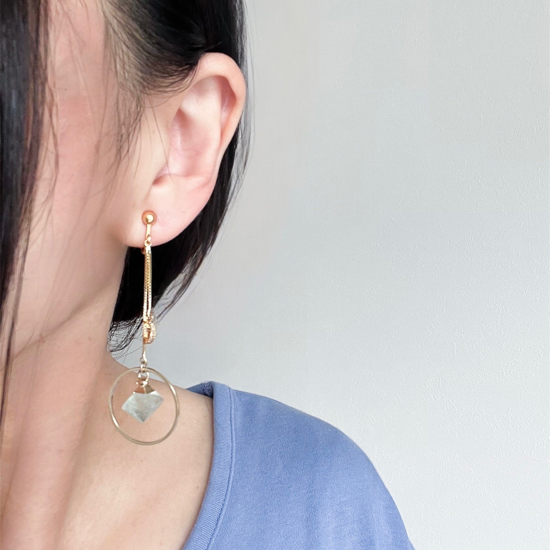 天然石の形や大きさが全て同一ではありませんが、アシンメトリーデザインですので、それを良さとして引き出しています。
