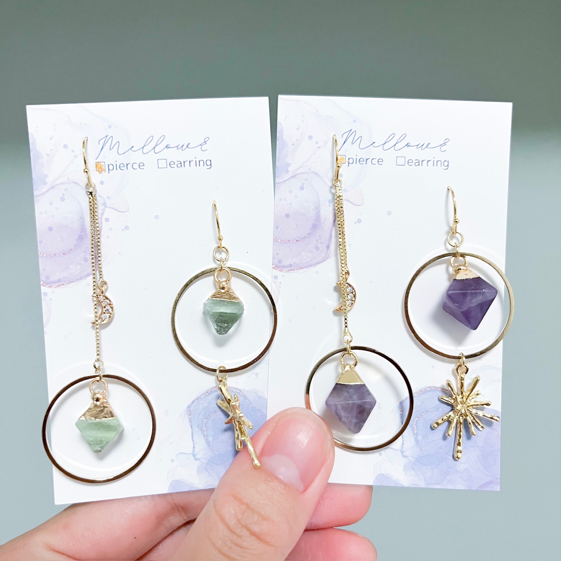 天然石は薄緑はフローライト、紫はアメジストです。