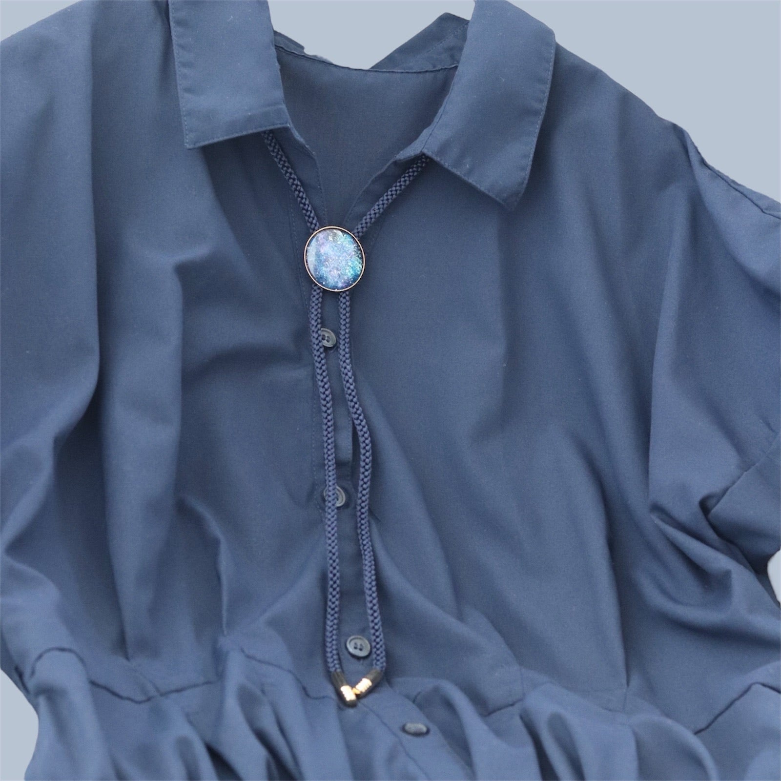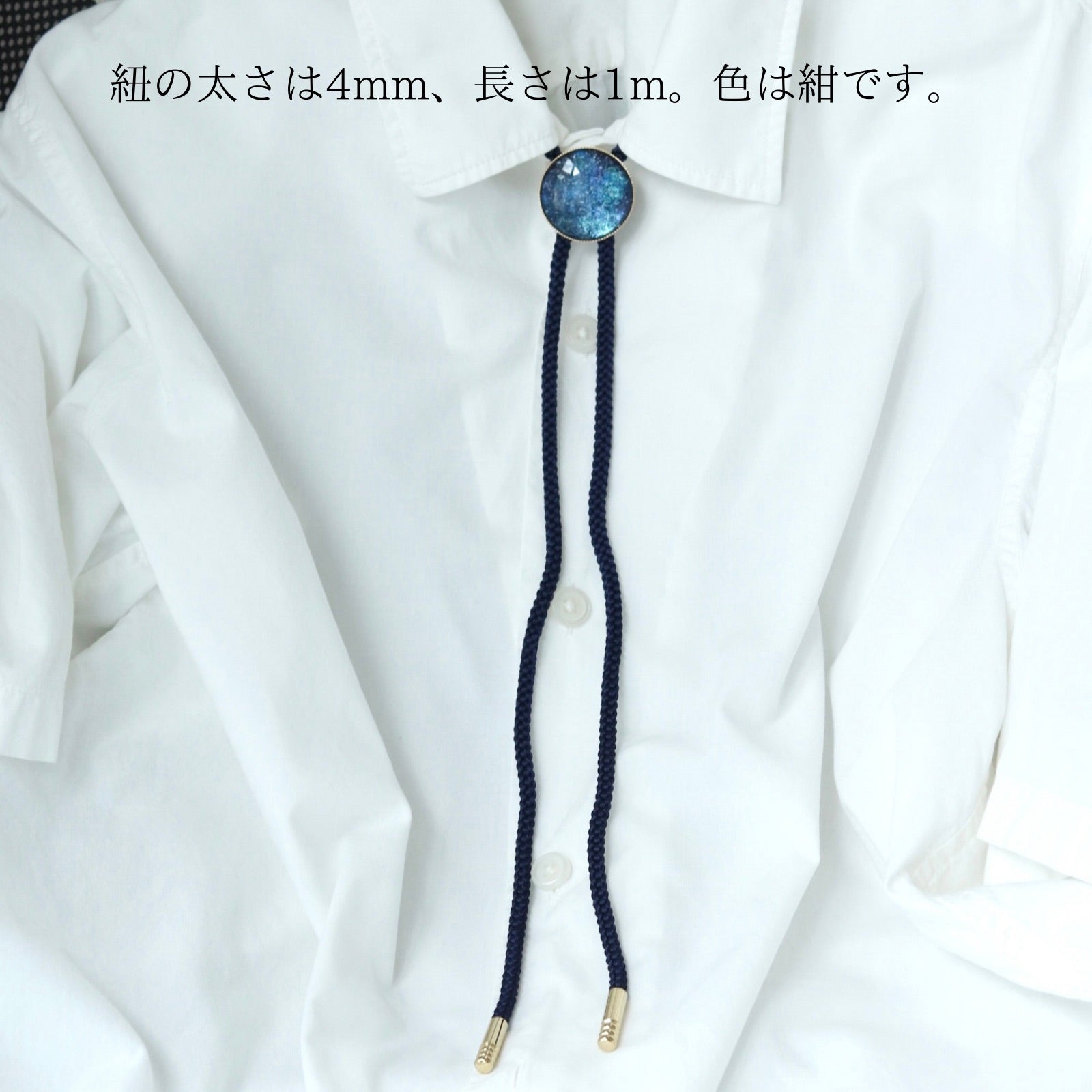 紐の色は紺、太さは4mm、長さは1mでモチーフの位置は自由に動かせます。