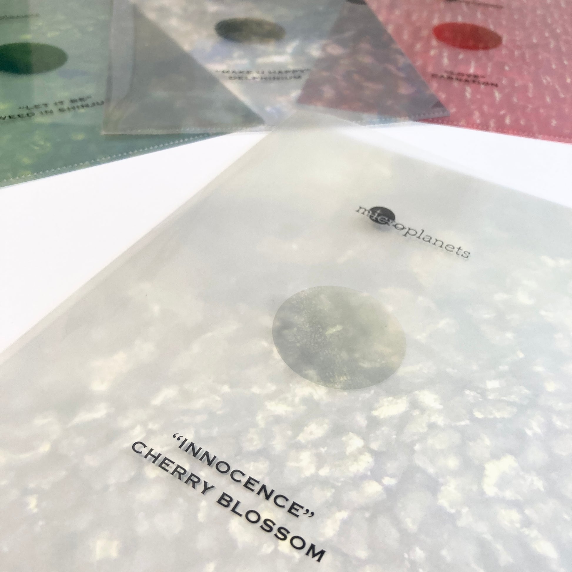 植物から採集したmicroplanetsの綺麗な柄をデザインした、小さなクリアファイルです。