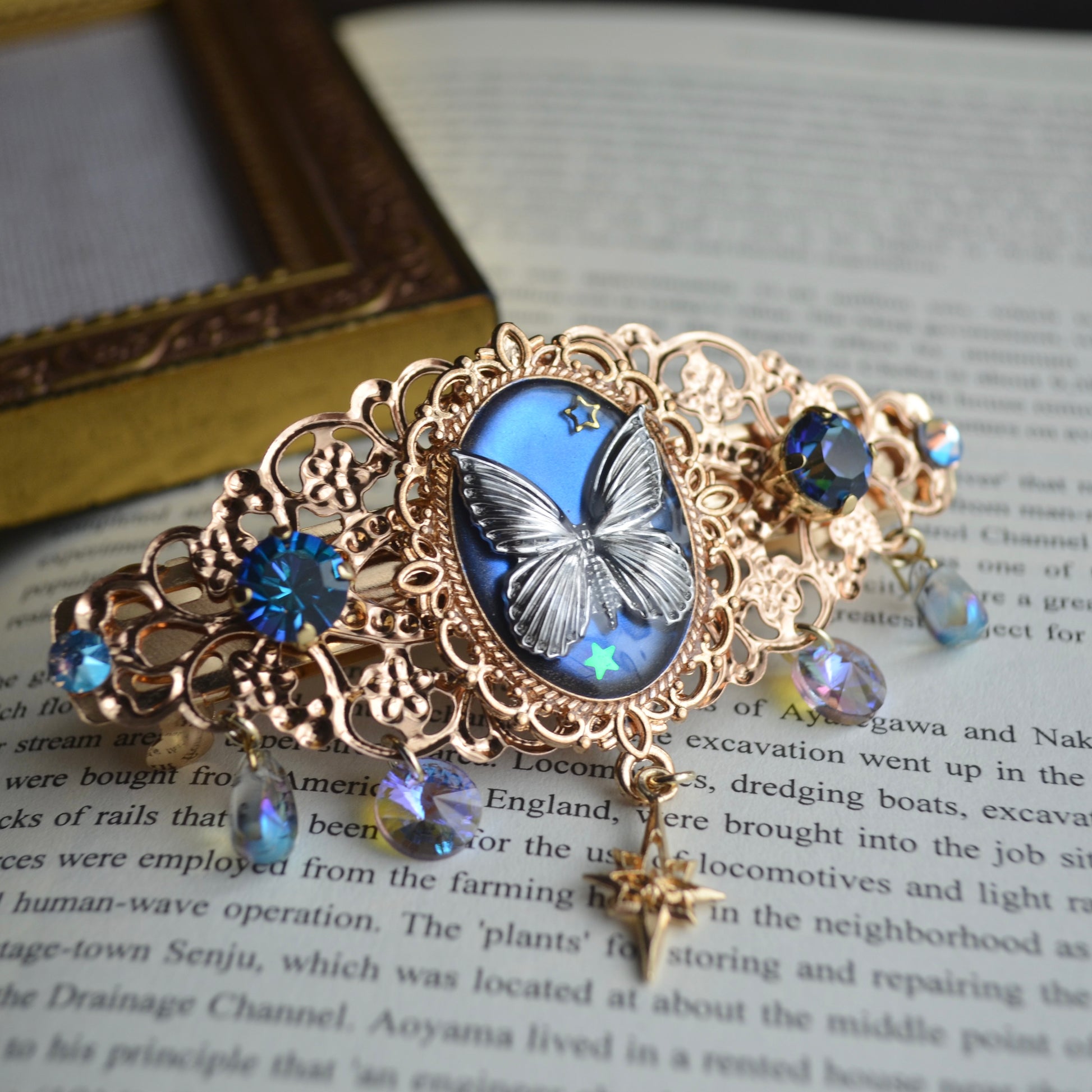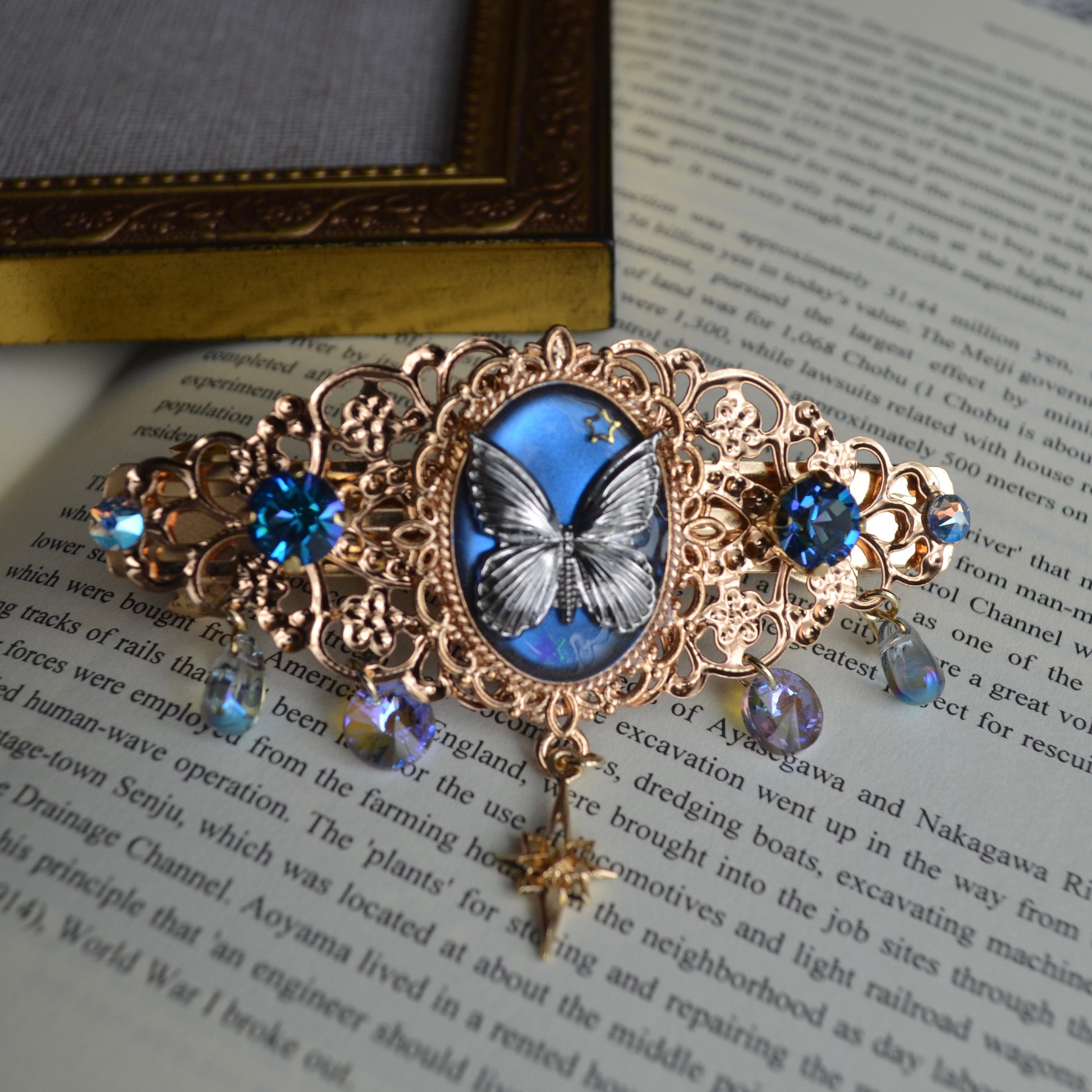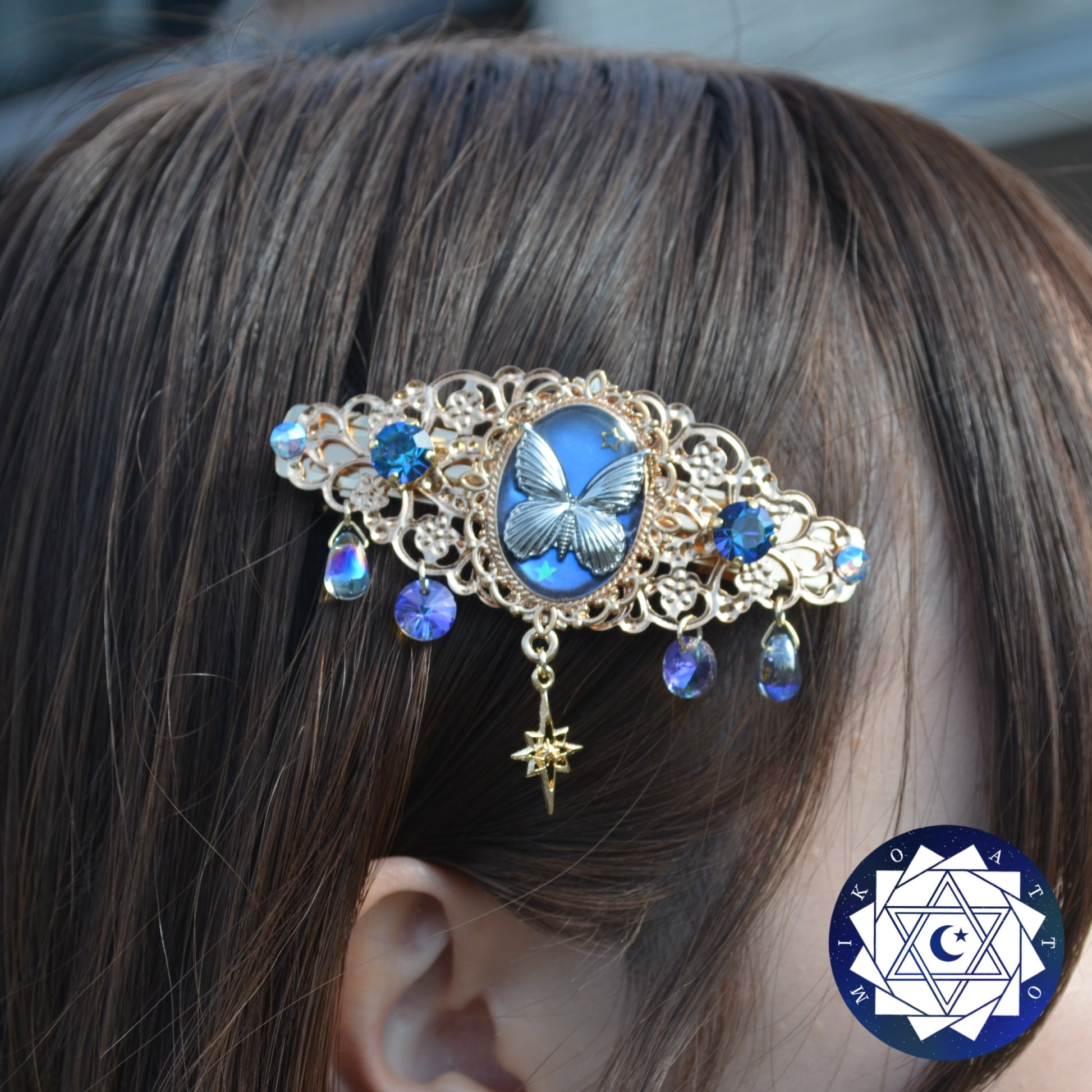 夜空に舞う蝶をイメージした髪飾りです。