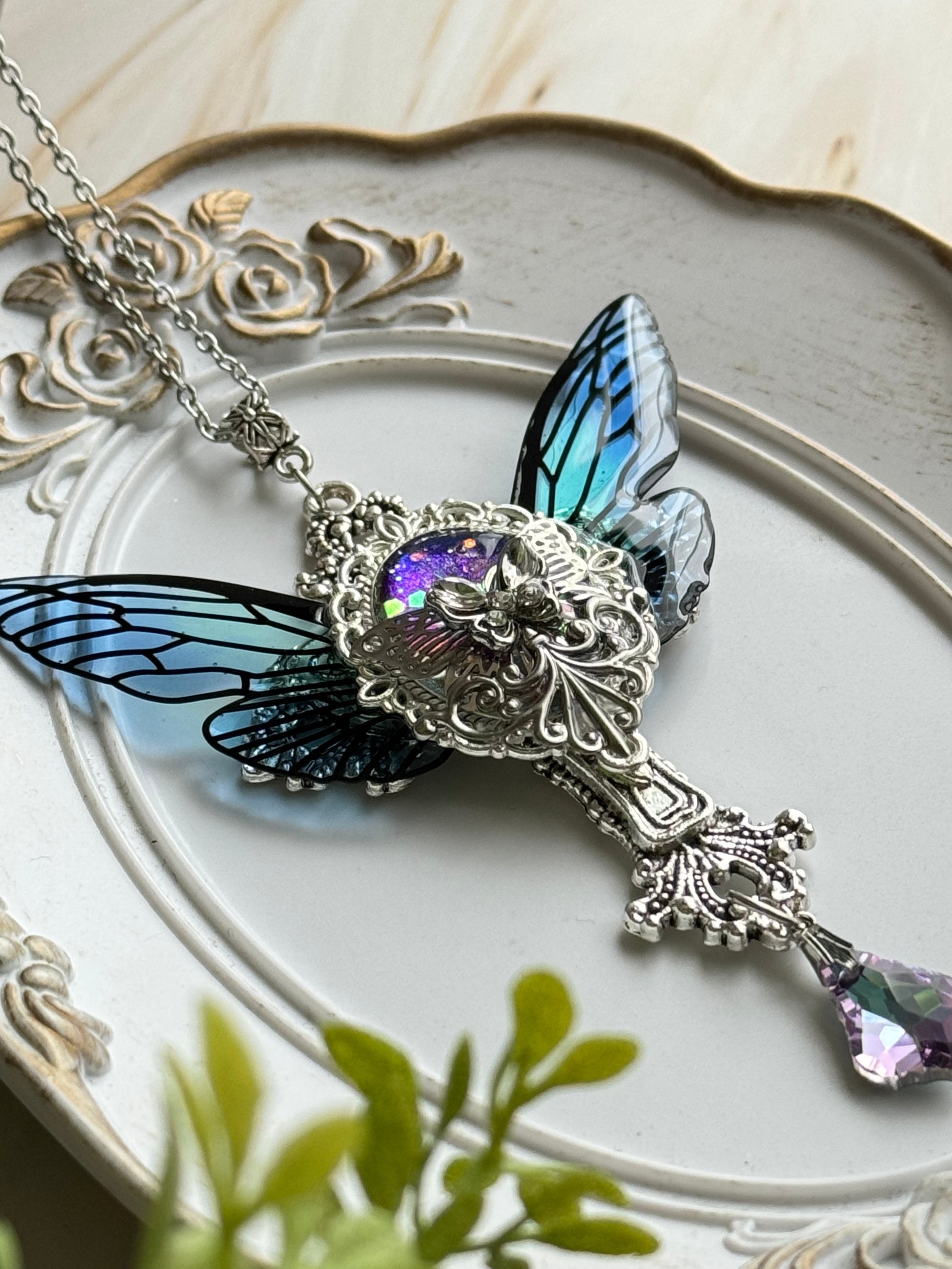 まるで妖精の翅のようなファンタジーなデザインのネックレス。