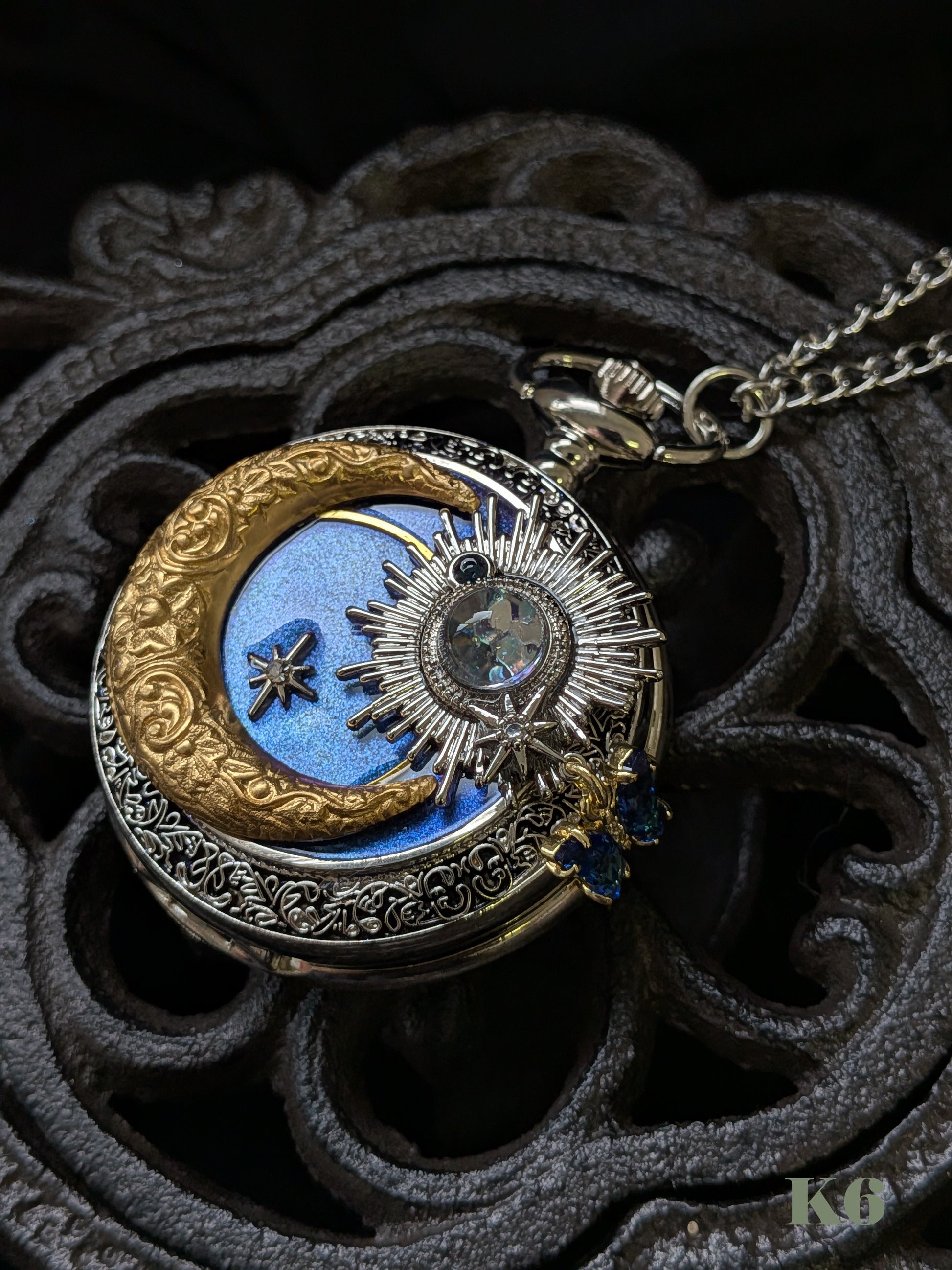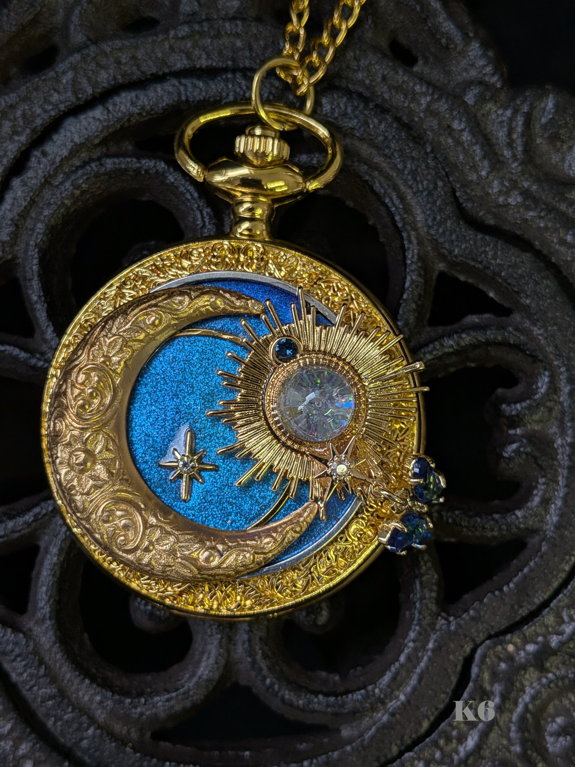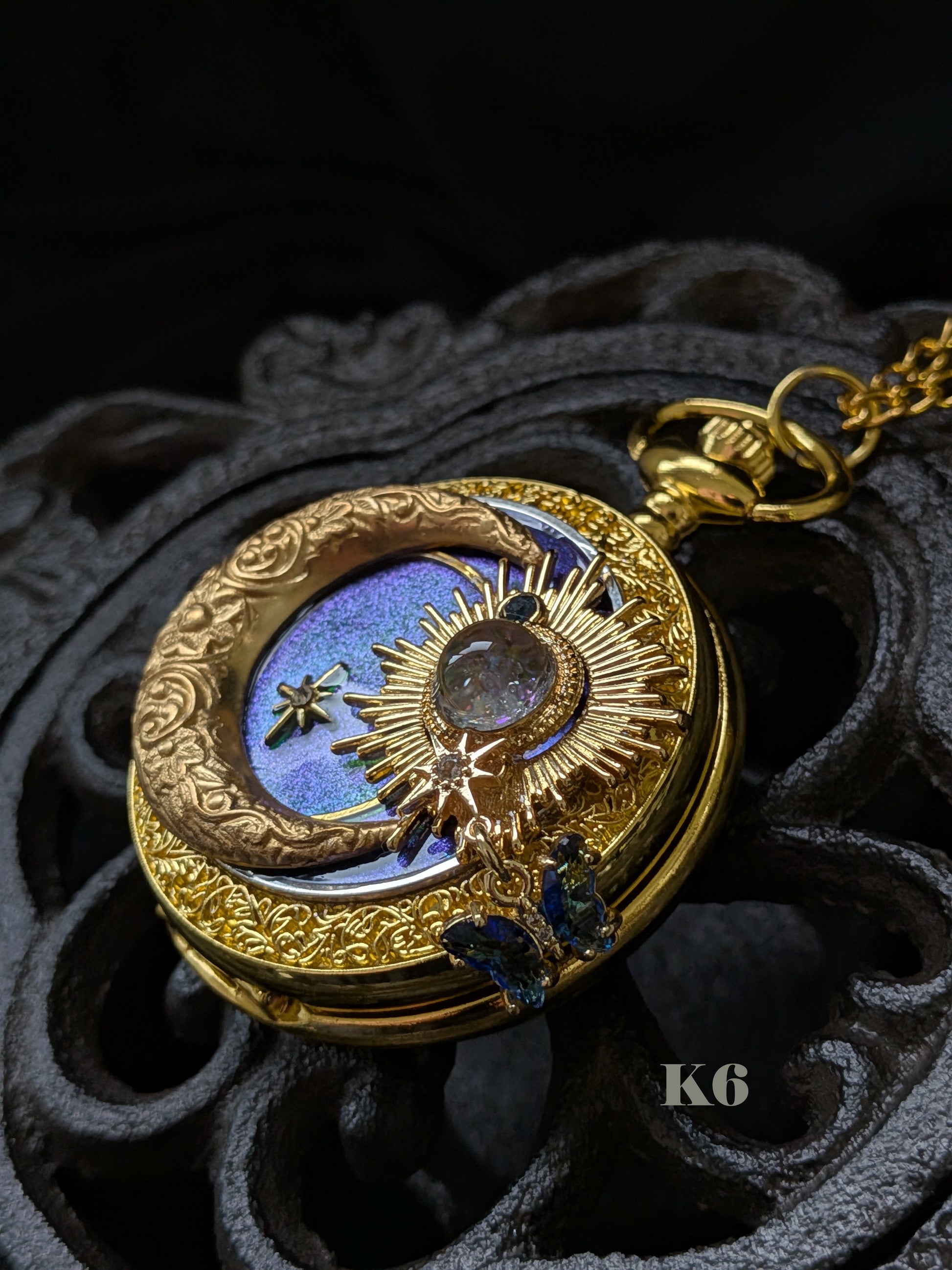 本物の懐中時計を装飾したものになります。時計としてご使用出来ます存在感のあるサイズです。