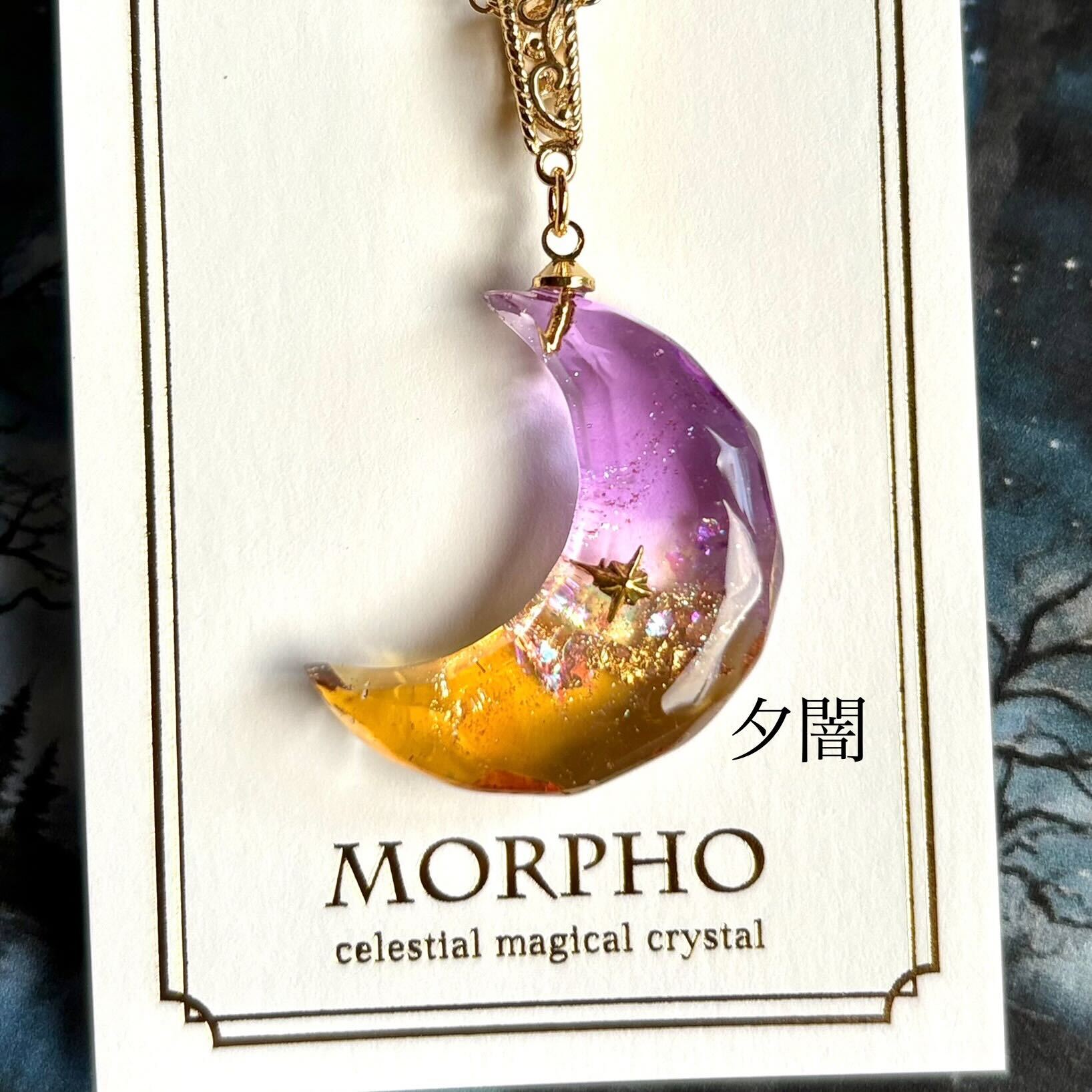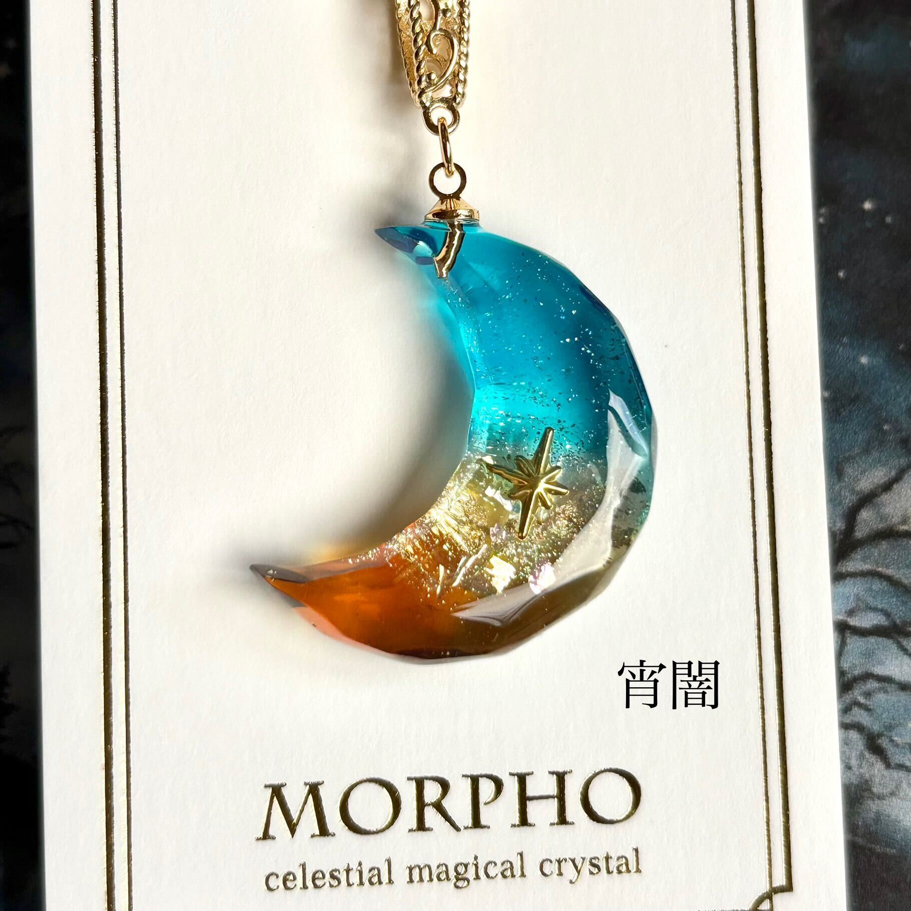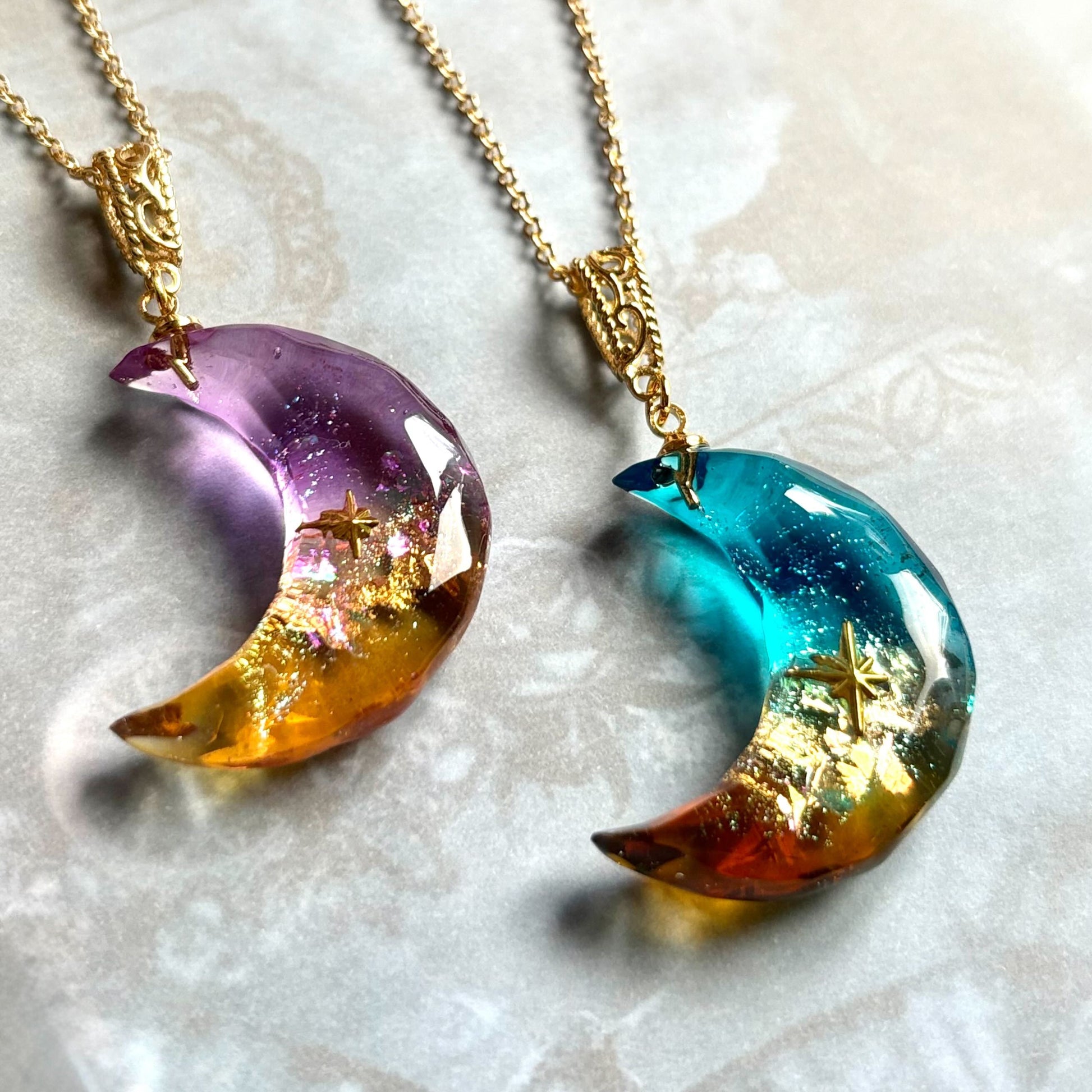 鮮やかな色のグラデーションカラーにラメやホログラムを散りばめた、三日月の形のレジン鉱石。