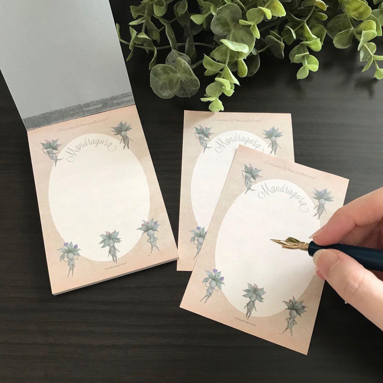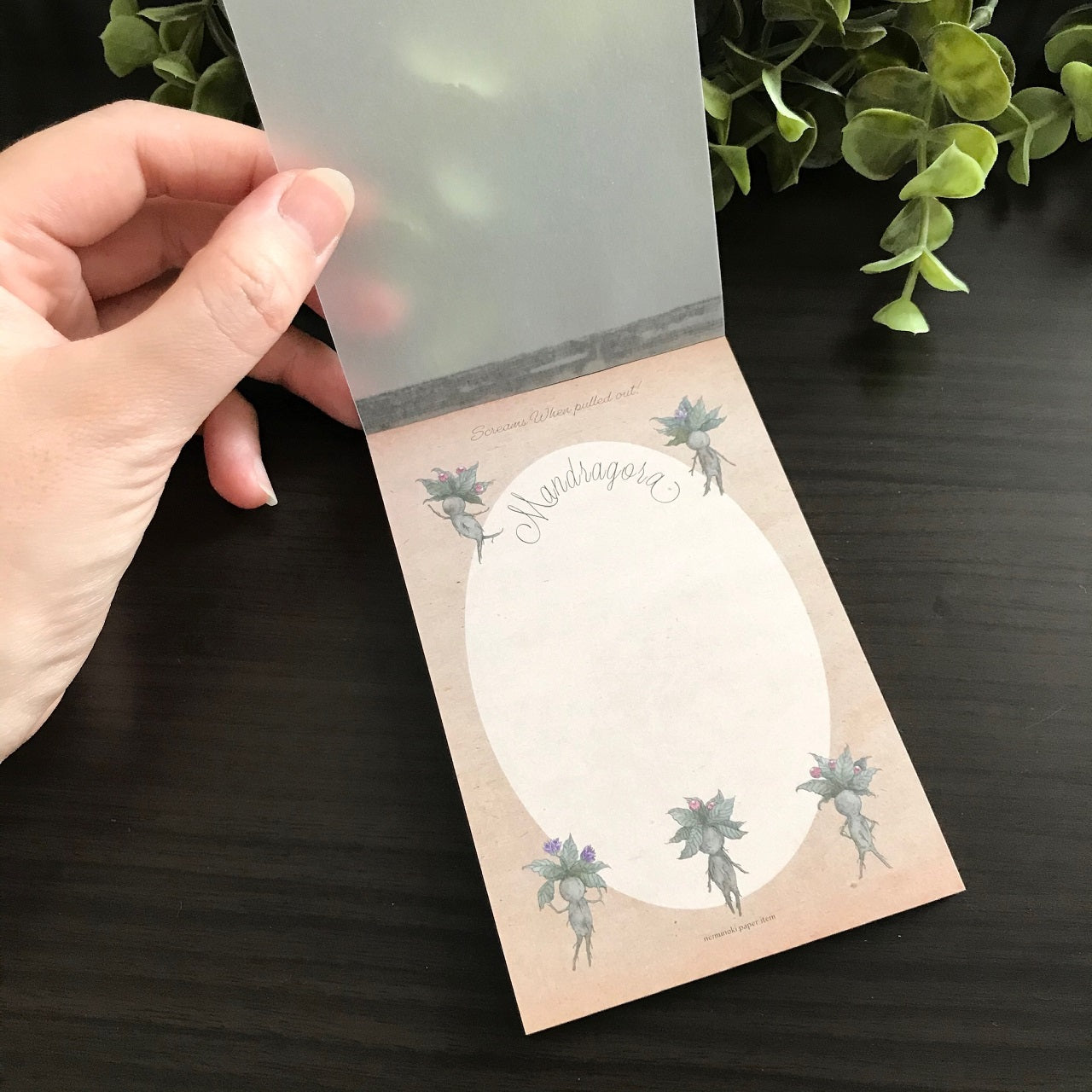 トレーシングペーパーの表紙から淡く透けるその先は、コミカルながらアンティーク調の雰囲気をもつマンドラゴラたちの世界。