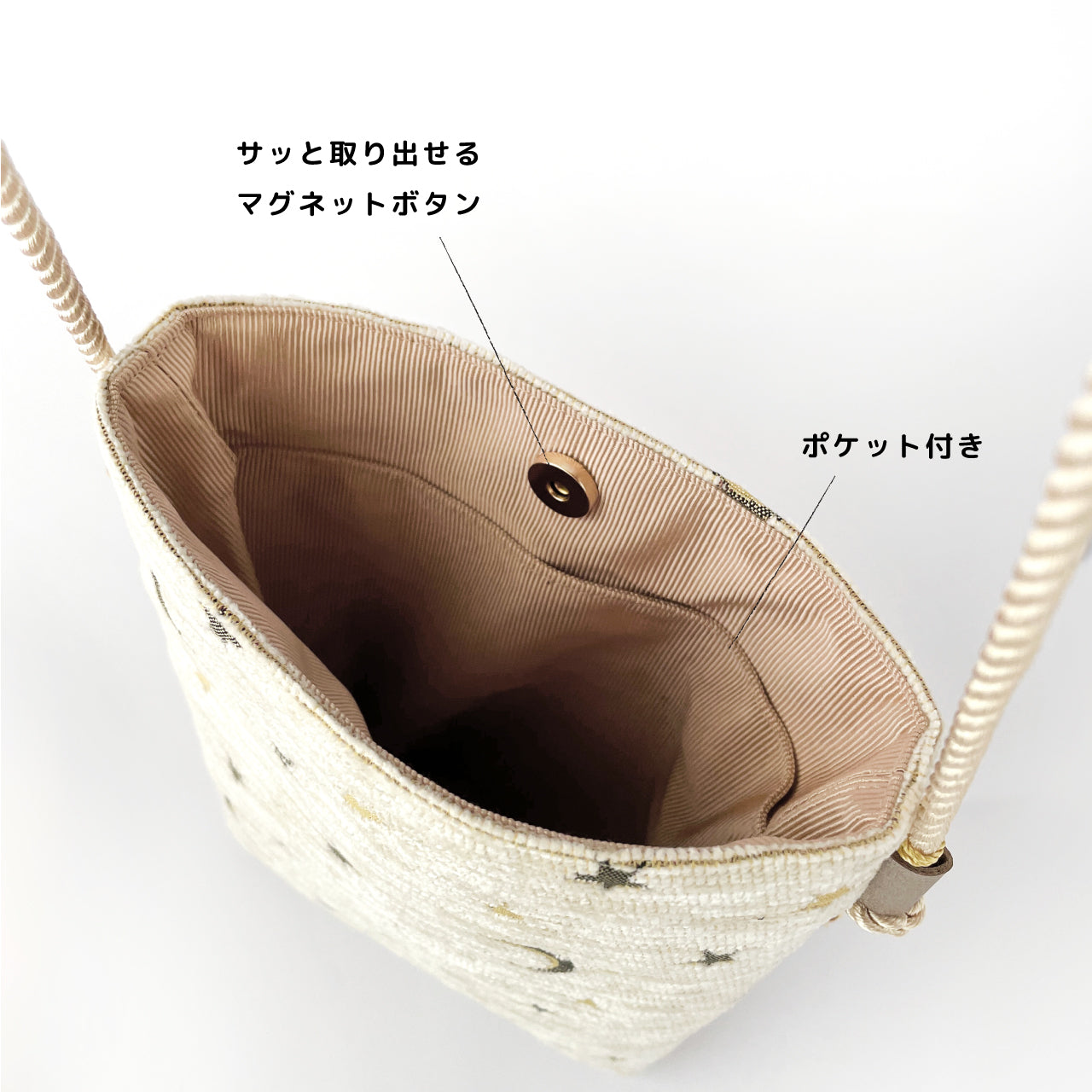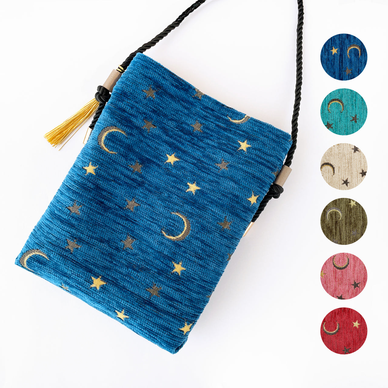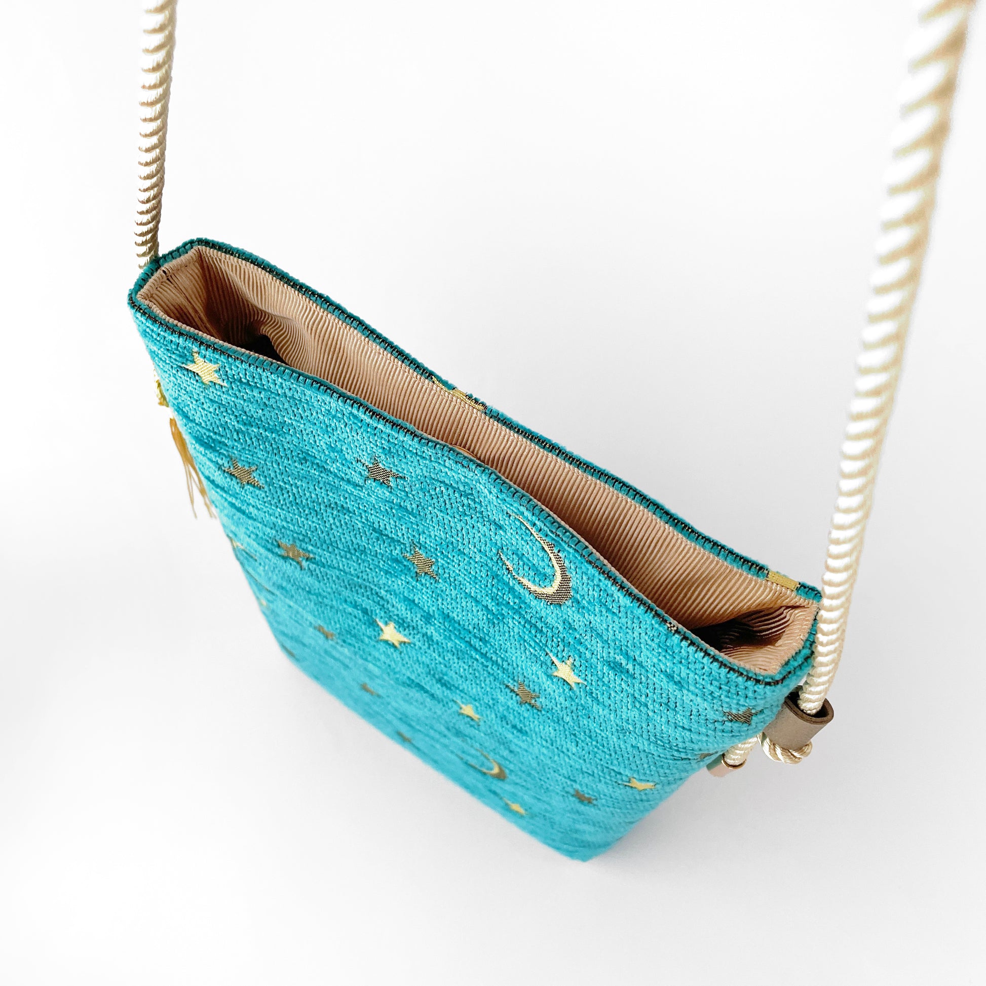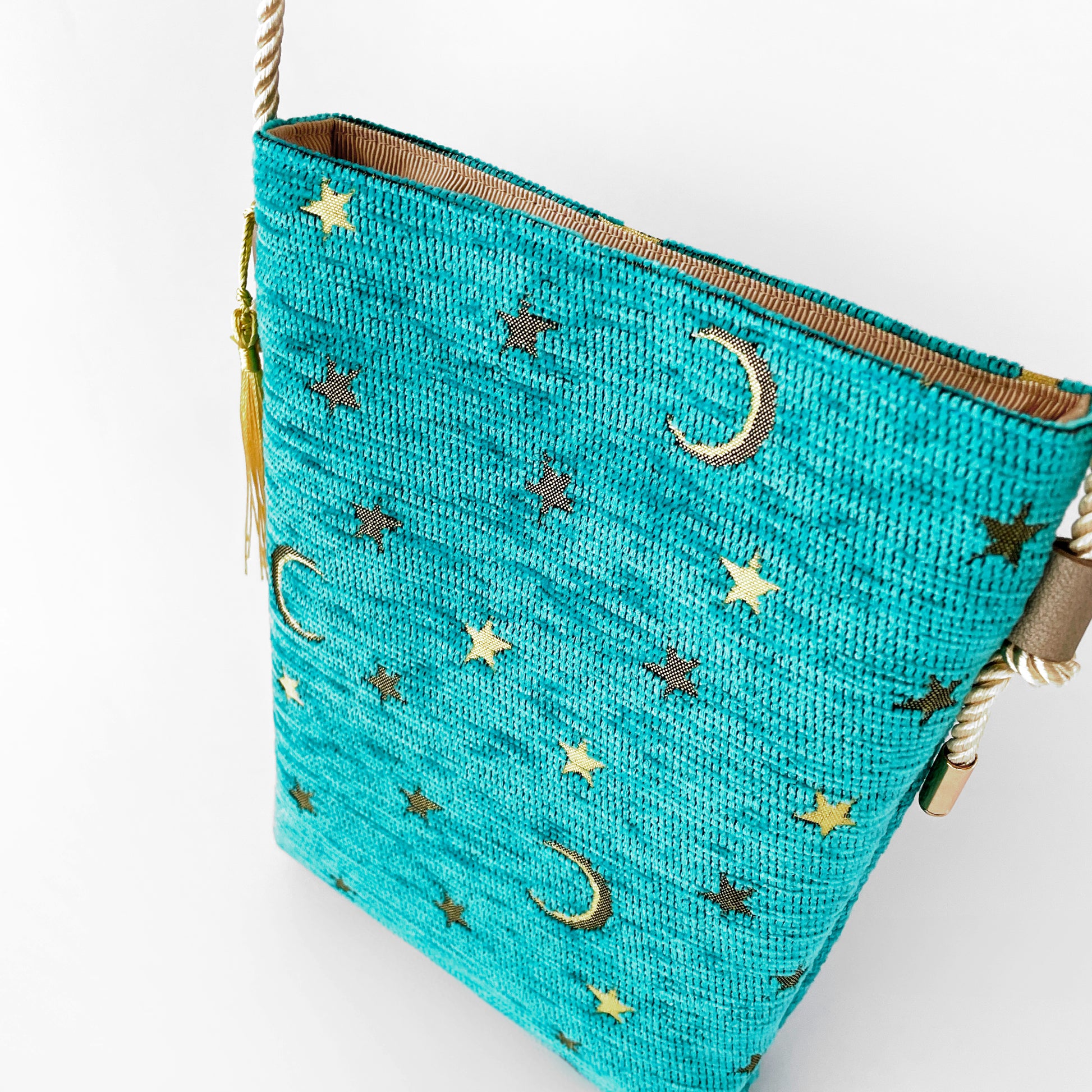 月と星の物語を織り込んだジャガード生地。