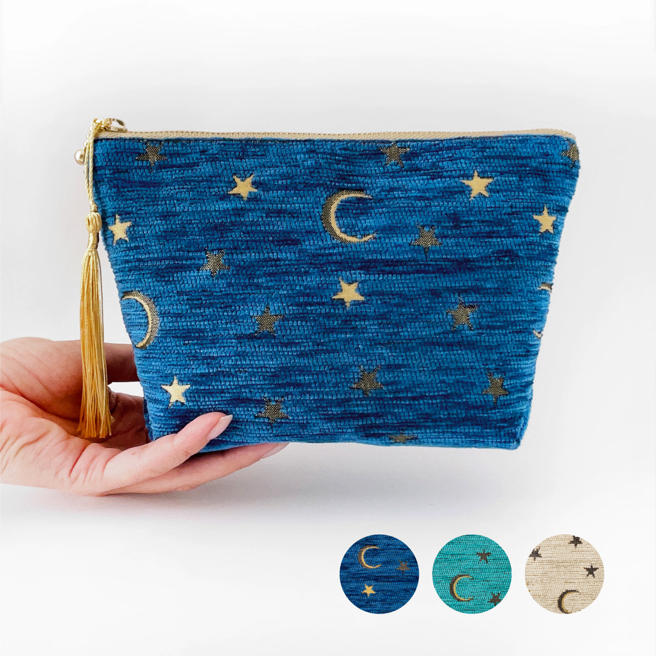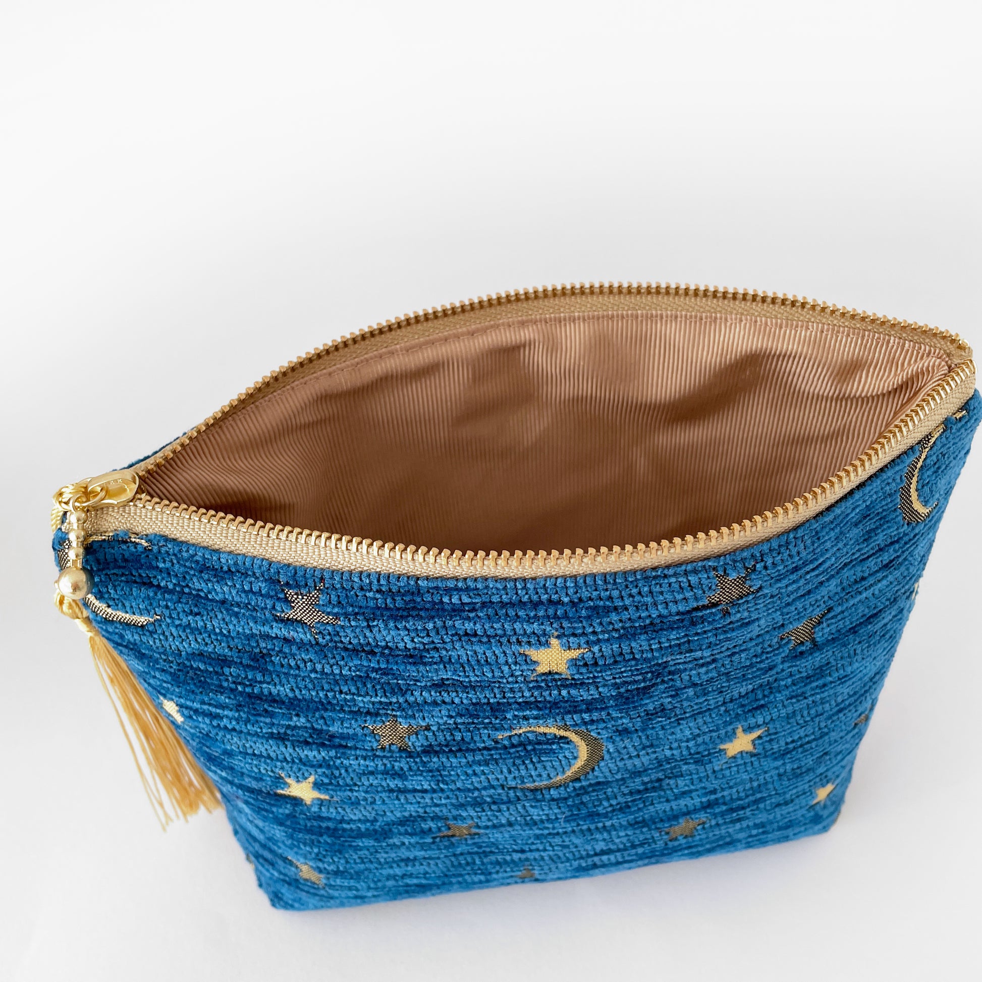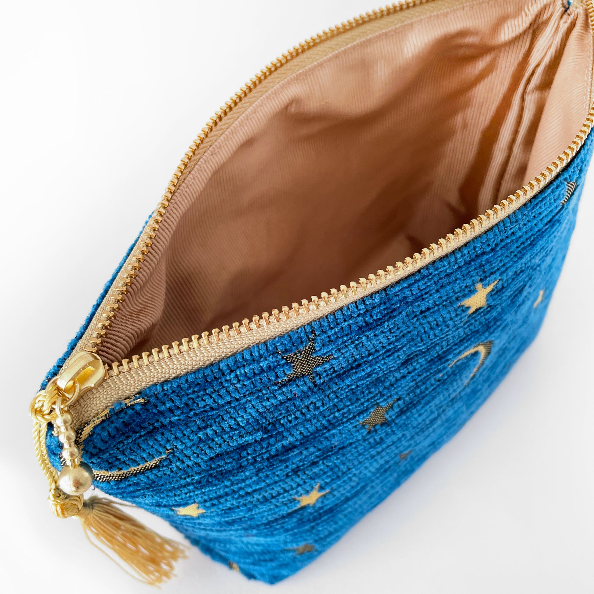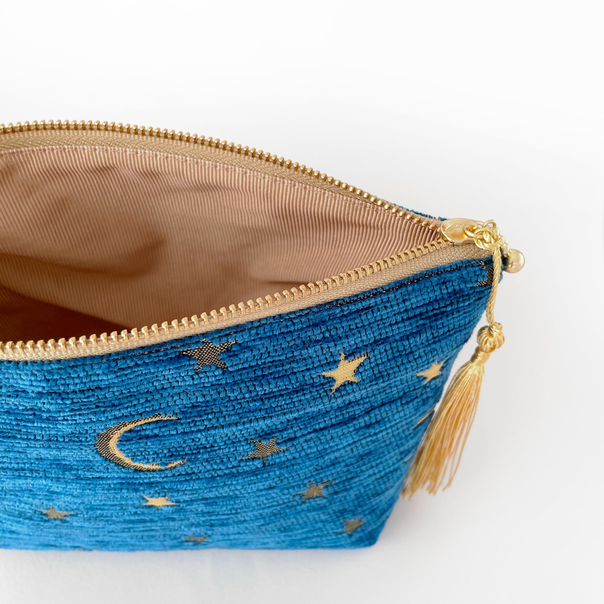 月と星の物語を織り込んだジャガード生地。
