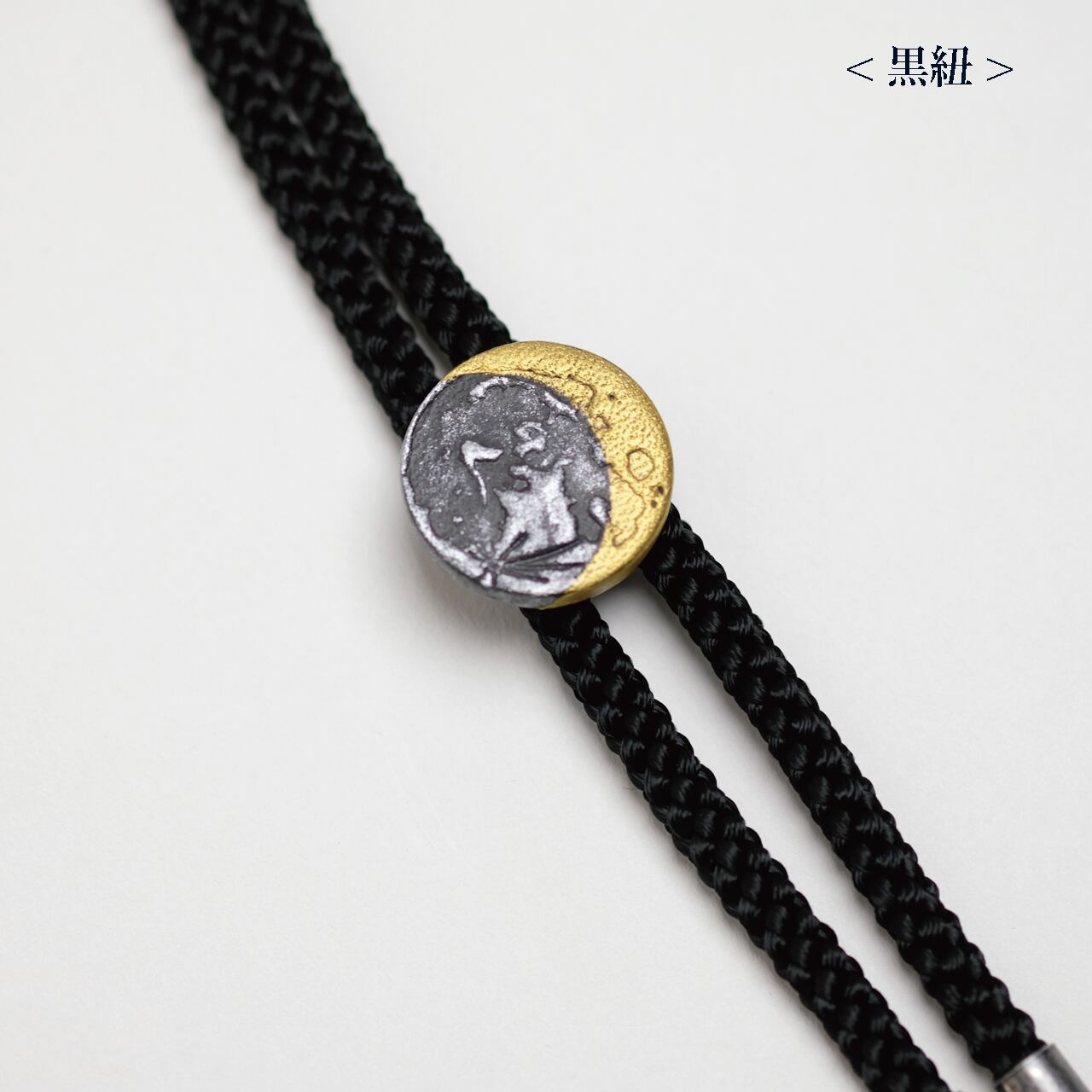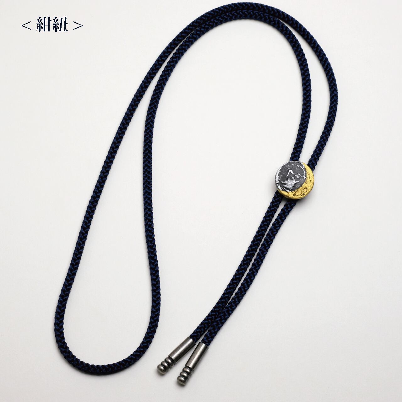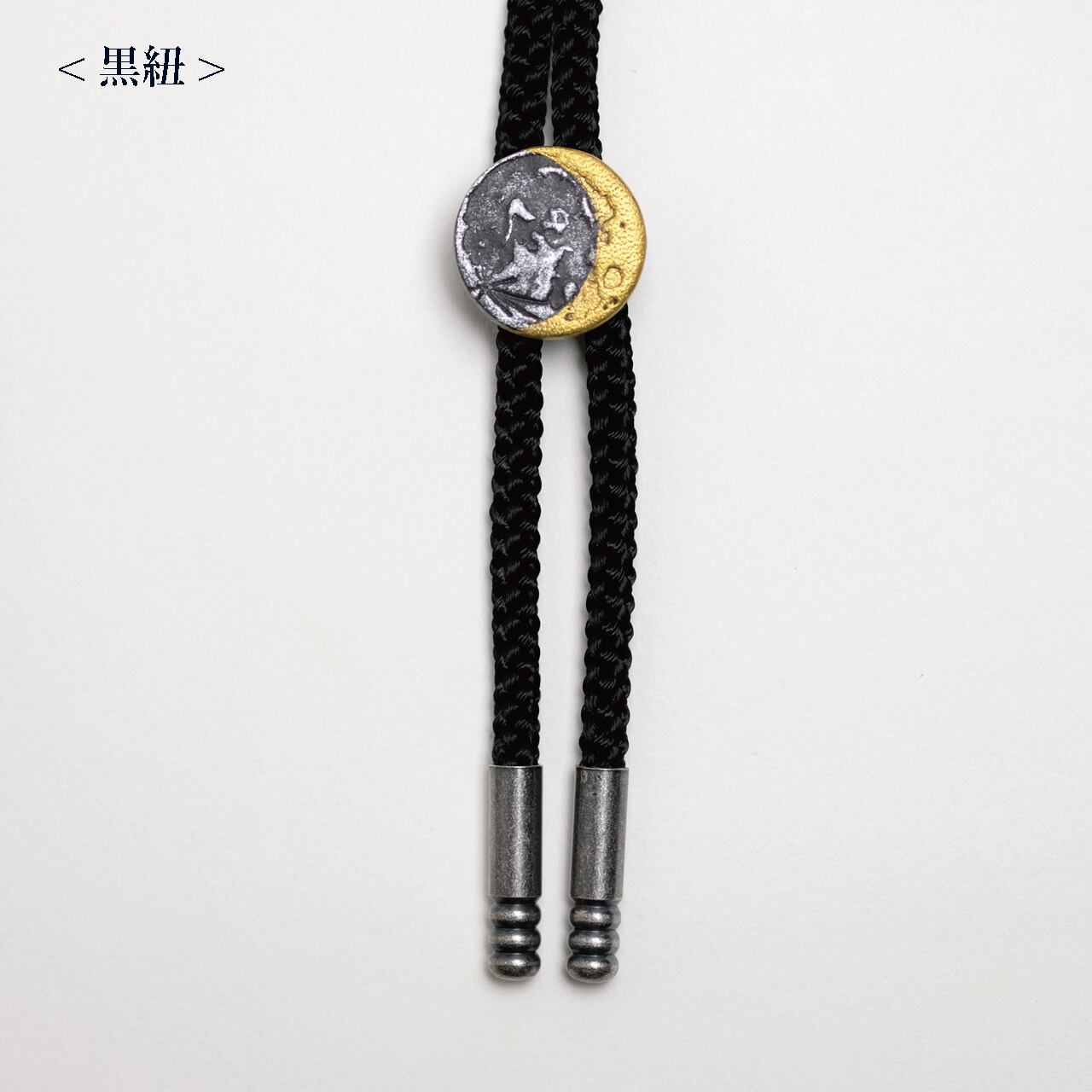 本革に月面型の刻印を押して小さな月を作り、ループタイに仕上げました。