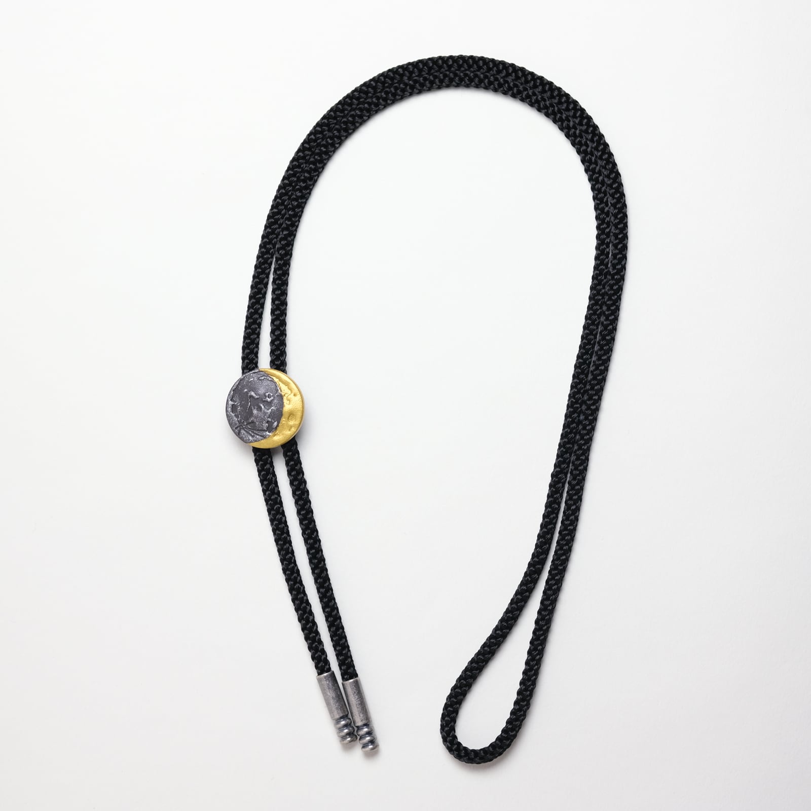 本革に月面型の刻印を押して小さな月を作り、ループタイに仕上げました。
