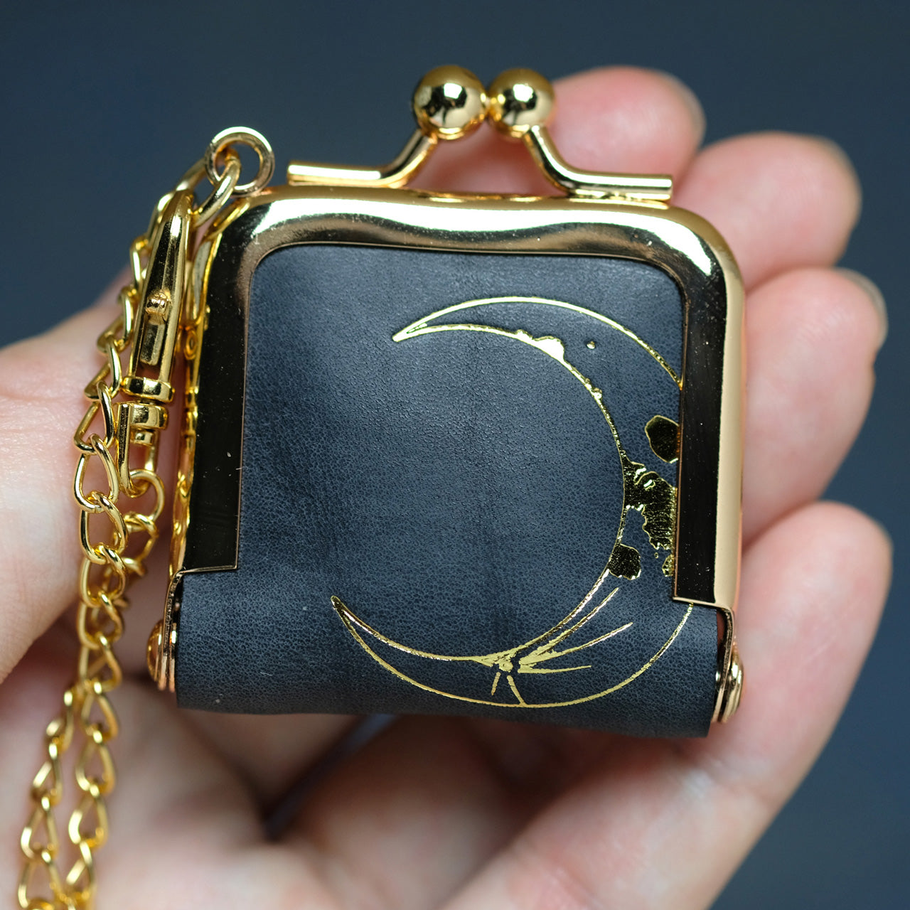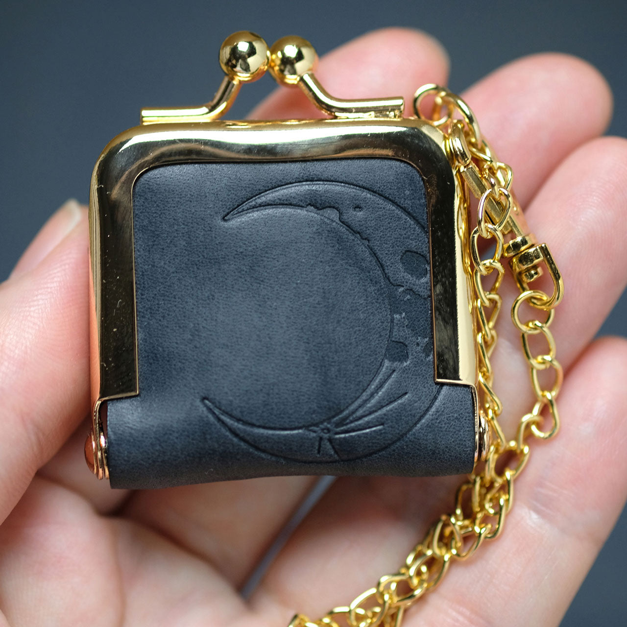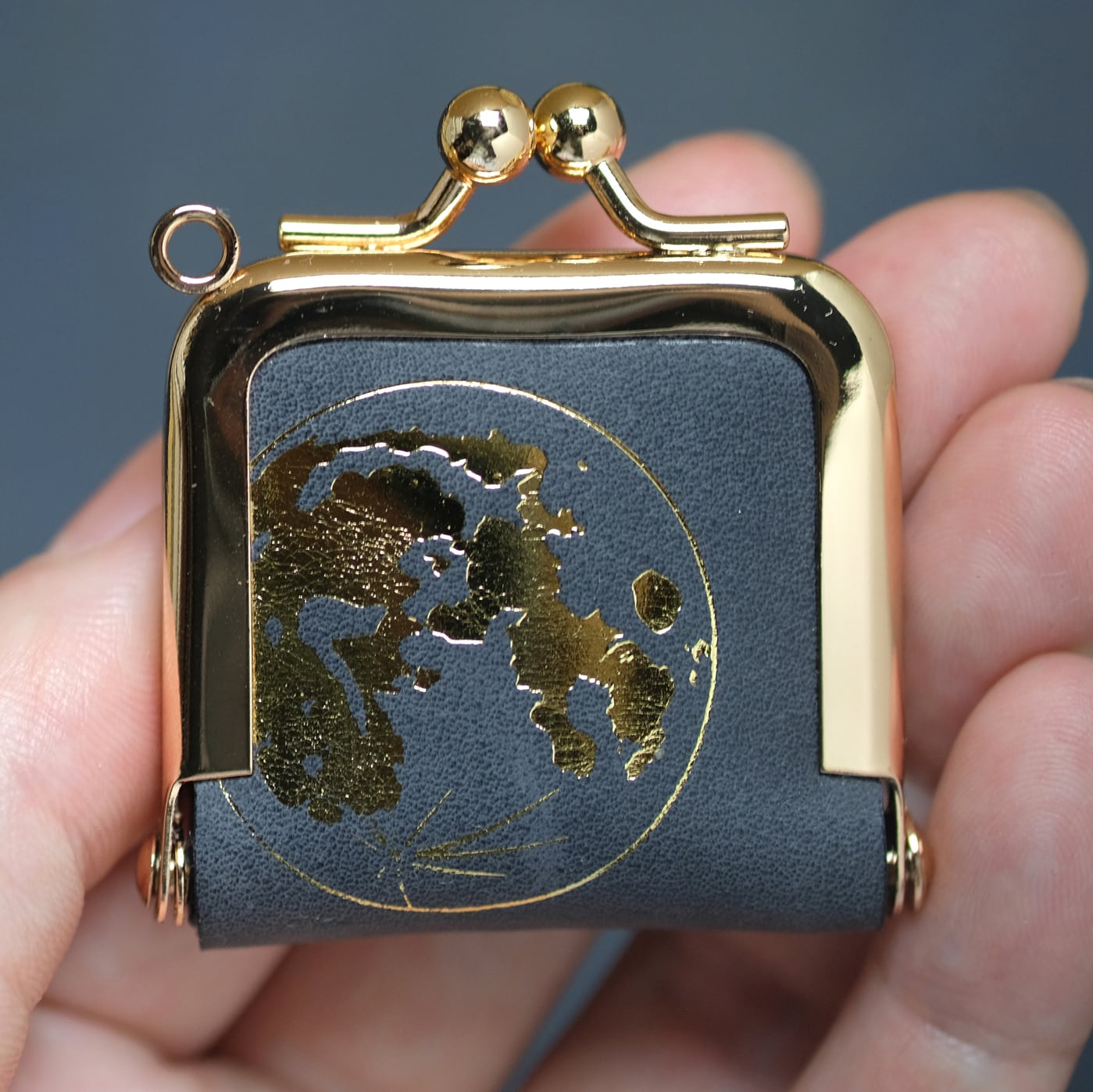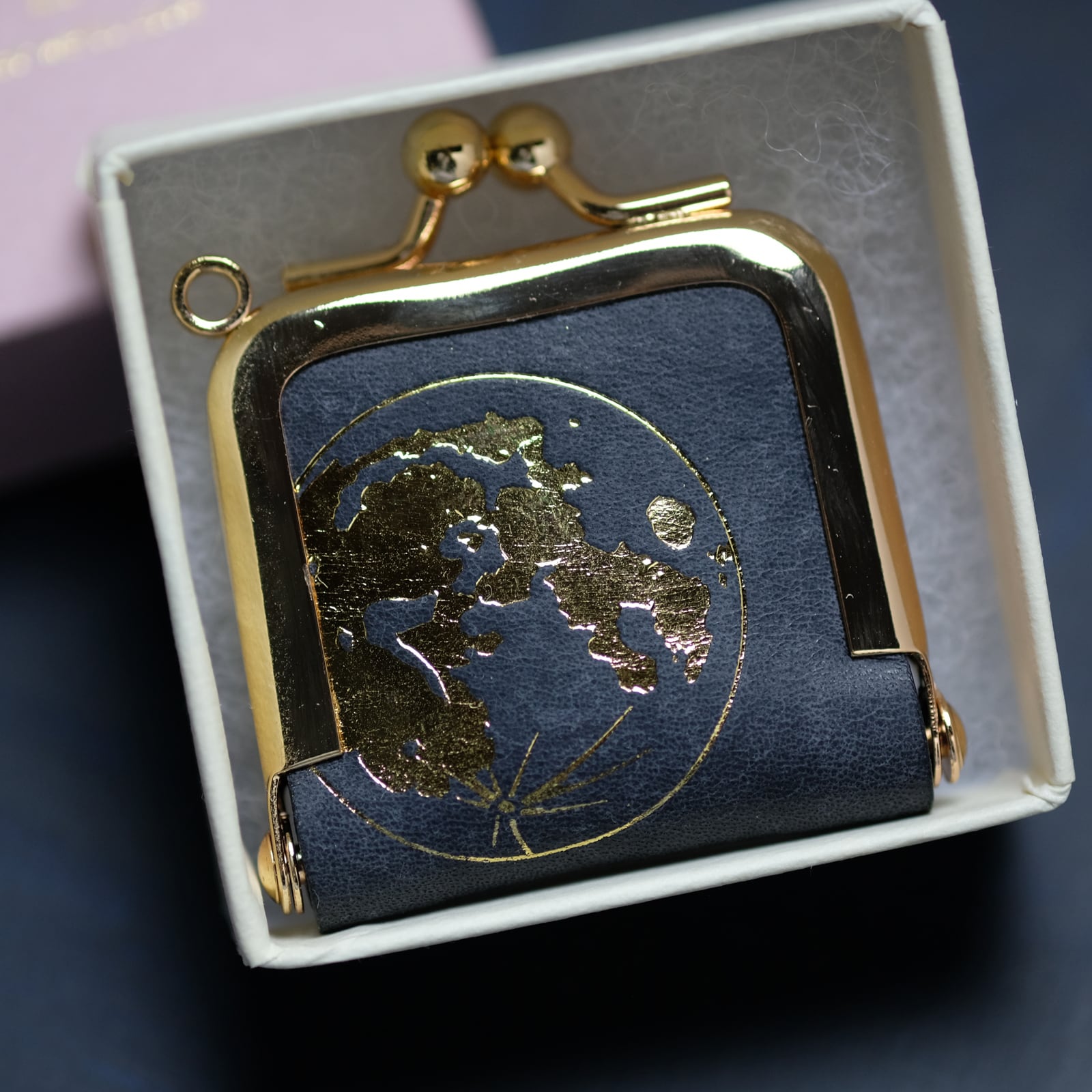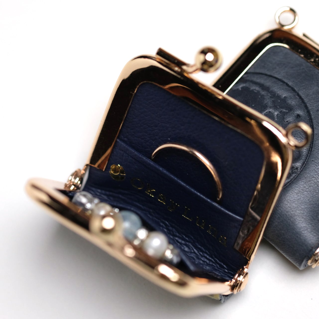 小さながま口のアクセサリーケース/ミニ小銭入れ 〈月デザイン〉
