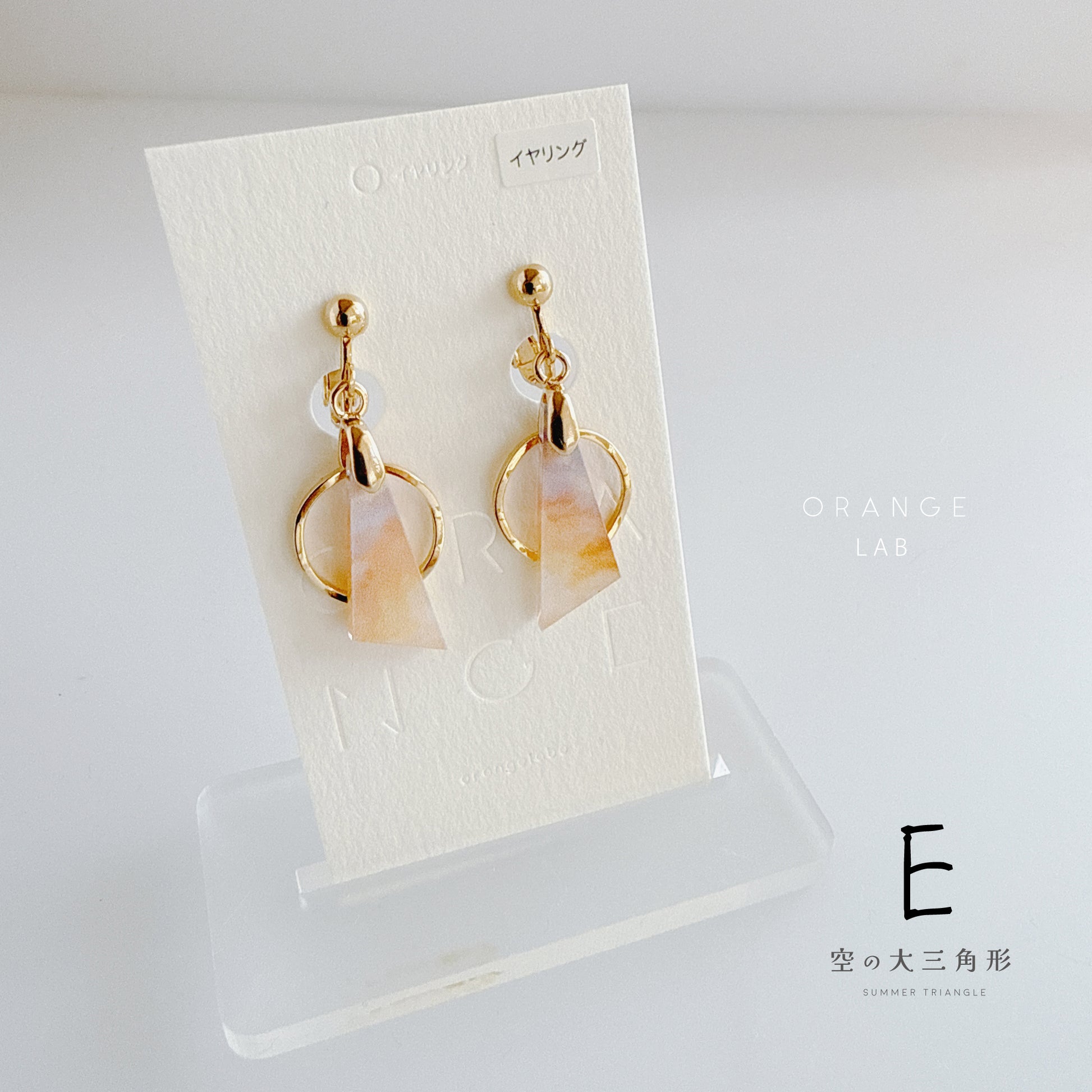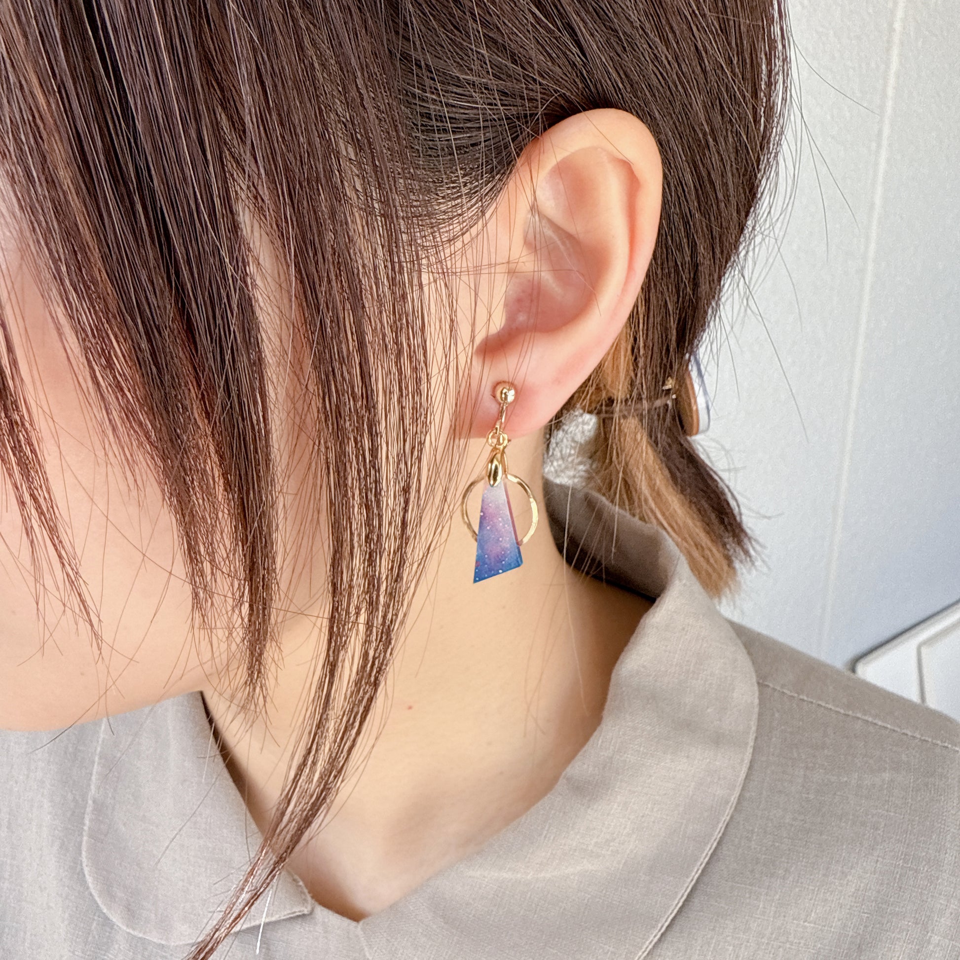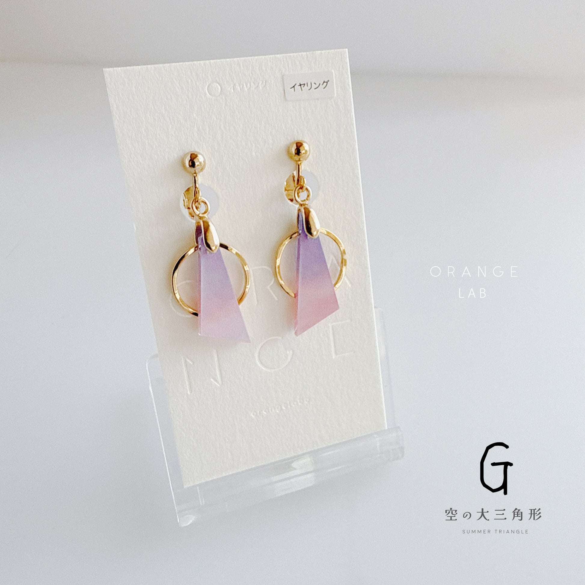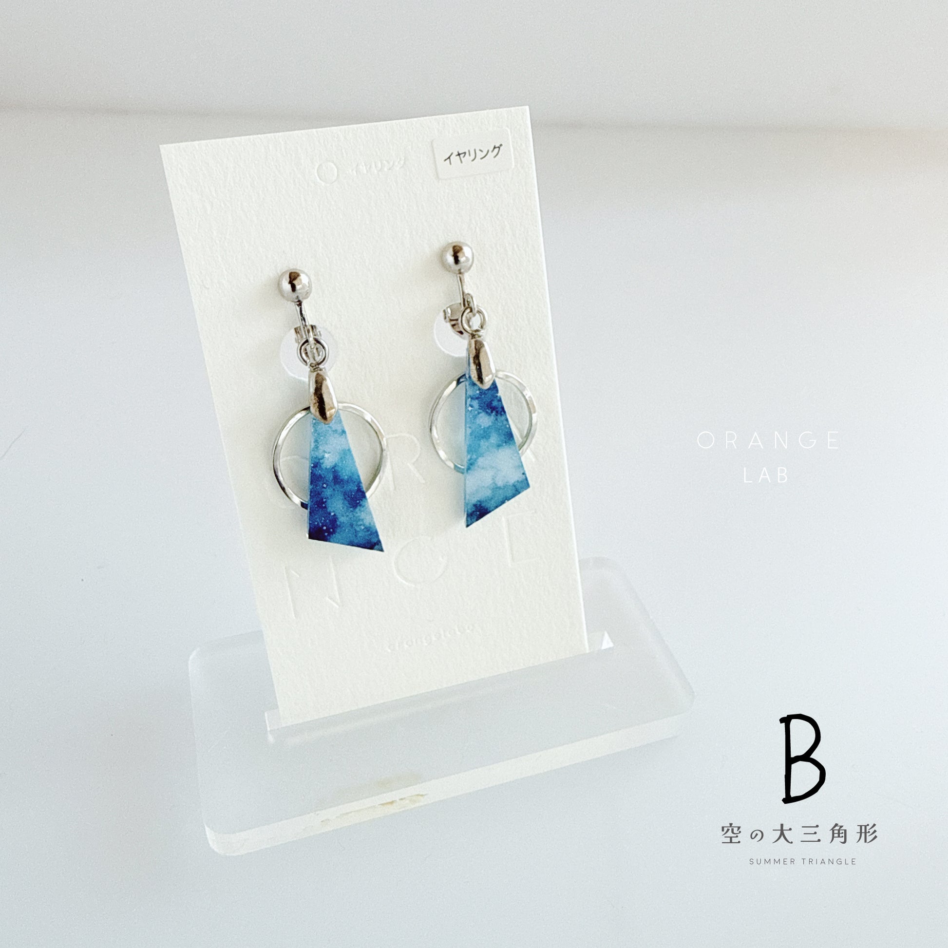 夜空に見える、こと座のベガ、わし座のアルタイル、はくちょう座のデネブの3つの1等星の大三角を耳飾りにしました。