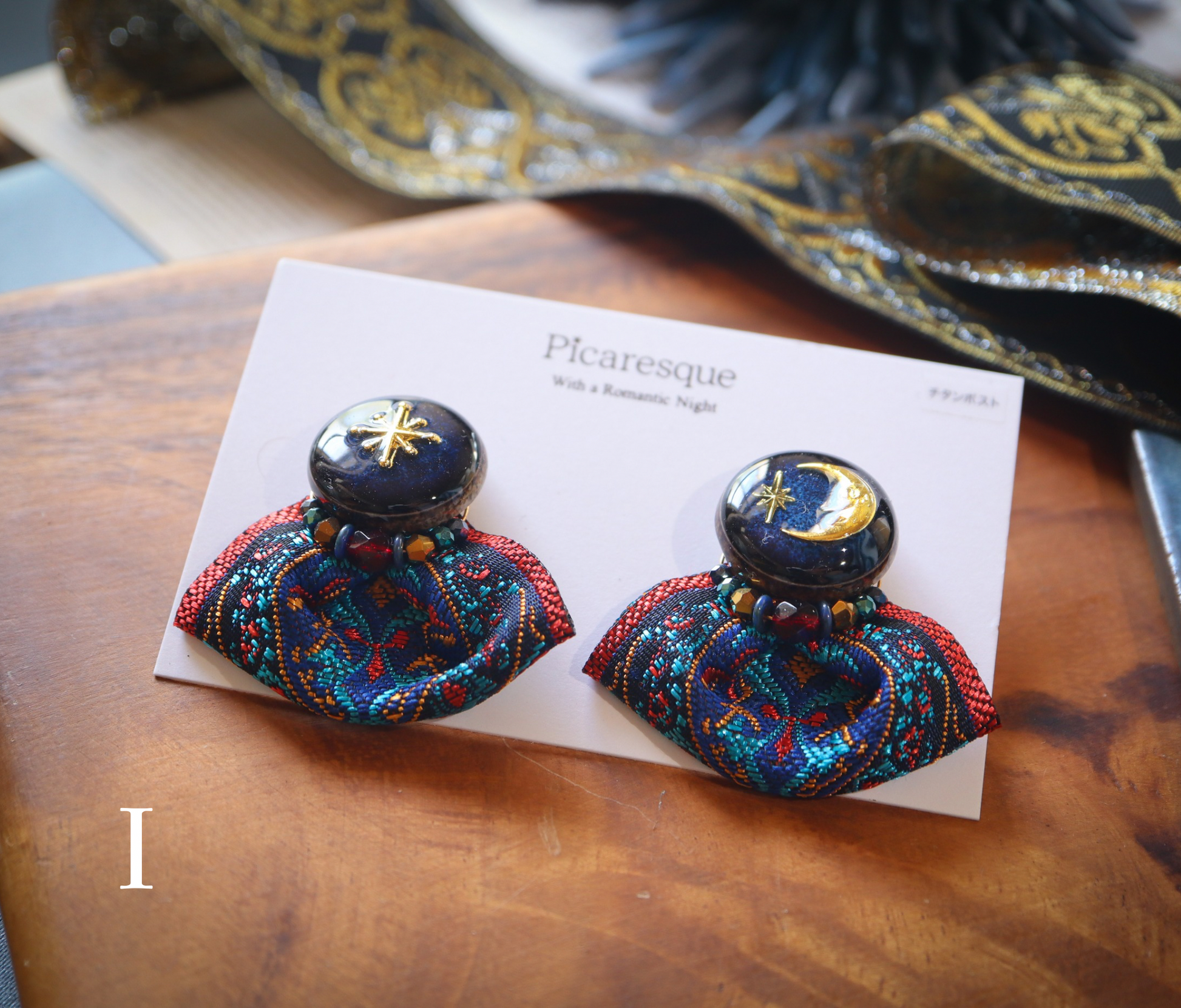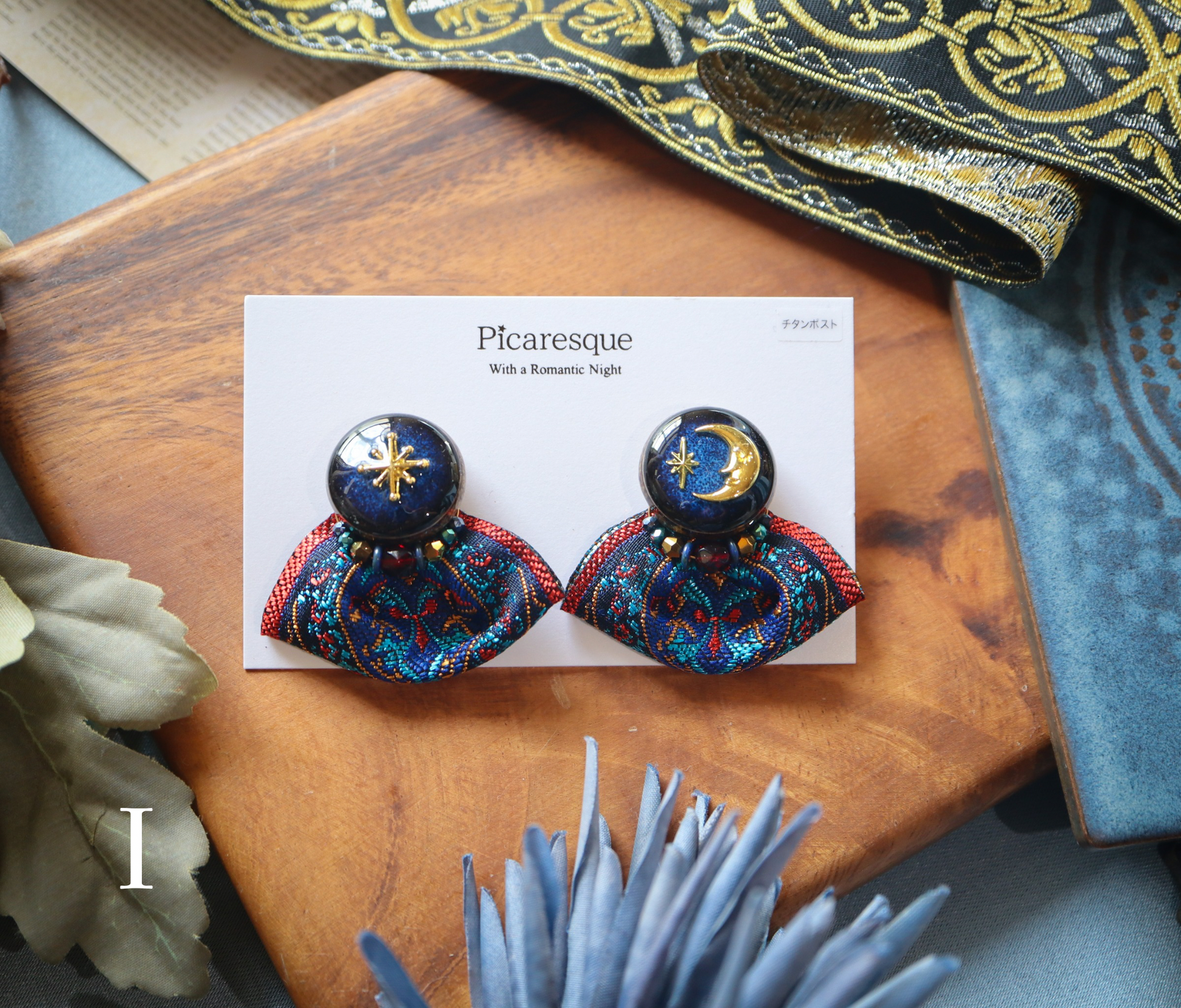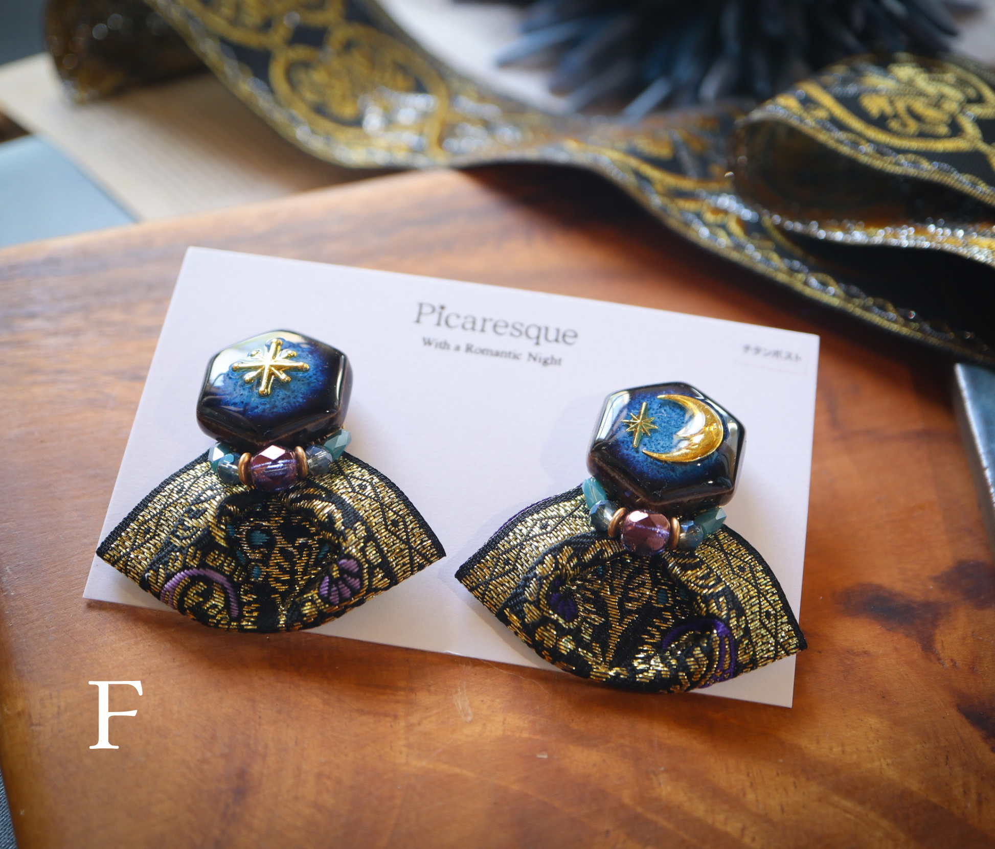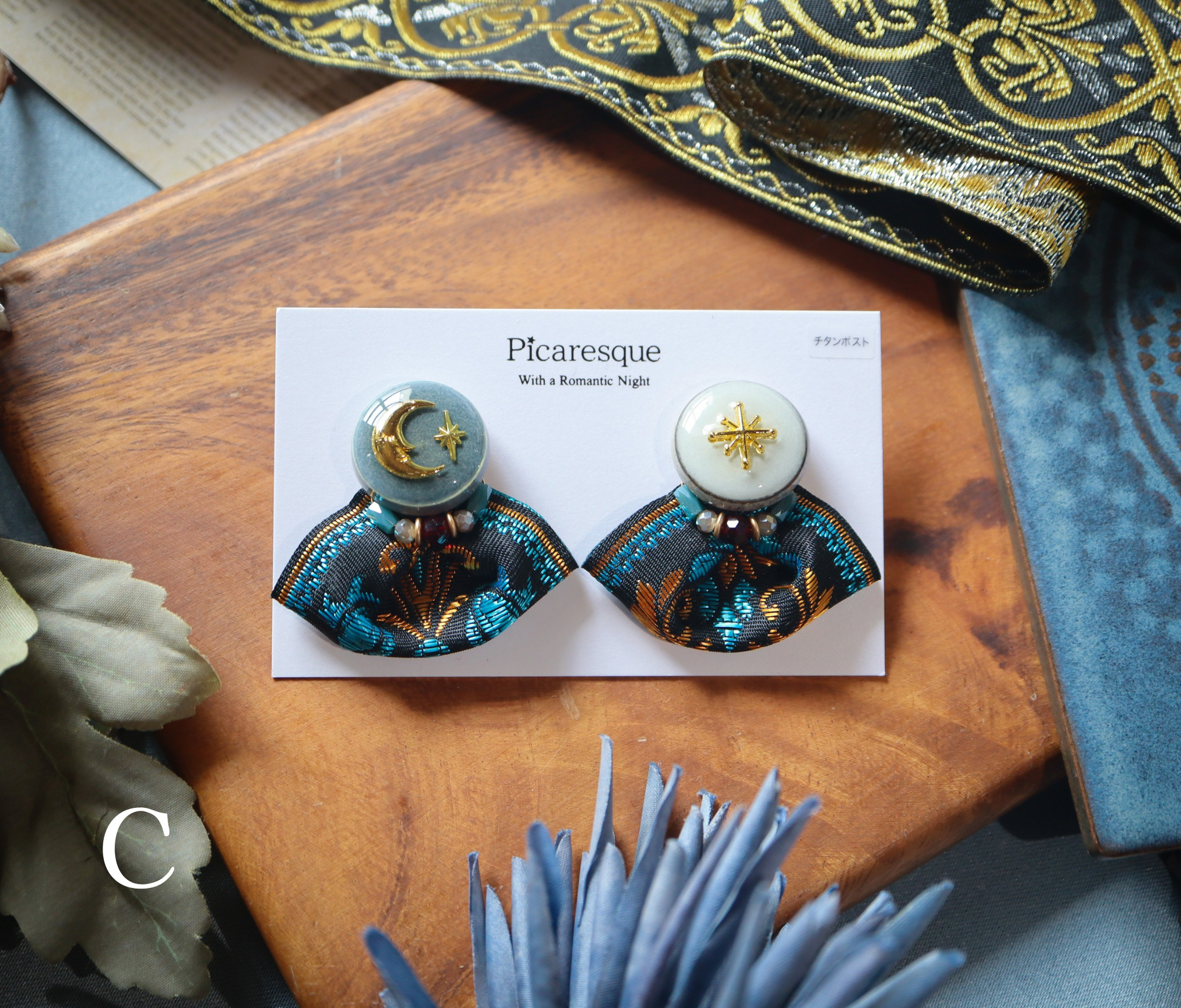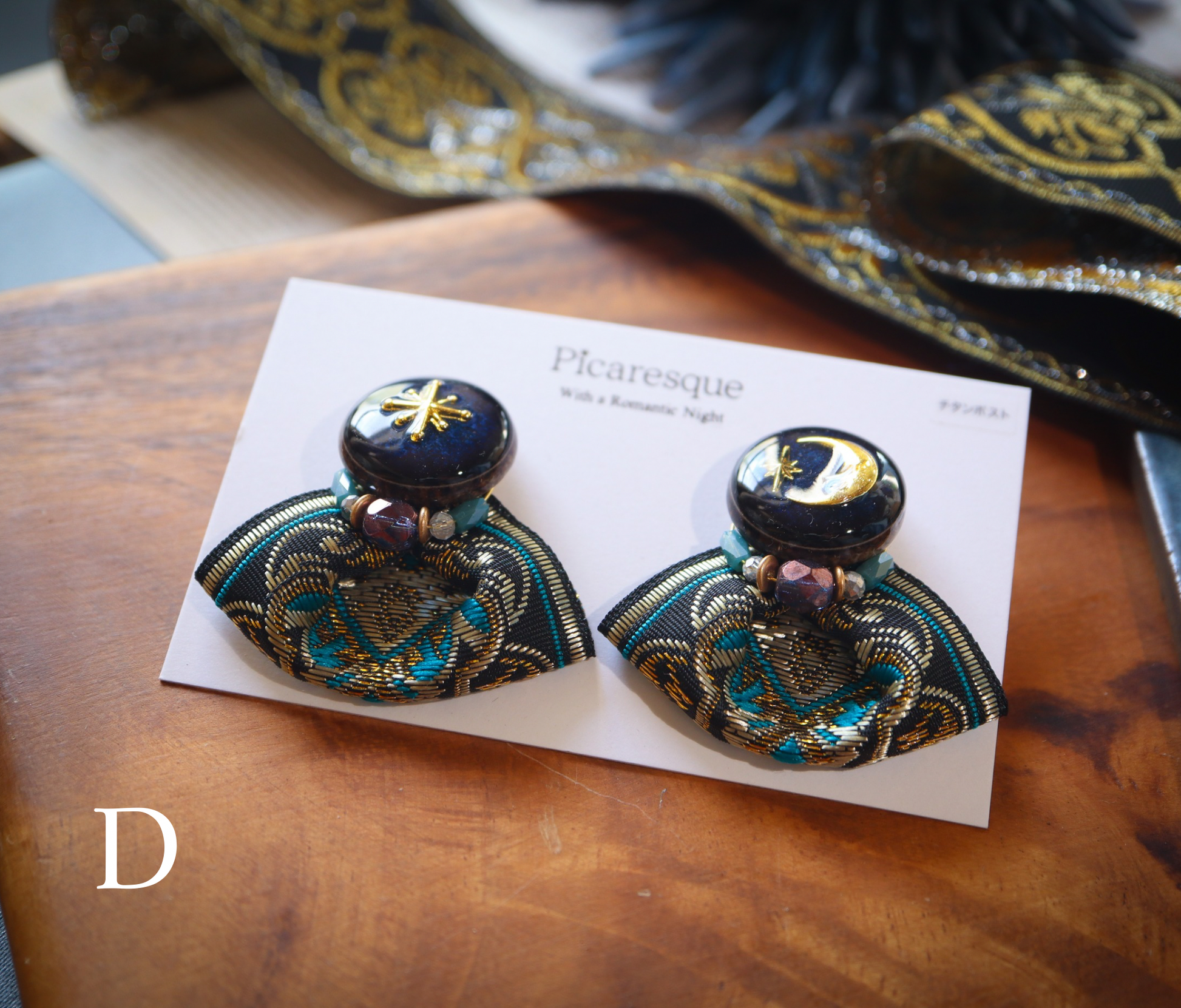 リボン×美濃焼タイル×ビーズを組み合わせたイヤリング/ピアスです。