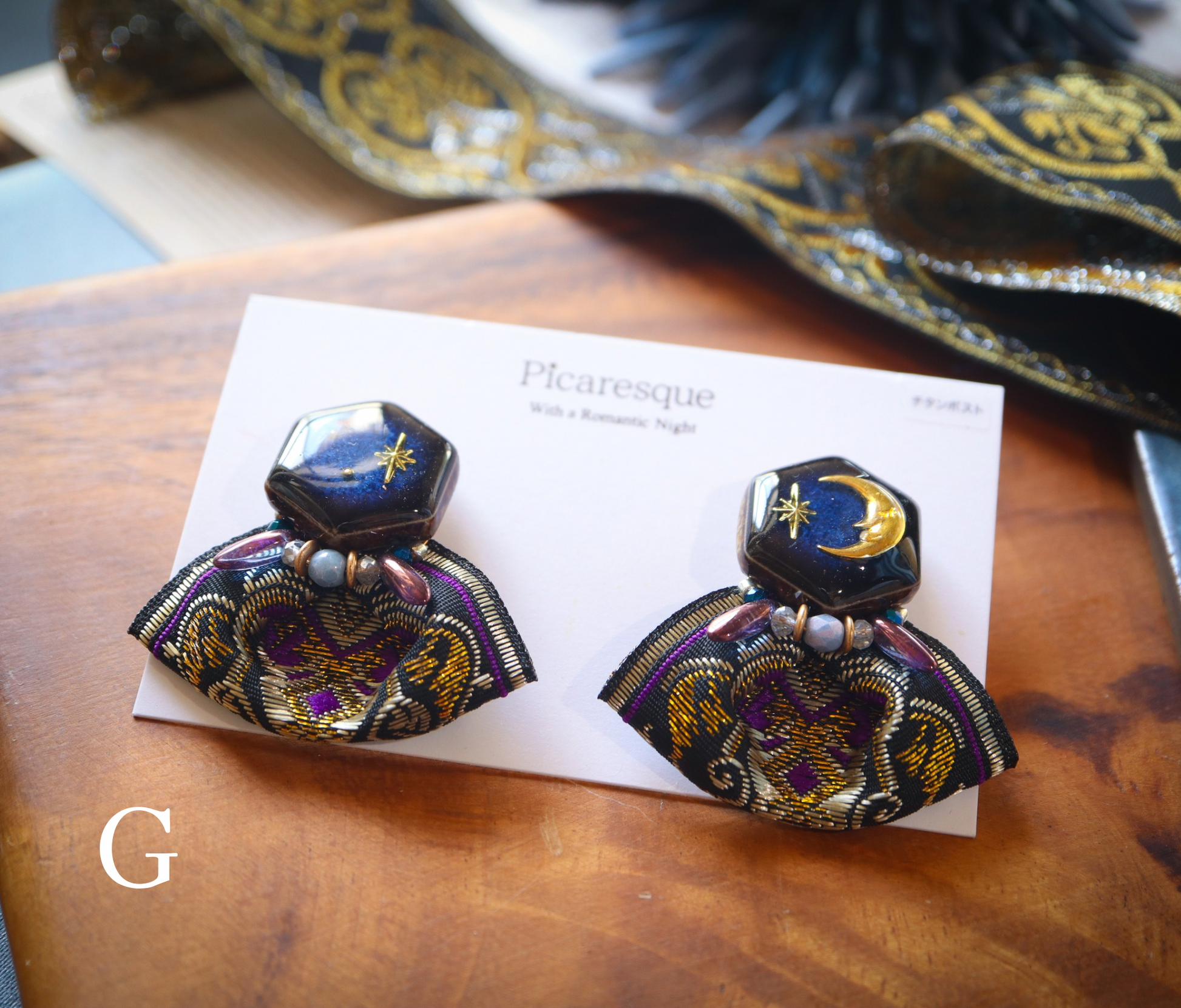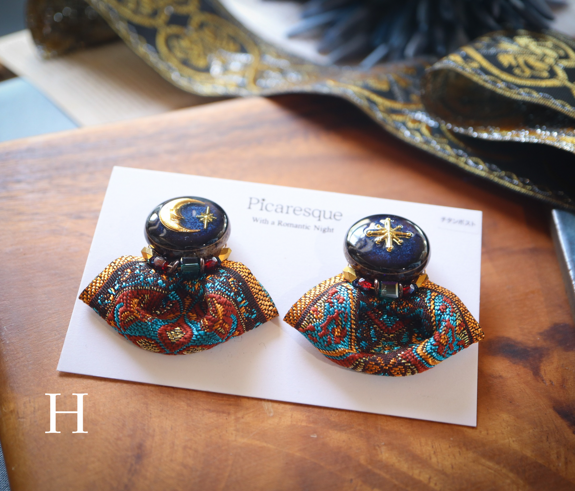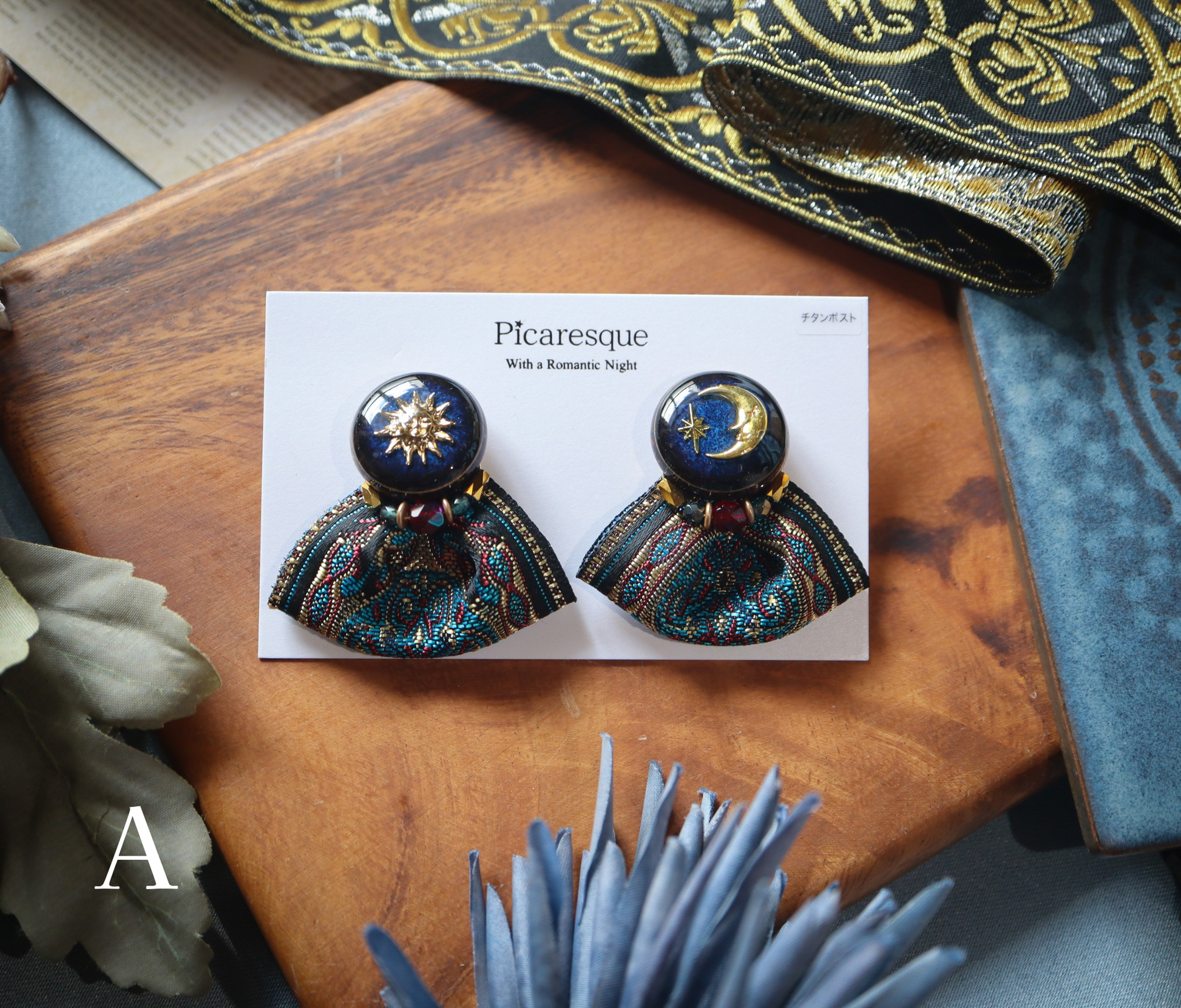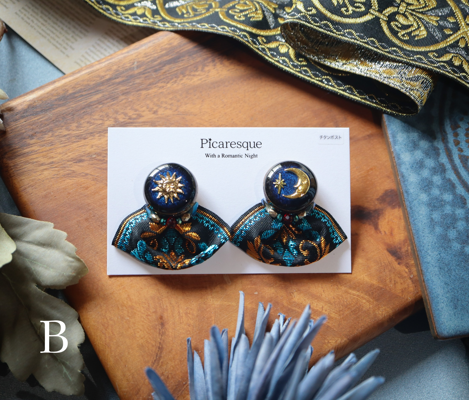 リボン×美濃焼タイル×ビーズを組み合わせたイヤリング/ピアスです。