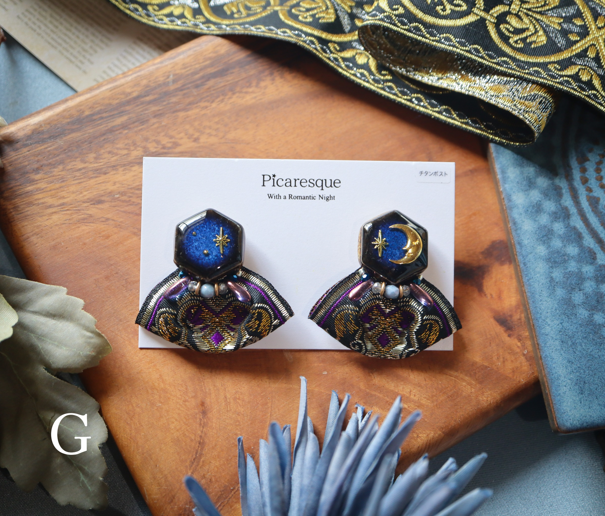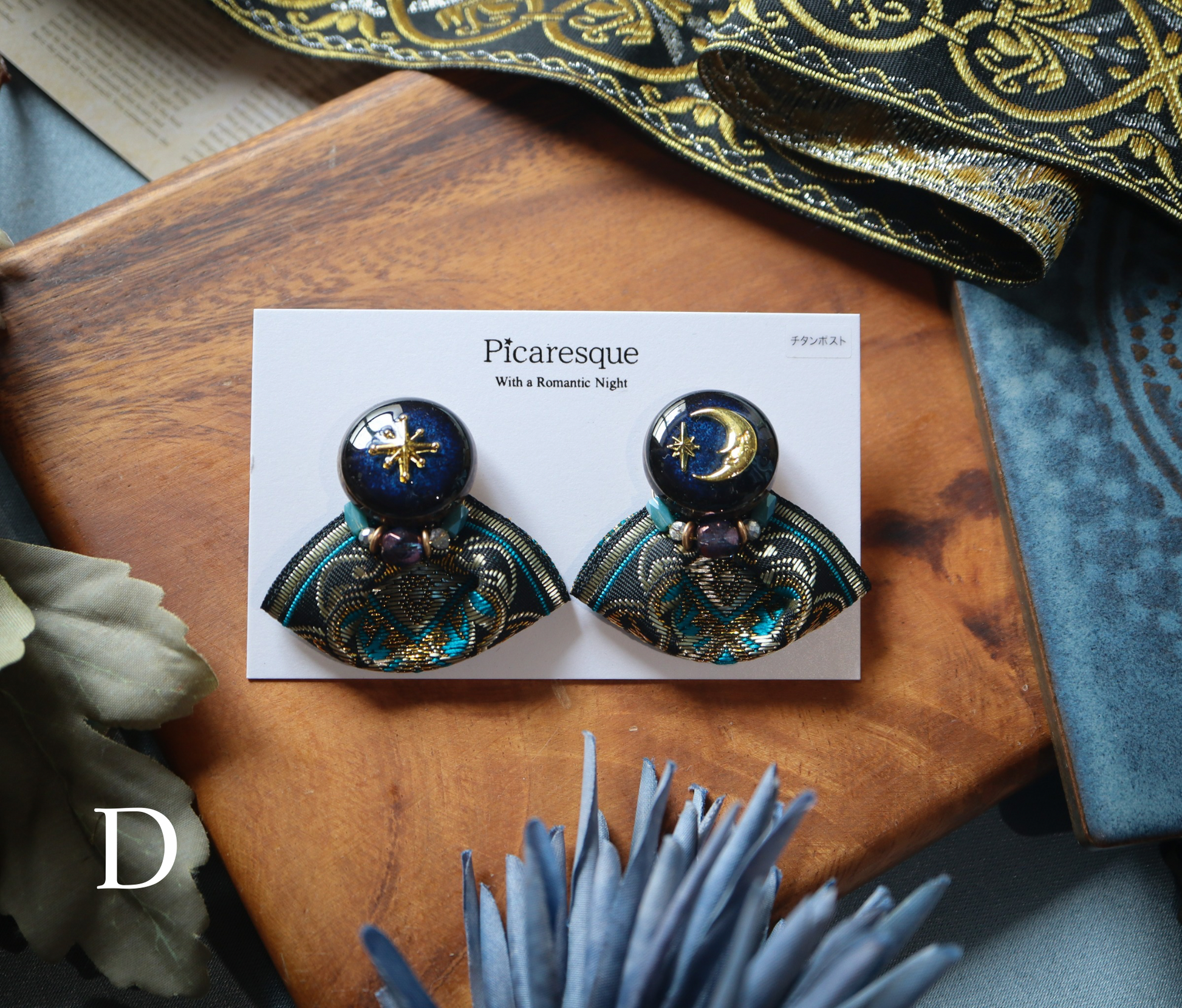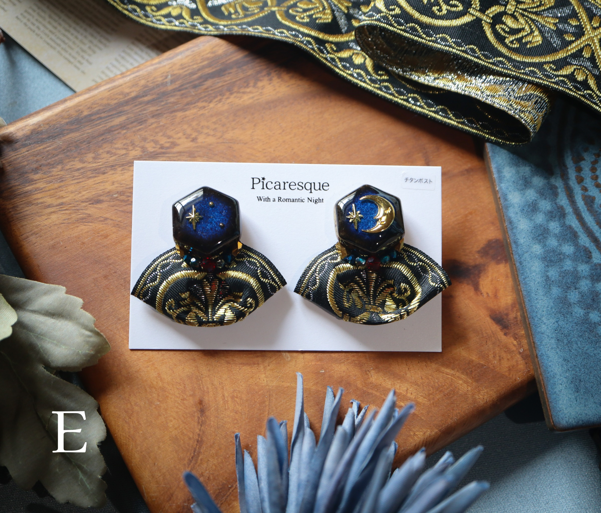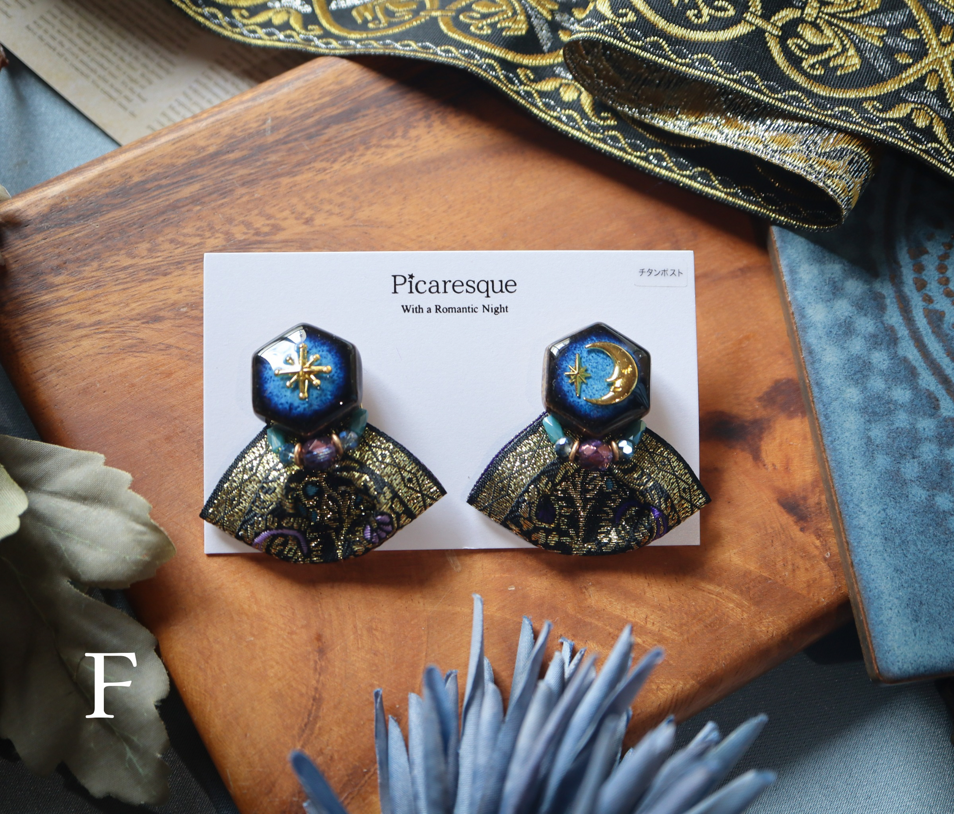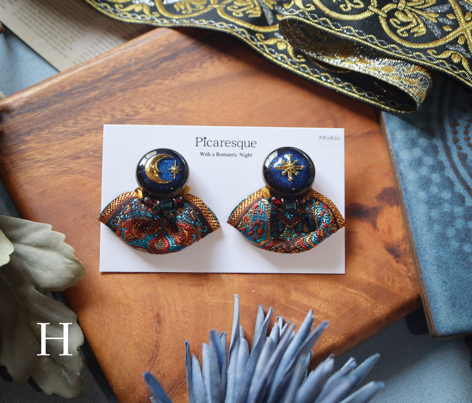 リボン×美濃焼タイル×ビーズを組み合わせたイヤリング/ピアスです。