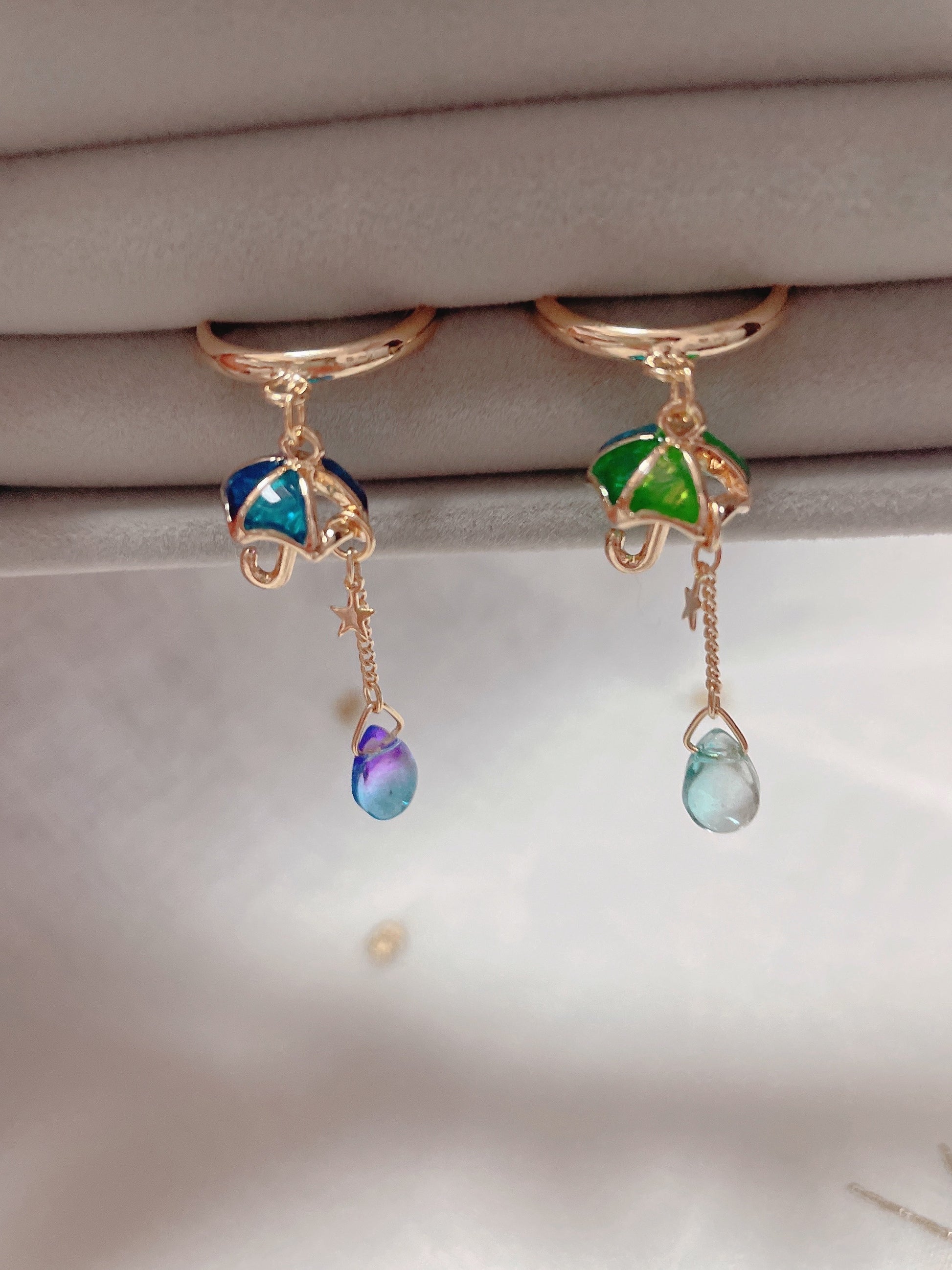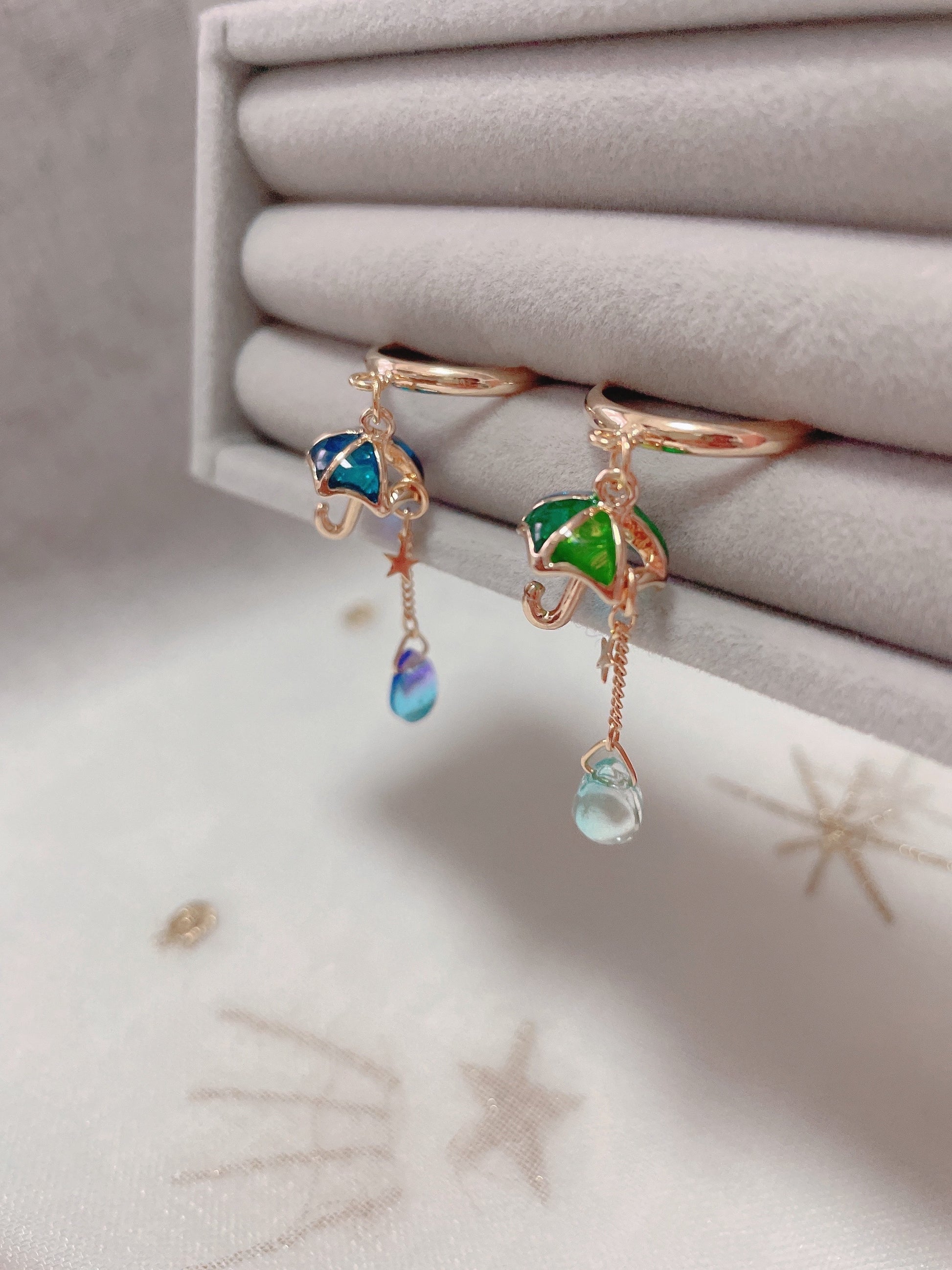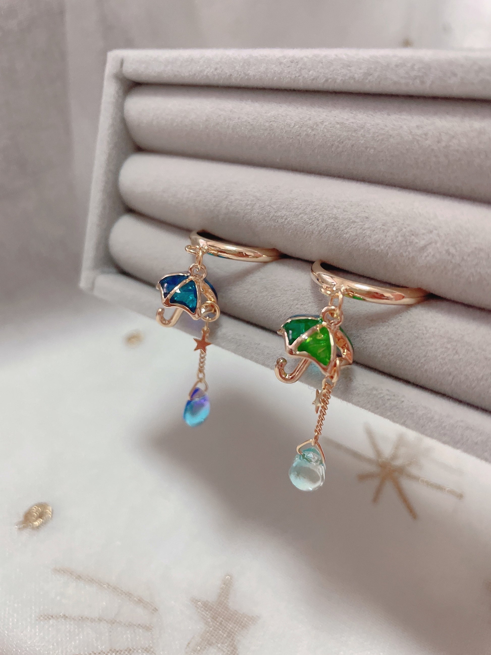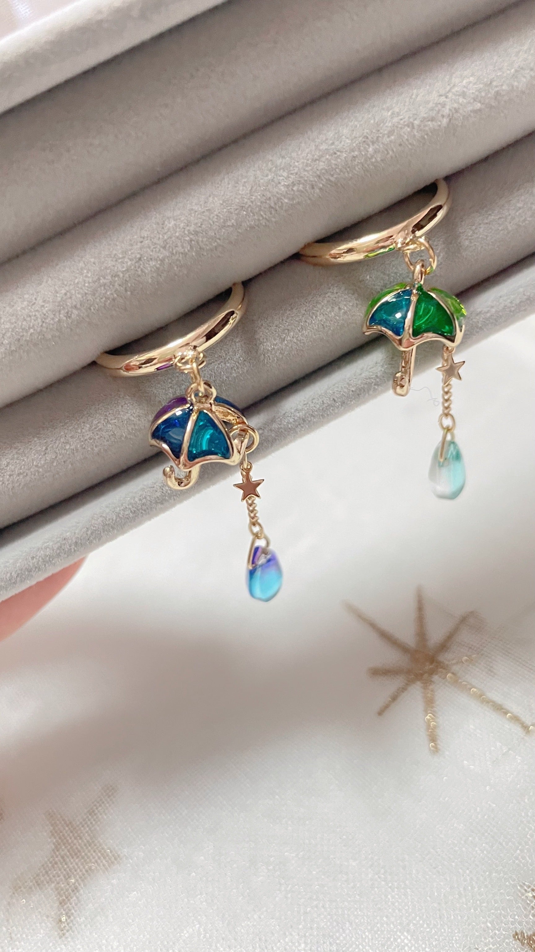 傘と雫のビーズが指先で揺れて、そっとかわいさを添えてくれます。