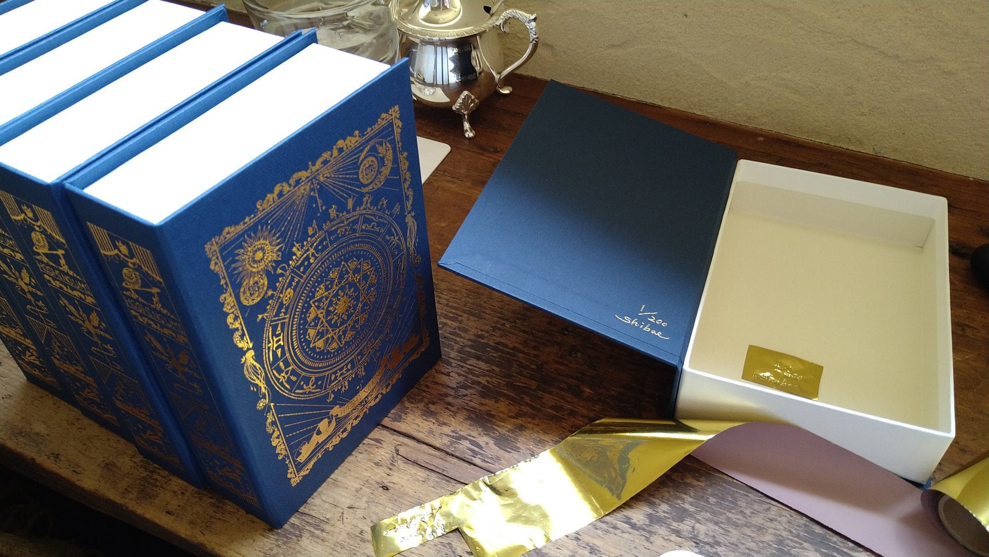 職人さんが手彫りした版で作った、限定200個の全面箔押しの箱です。