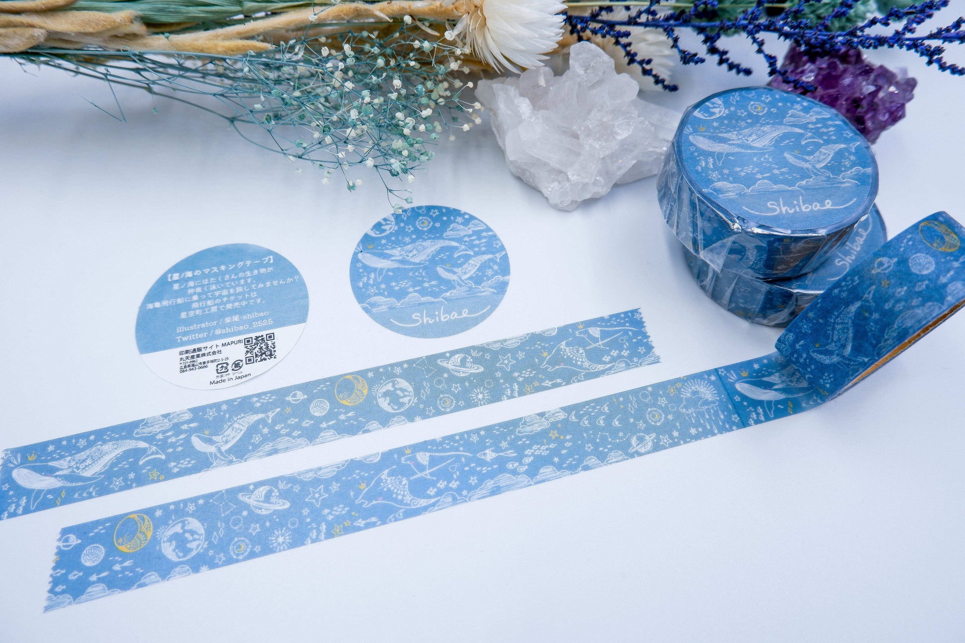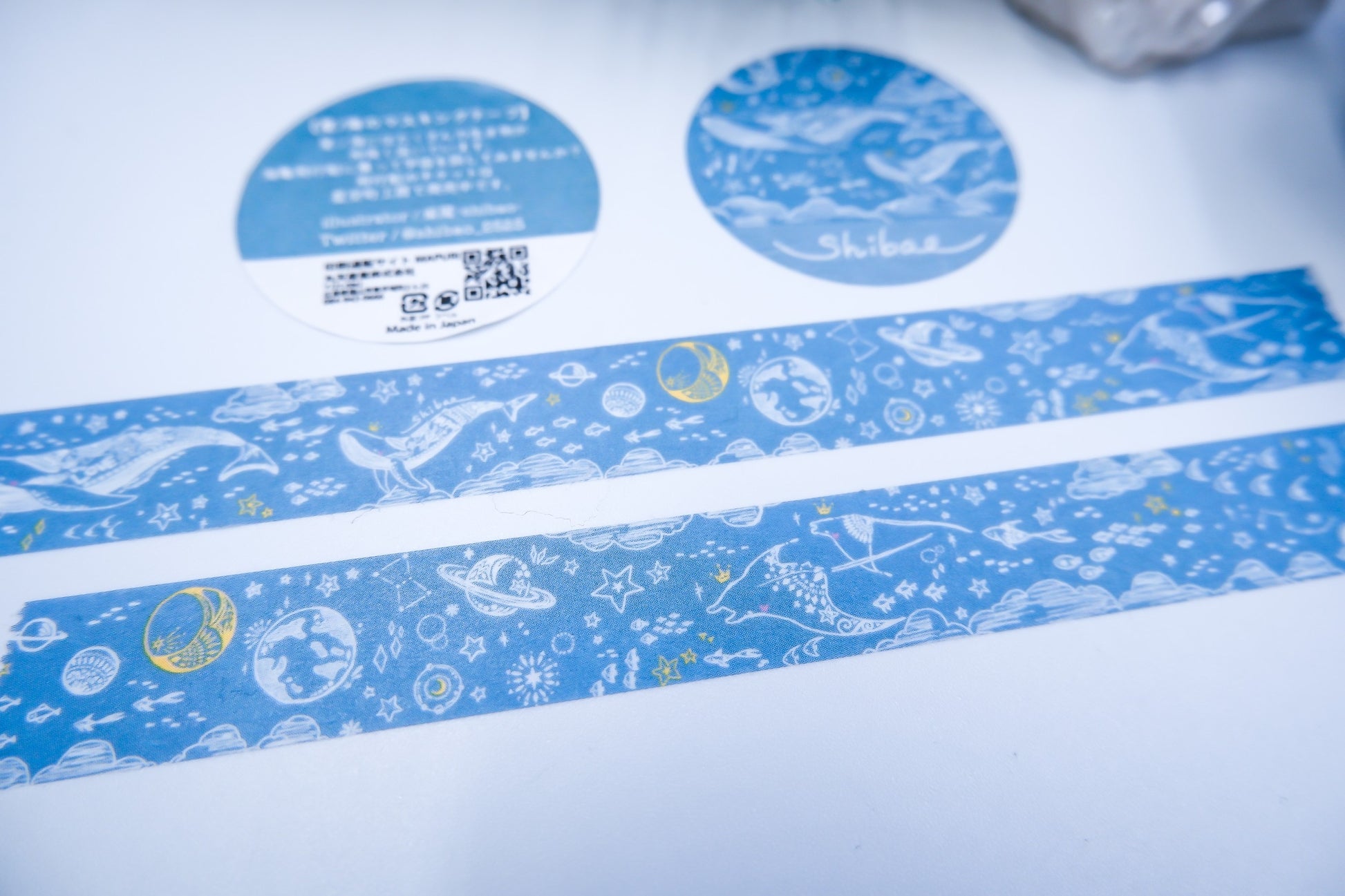 星ノ海を泳ぐ、くじらやマンタが描かれたマスキングテープです。