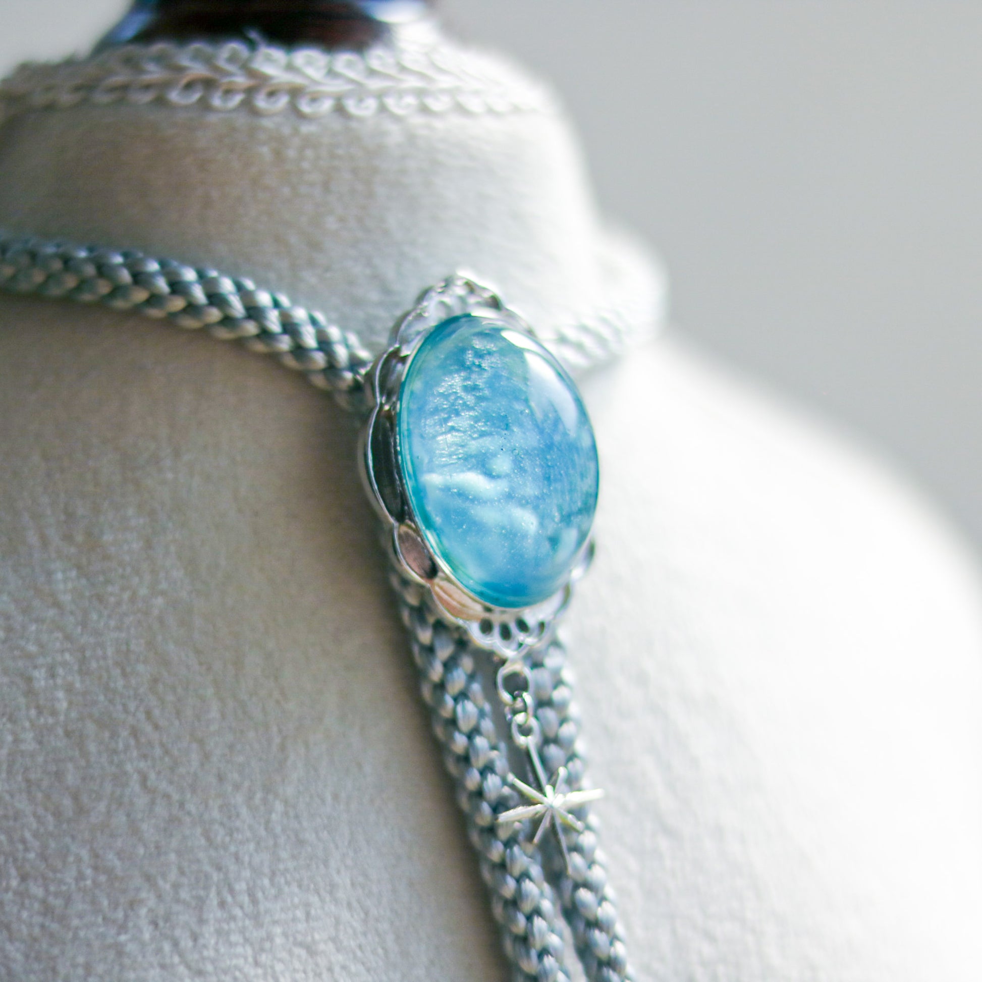 [stained glass candy] loop tie / 雲と青空 -silver-