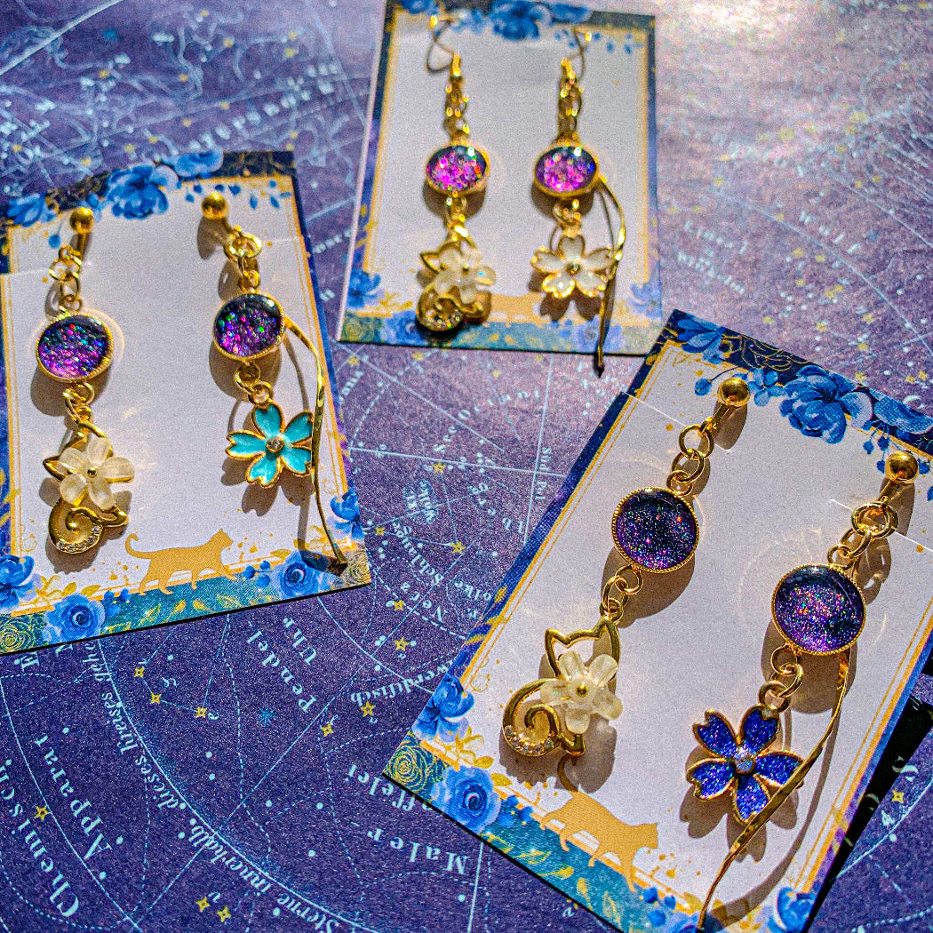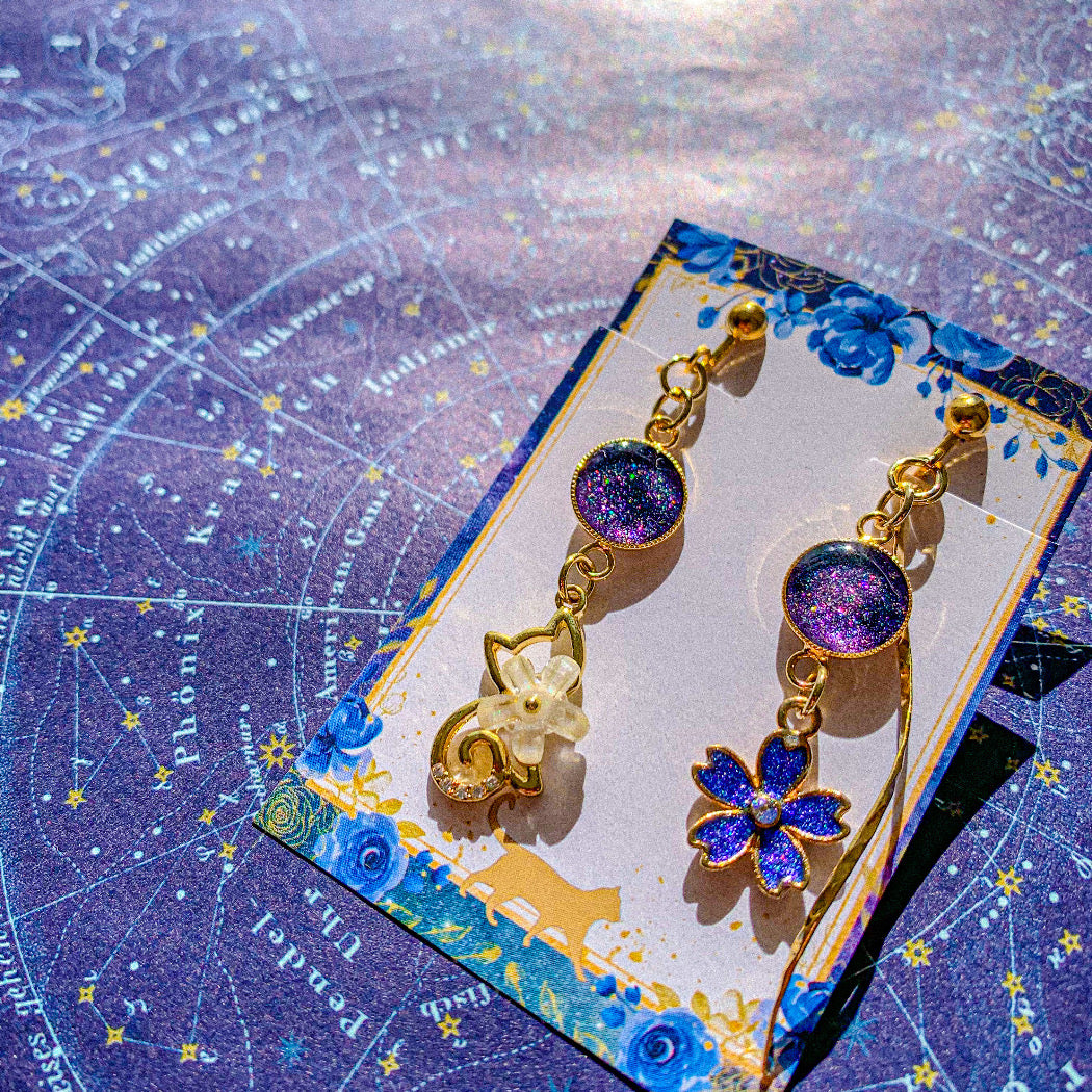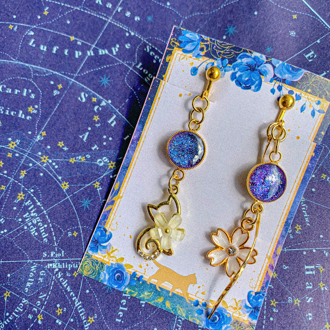 桜摘む猫の満天の星空耳飾り 〜 宇宙に咲く桜 満天の星空を桜に閉じ込めて 〜