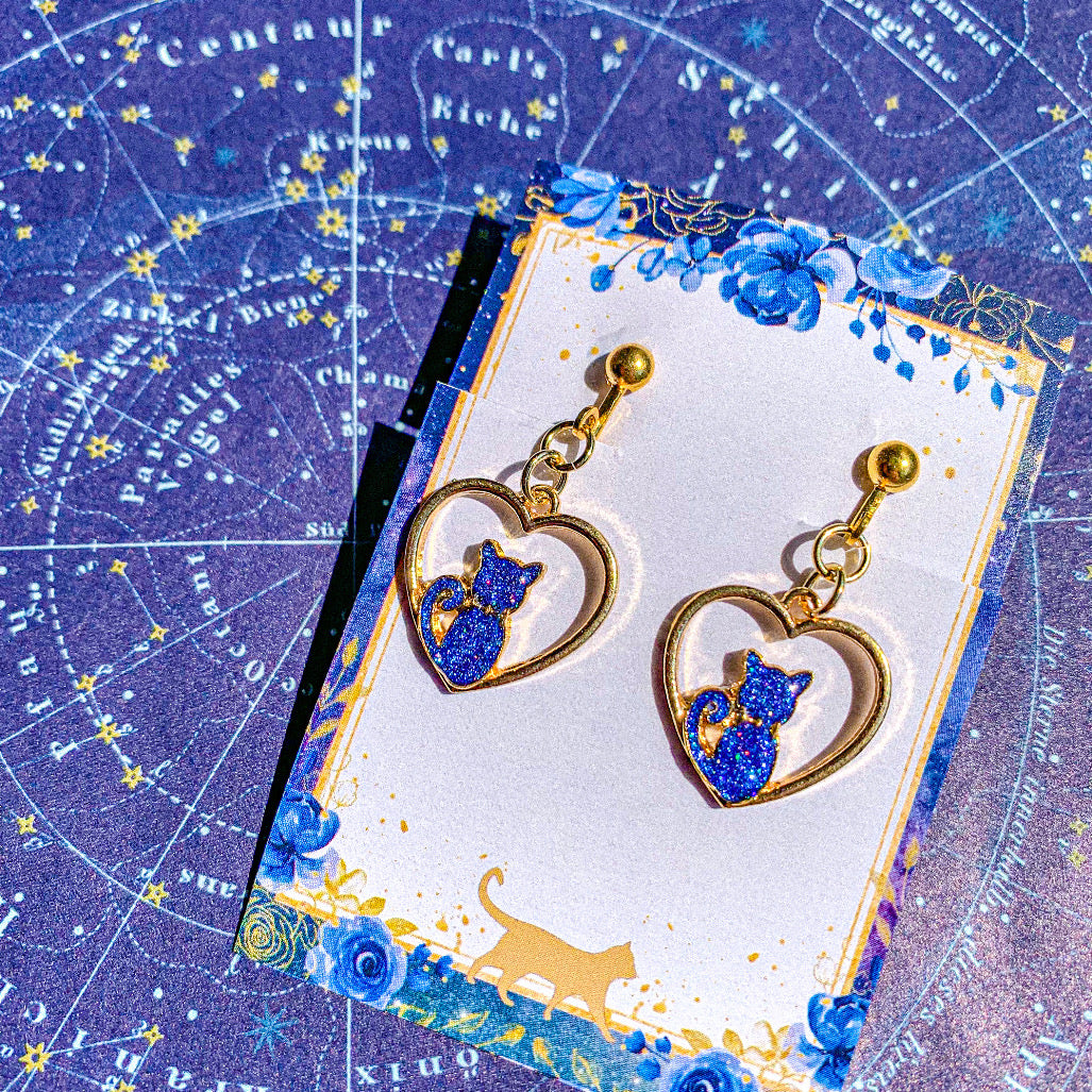 宇宙猫のハート耳飾り 〜 満天の星空に染められて 〜