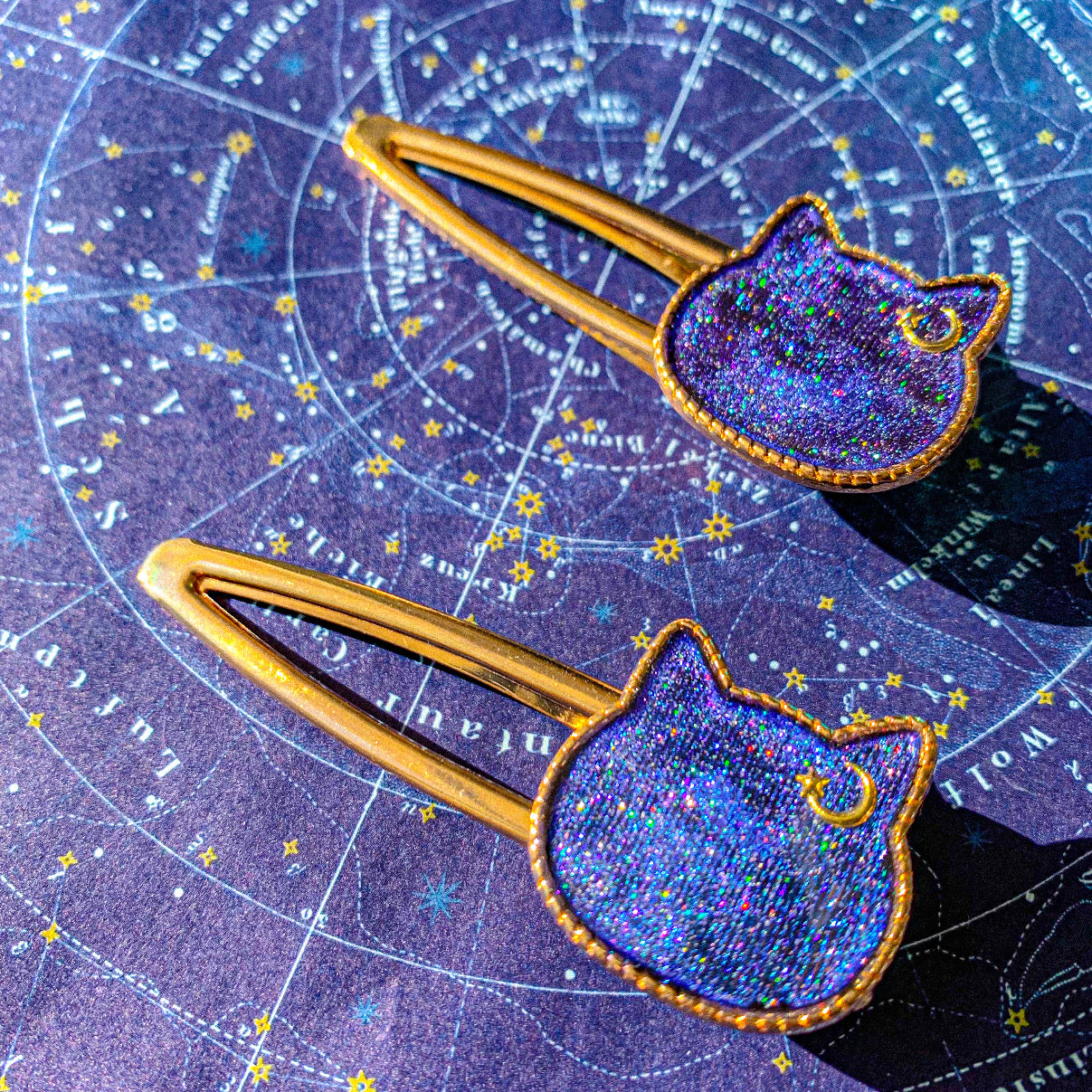 【新作】星空猫のヘアクリップ~ お月様を耳飾りに ~ ~ 猫月夜シリーズ ~【宙フェス夜市限定品】