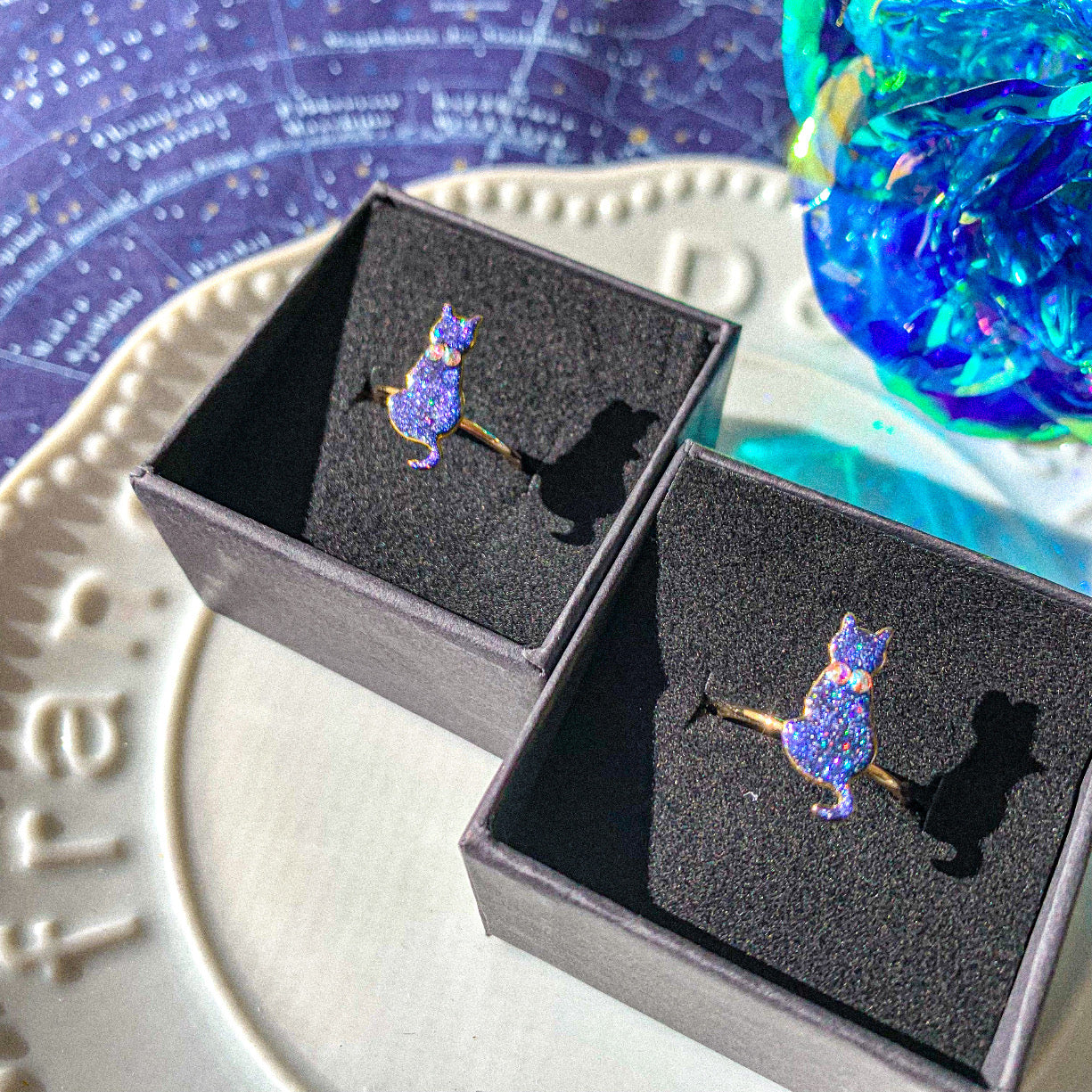 【新作】宇宙猫シルエットリング ~ 満天の星空に染められて ~