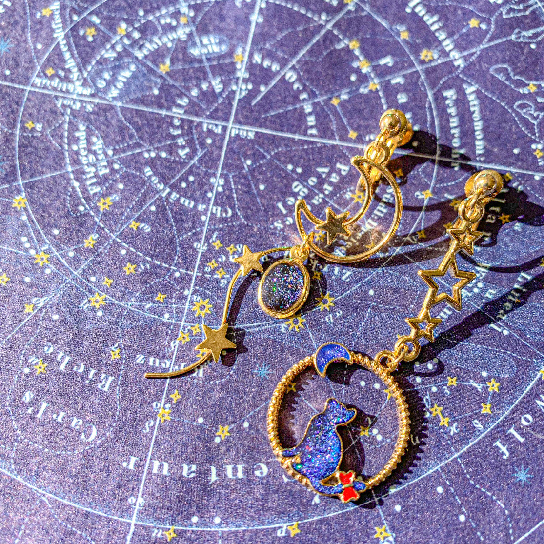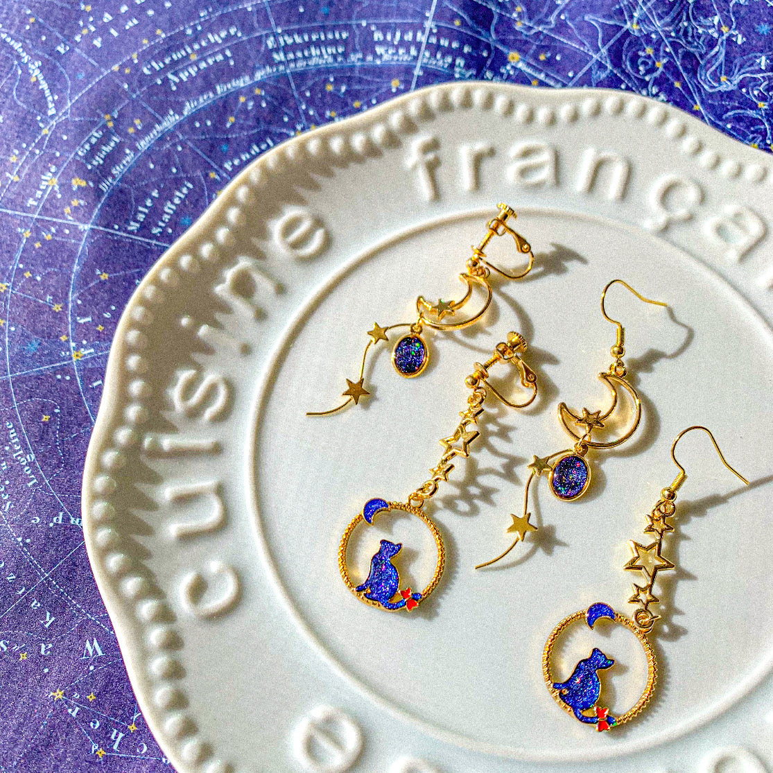 【新作】宇宙猫の耳飾り 〜 星空に煌めく月を眺めて 〜