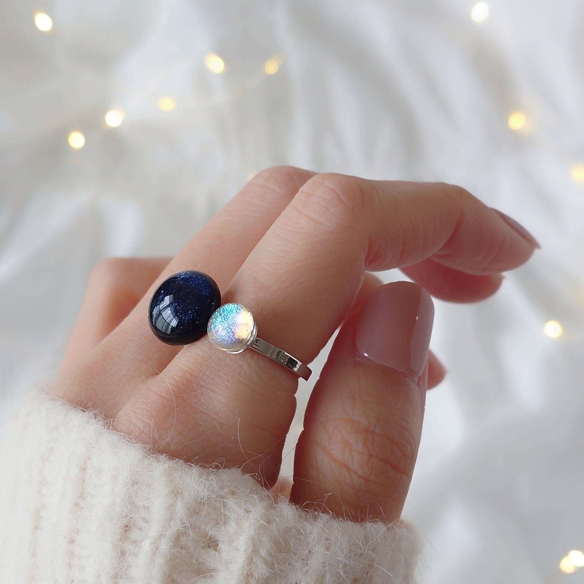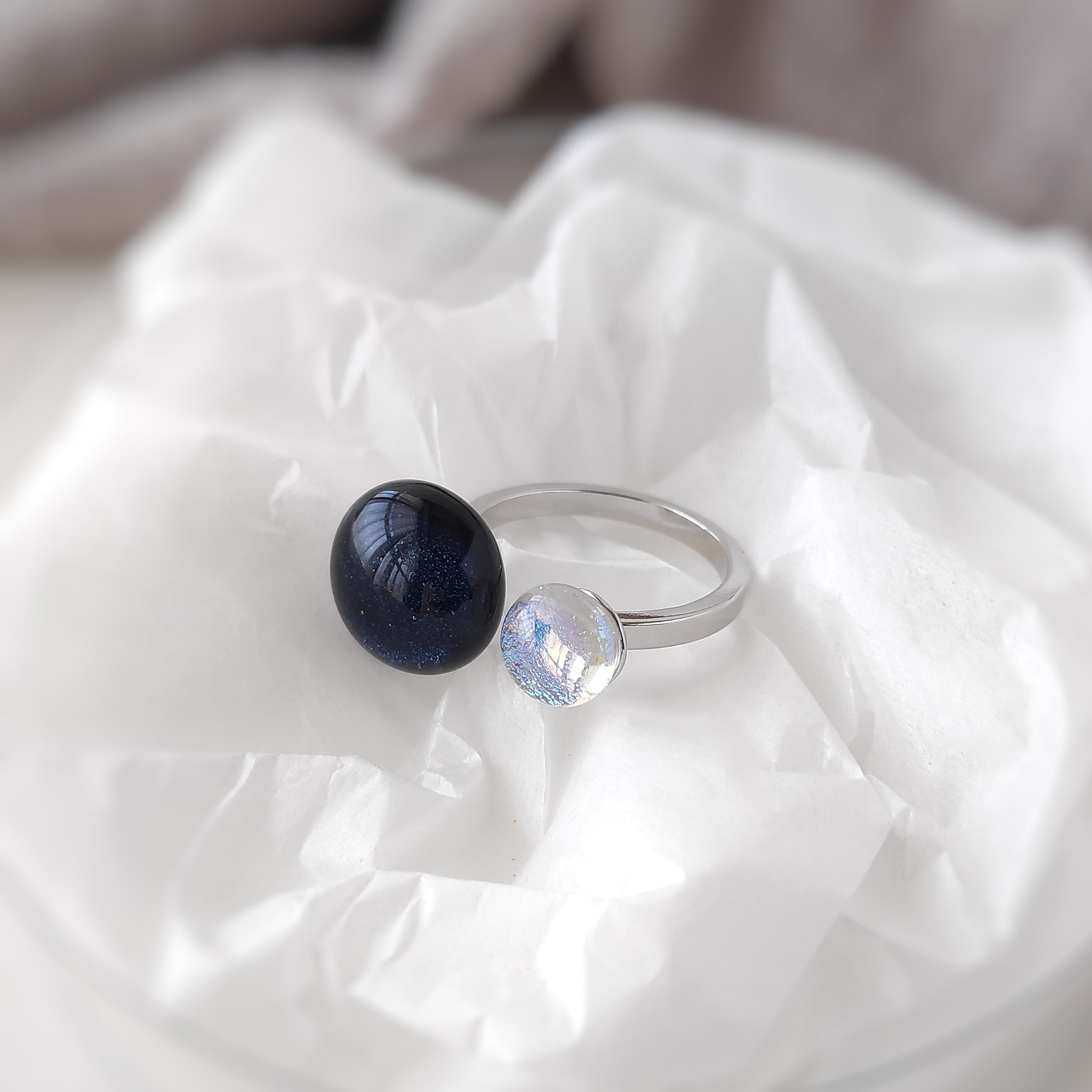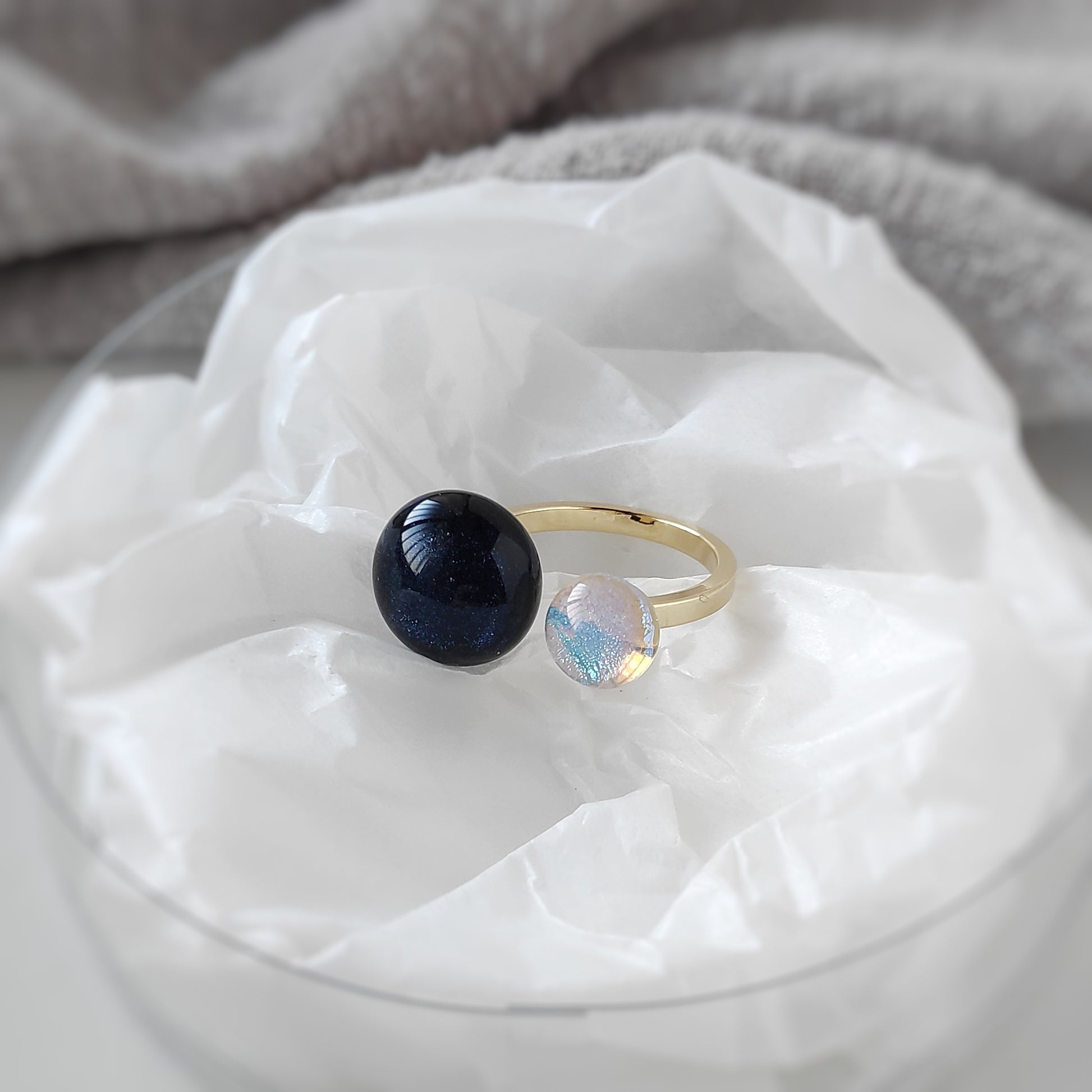 夜空とオーロラが織りなすキラキラを感じられるフォークリングです。