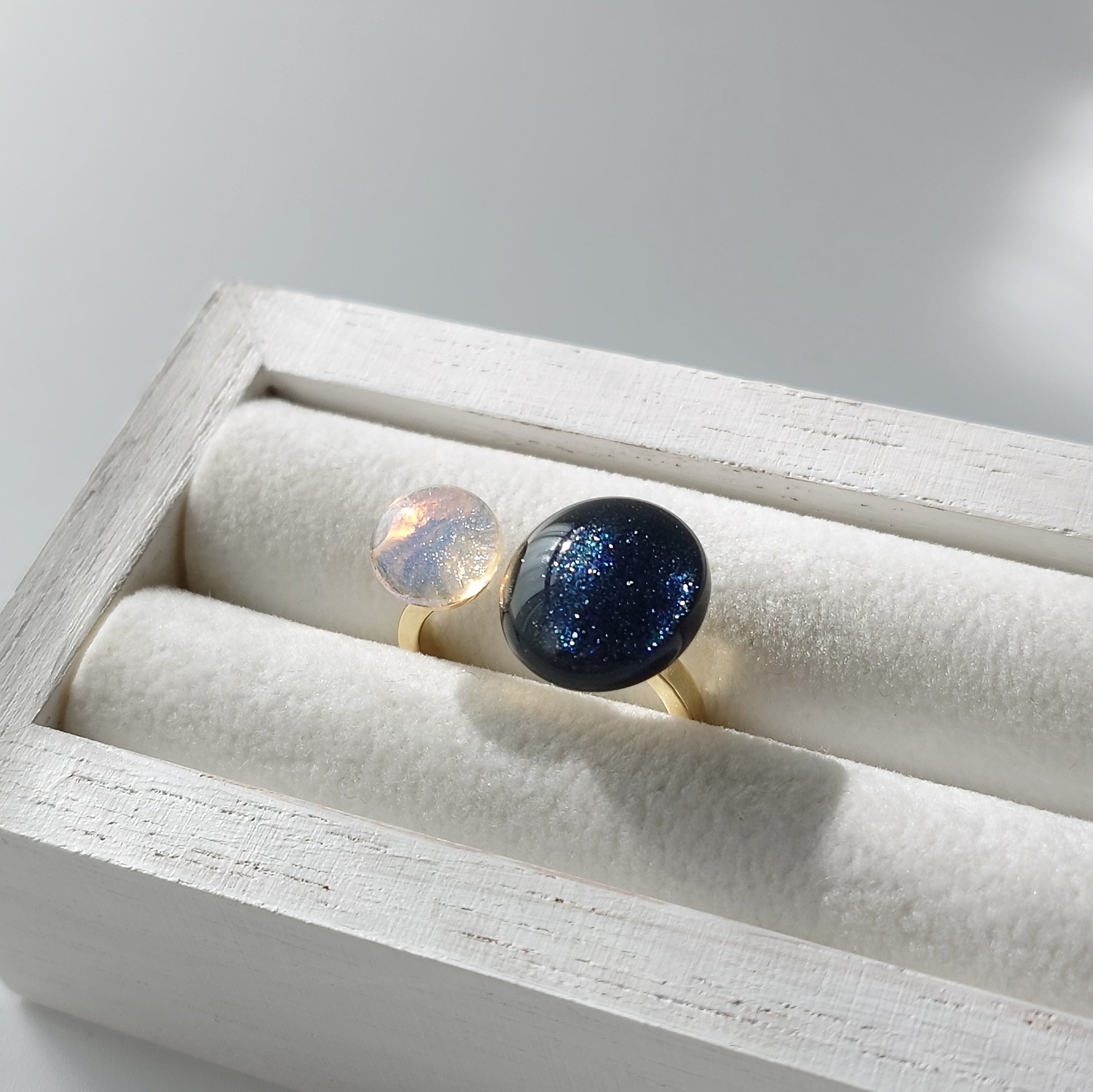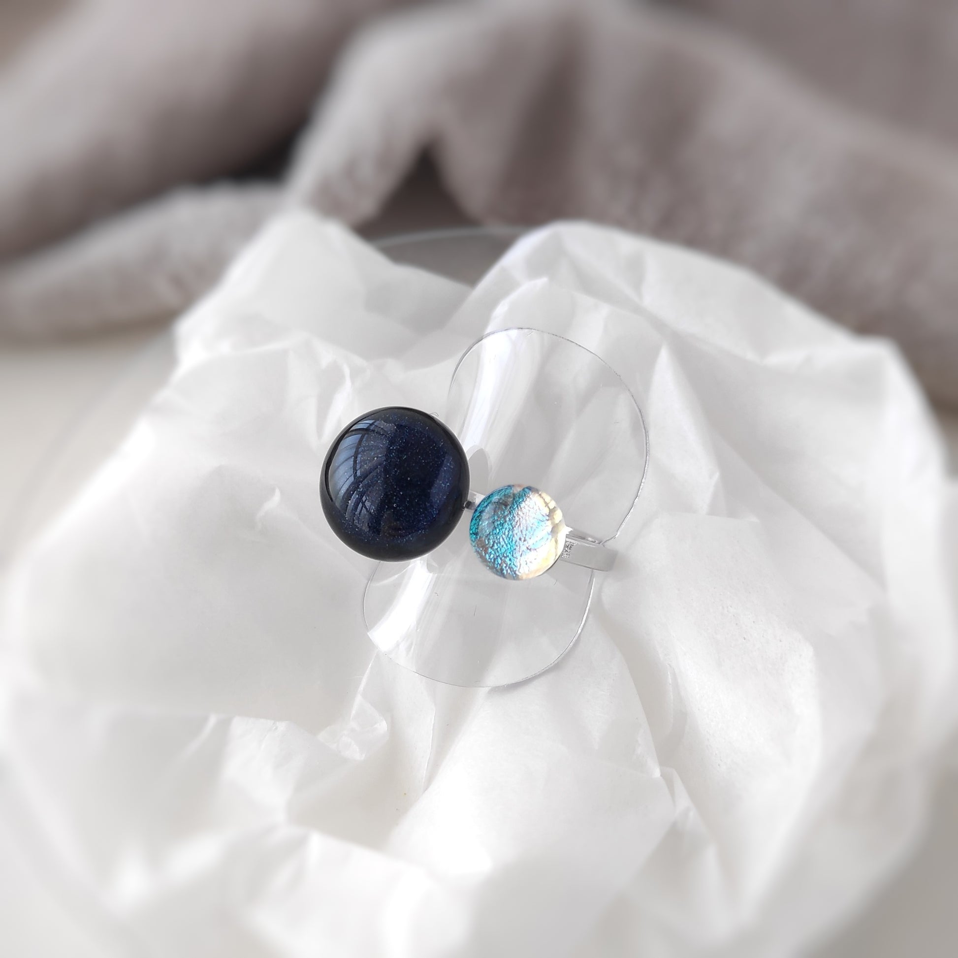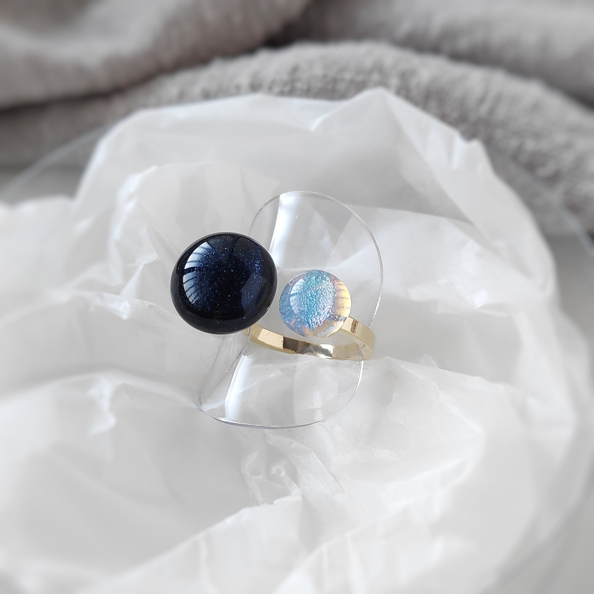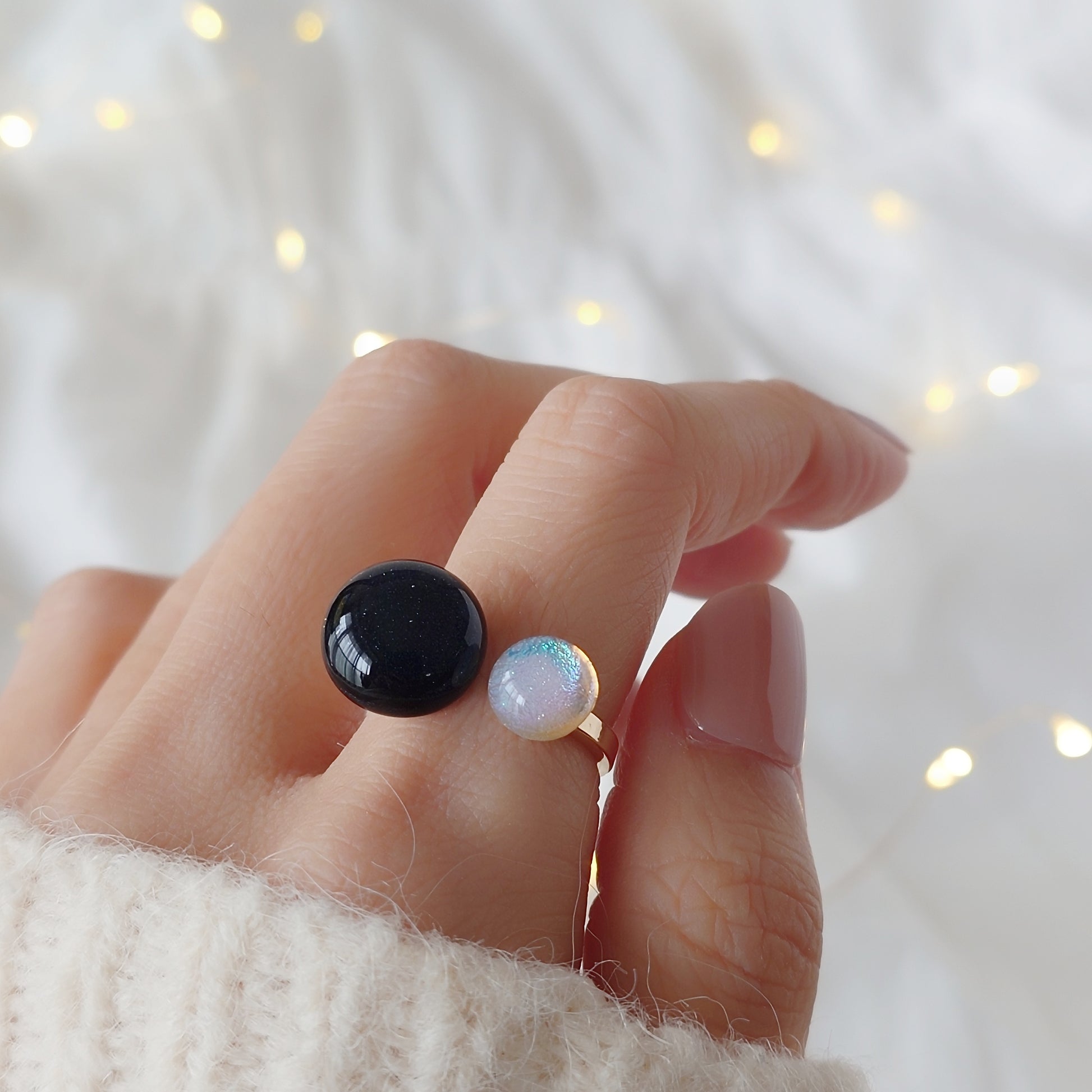 夜空とオーロラが織りなすキラキラを感じられるフォークリングです。