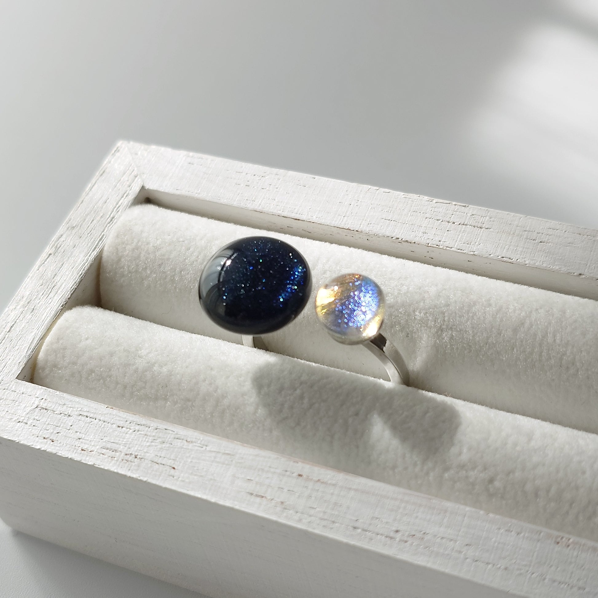 夜空のようにキラキラした濃いブルーのガラスから作った