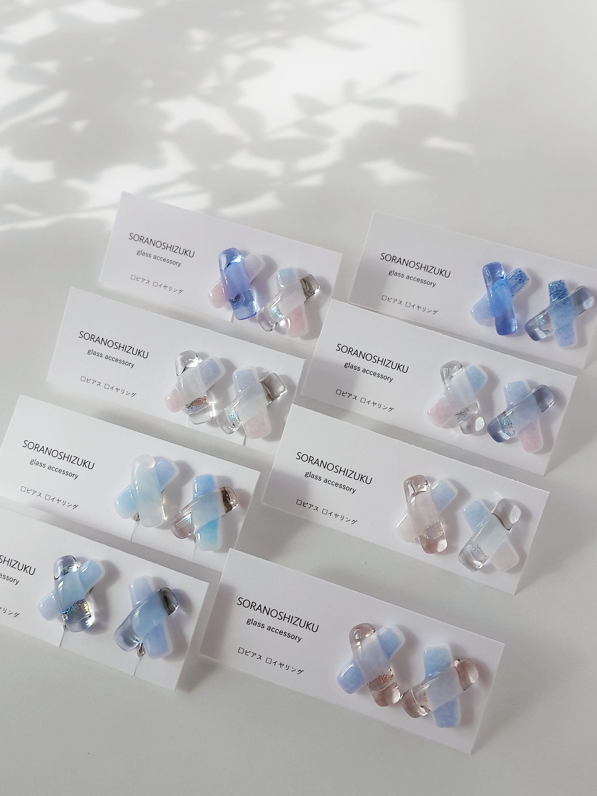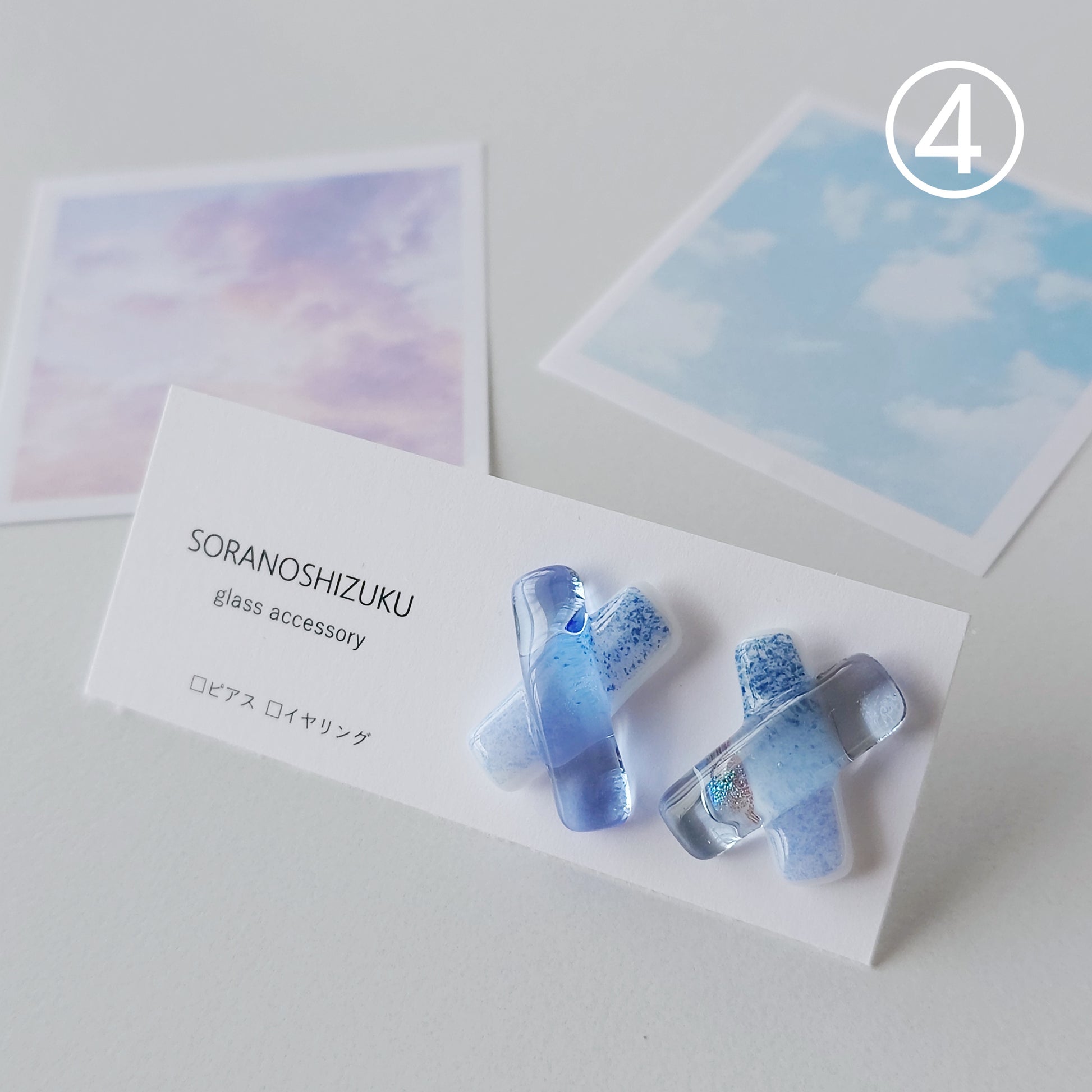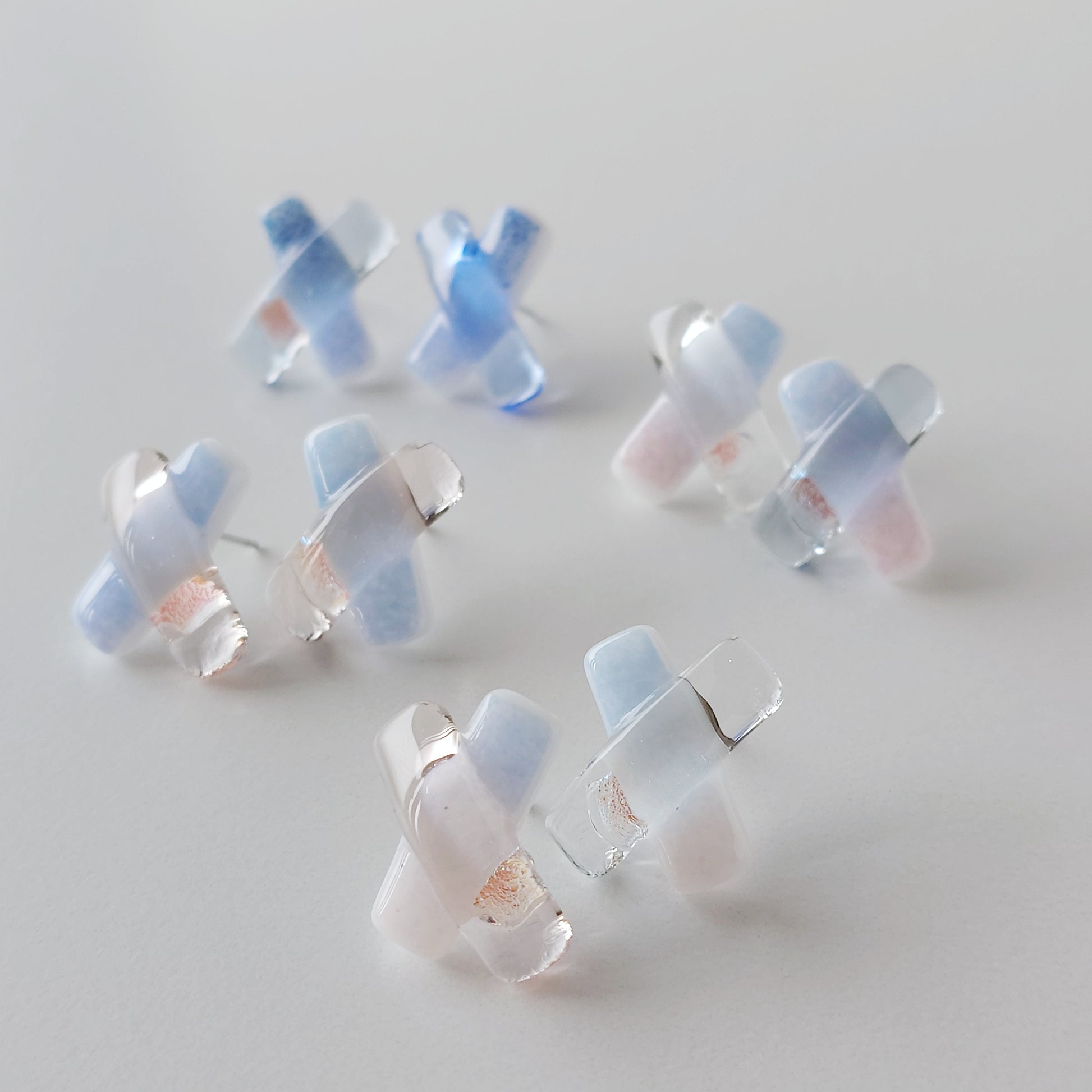 空色ガラスのクロスピアス