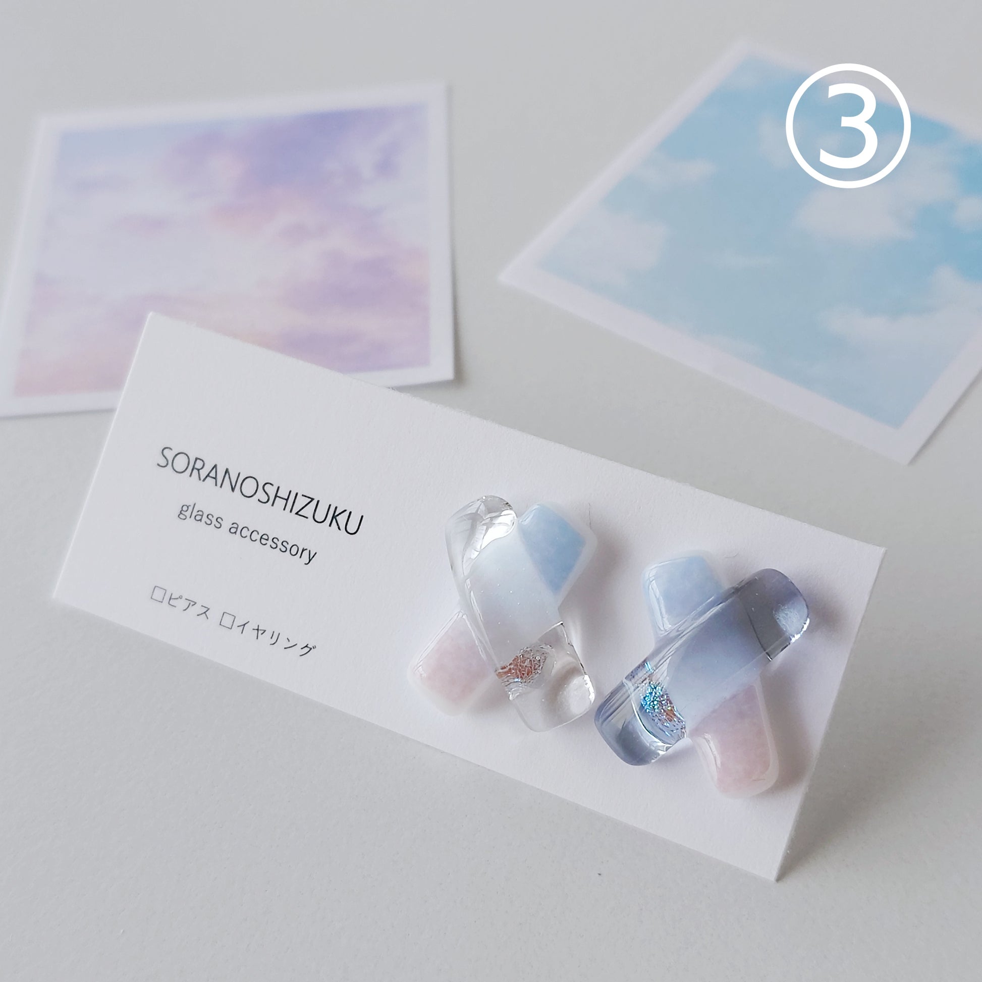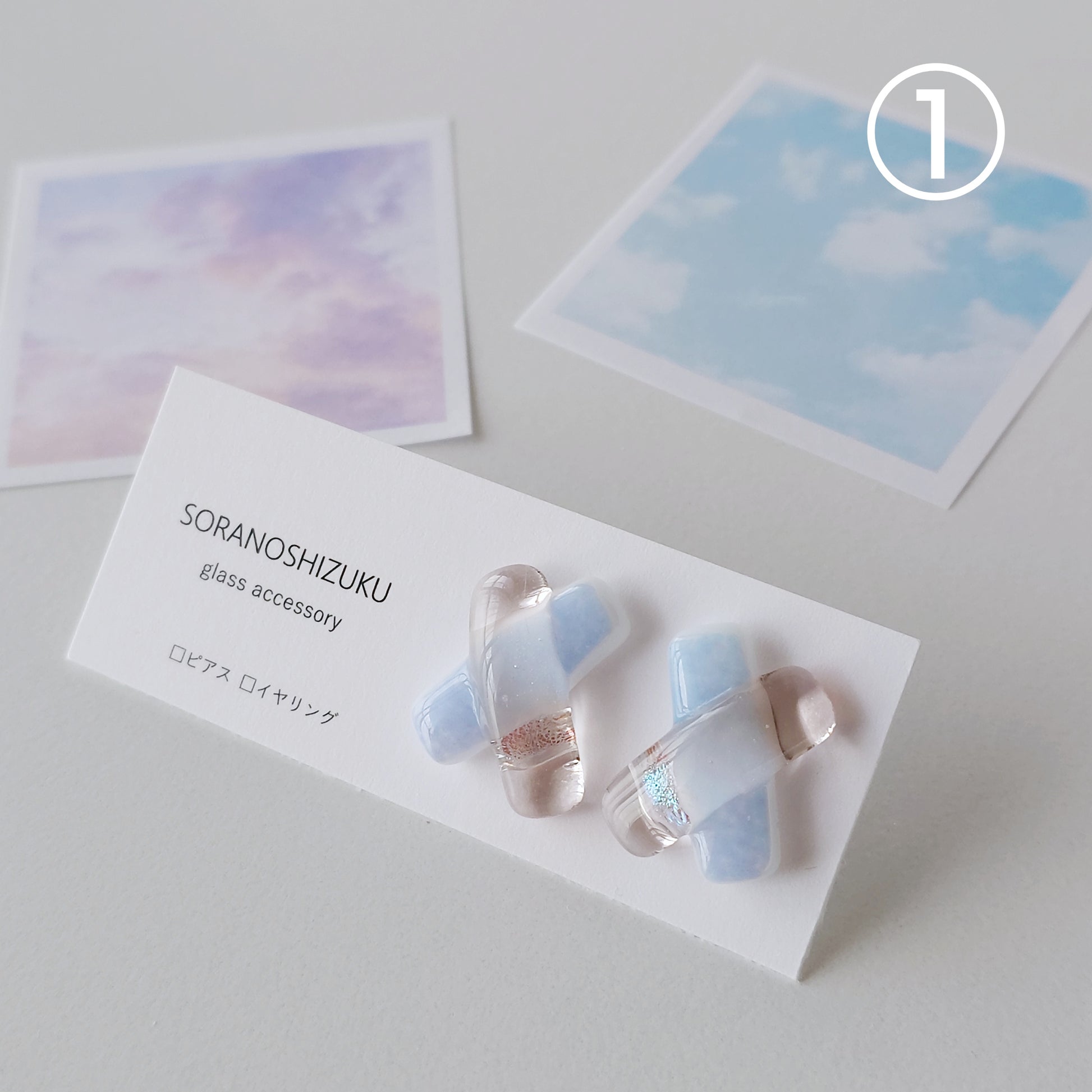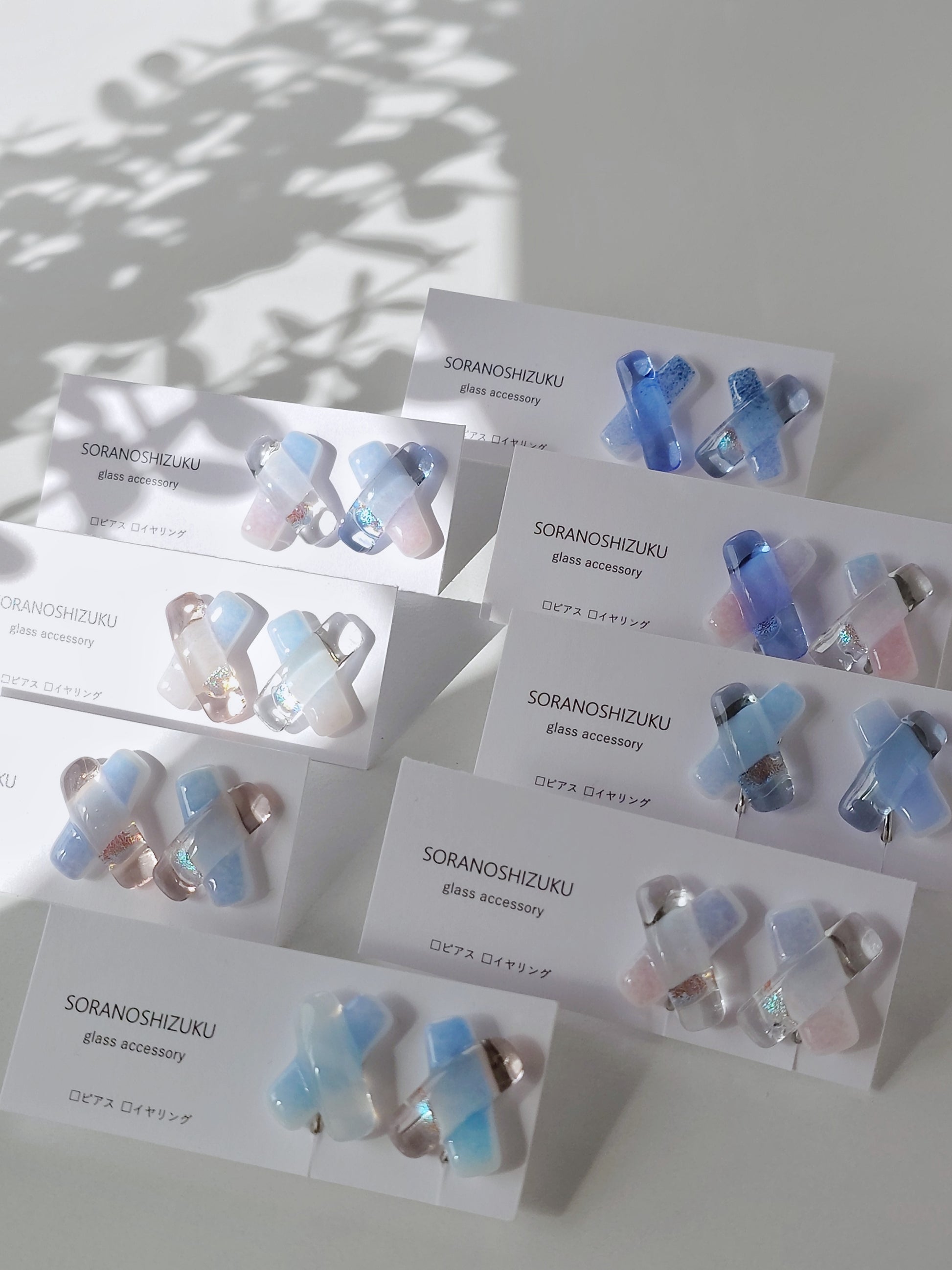 空色ガラスのクロスピアス