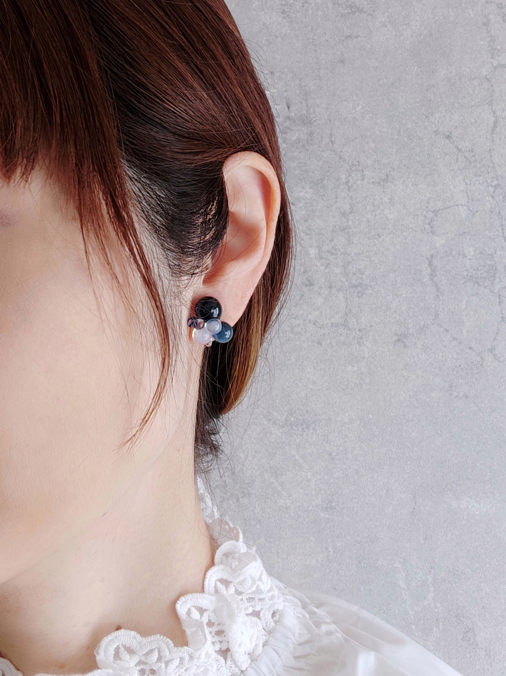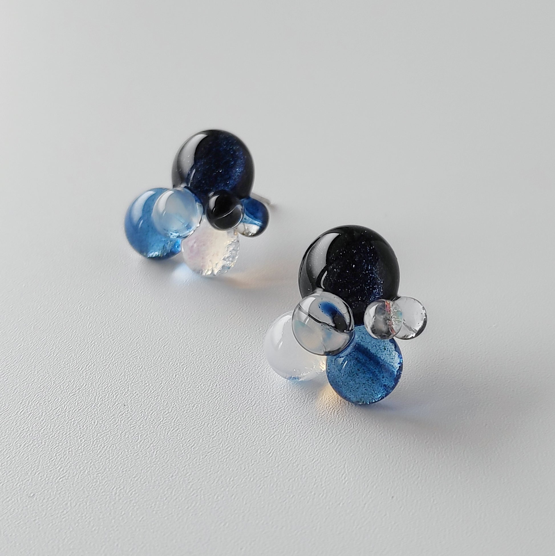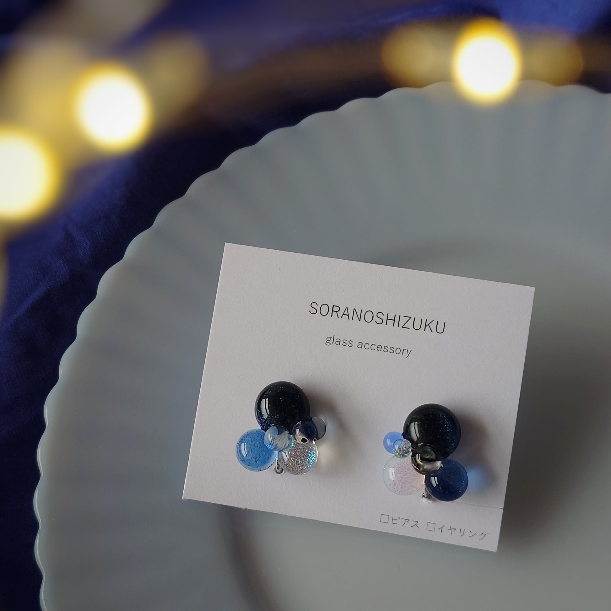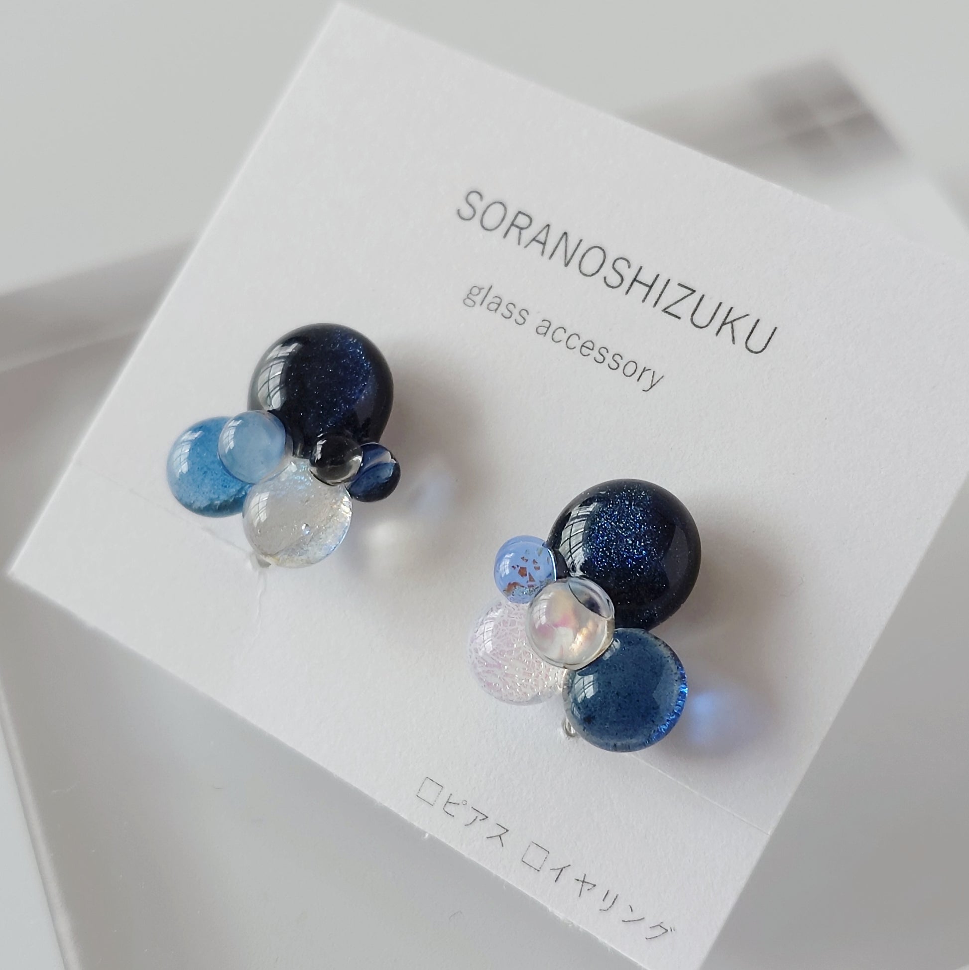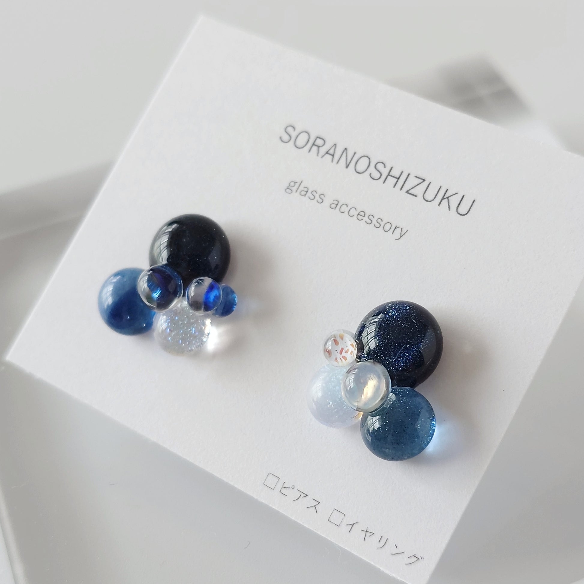 一期一会 ガラスのしずくピアス / イヤリング 夜空とオーロラ