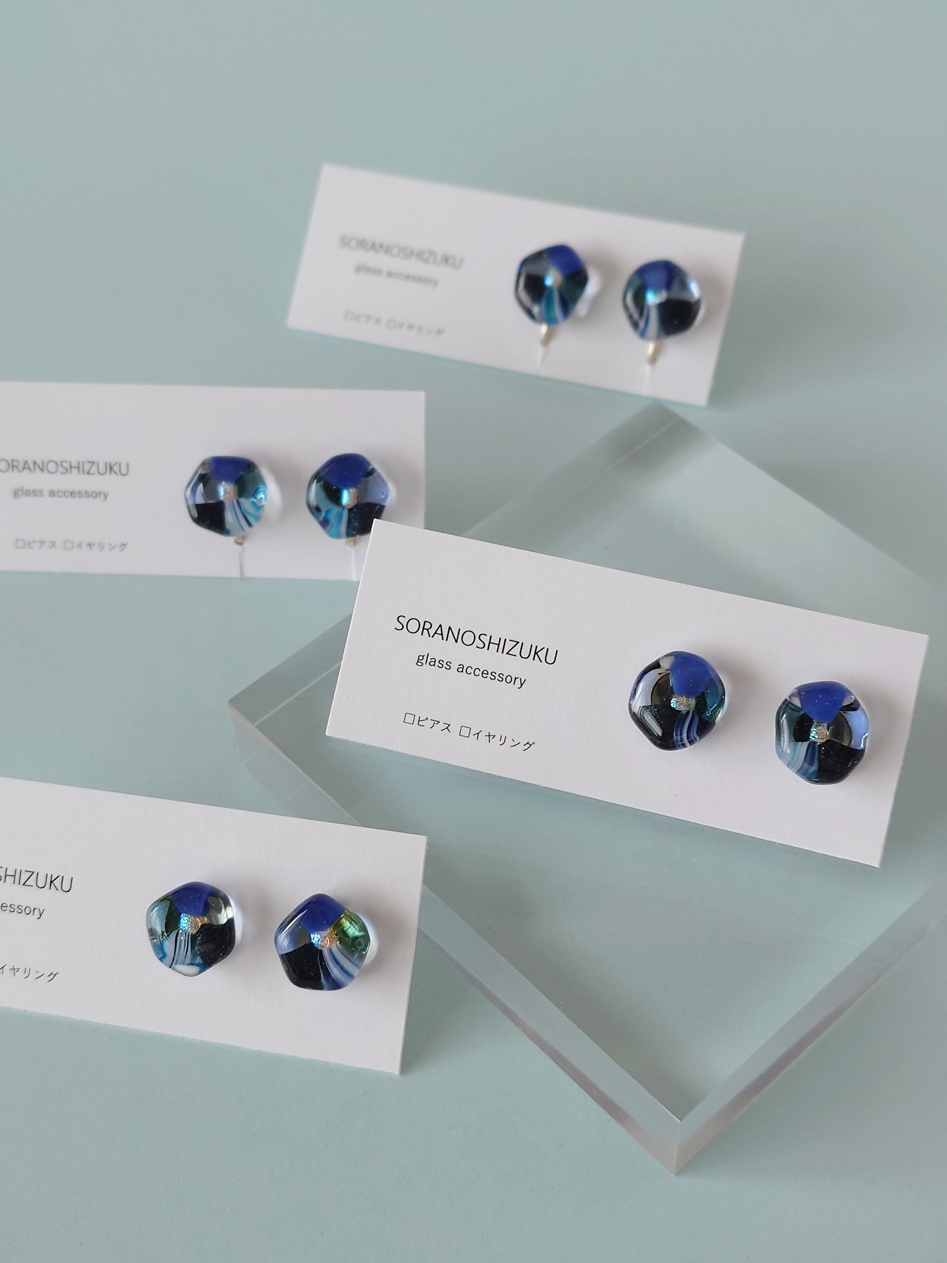 クリアガラスの透明感と様々な夜空色のガラスをお楽しみいただければ幸いです。