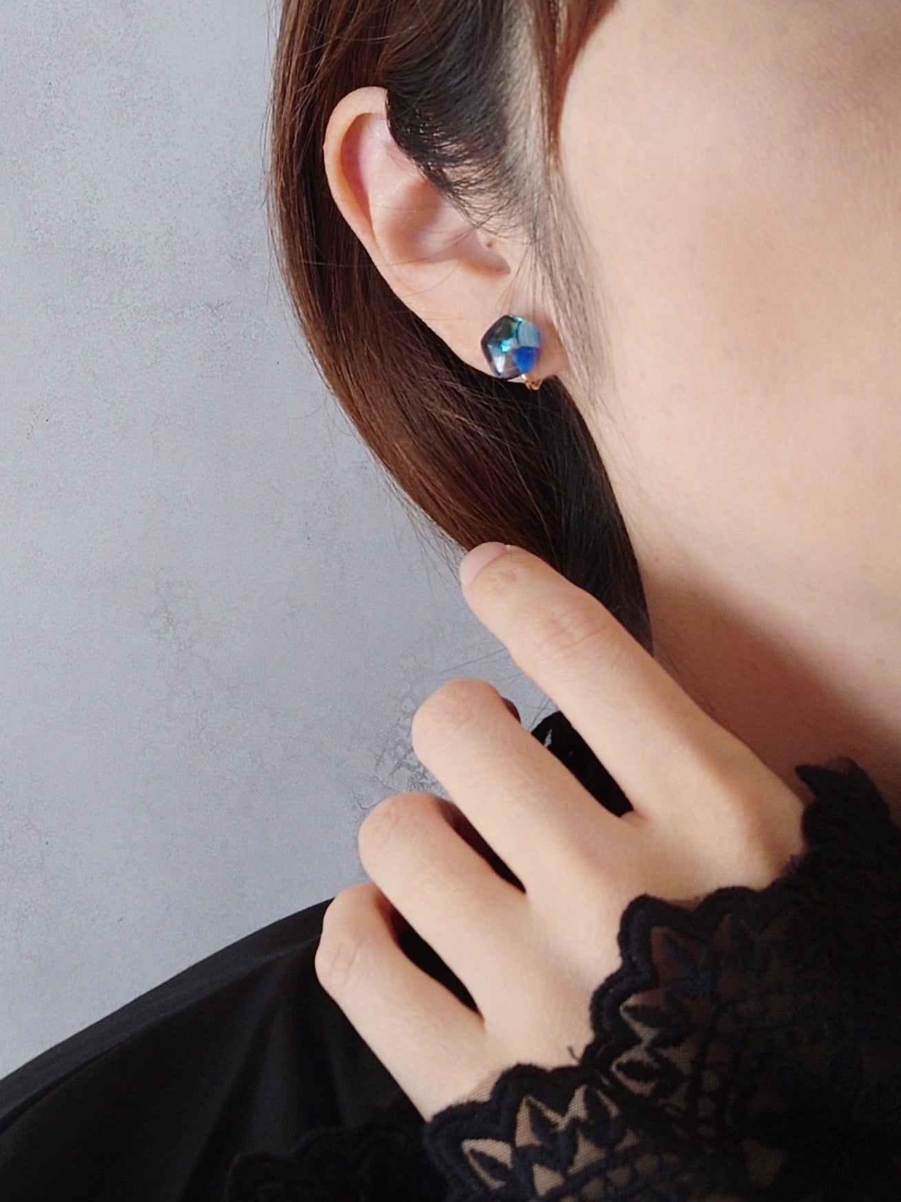 『夜花』mosaic flower ガラスのピアス / イヤリング