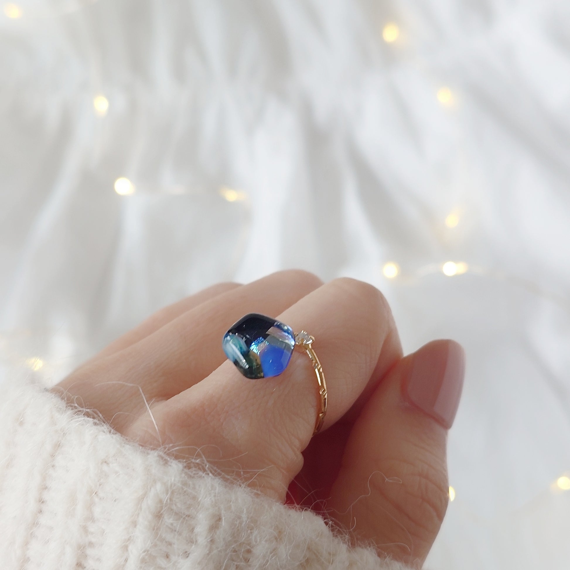 『夜花』mosaic flower ガラスのリング