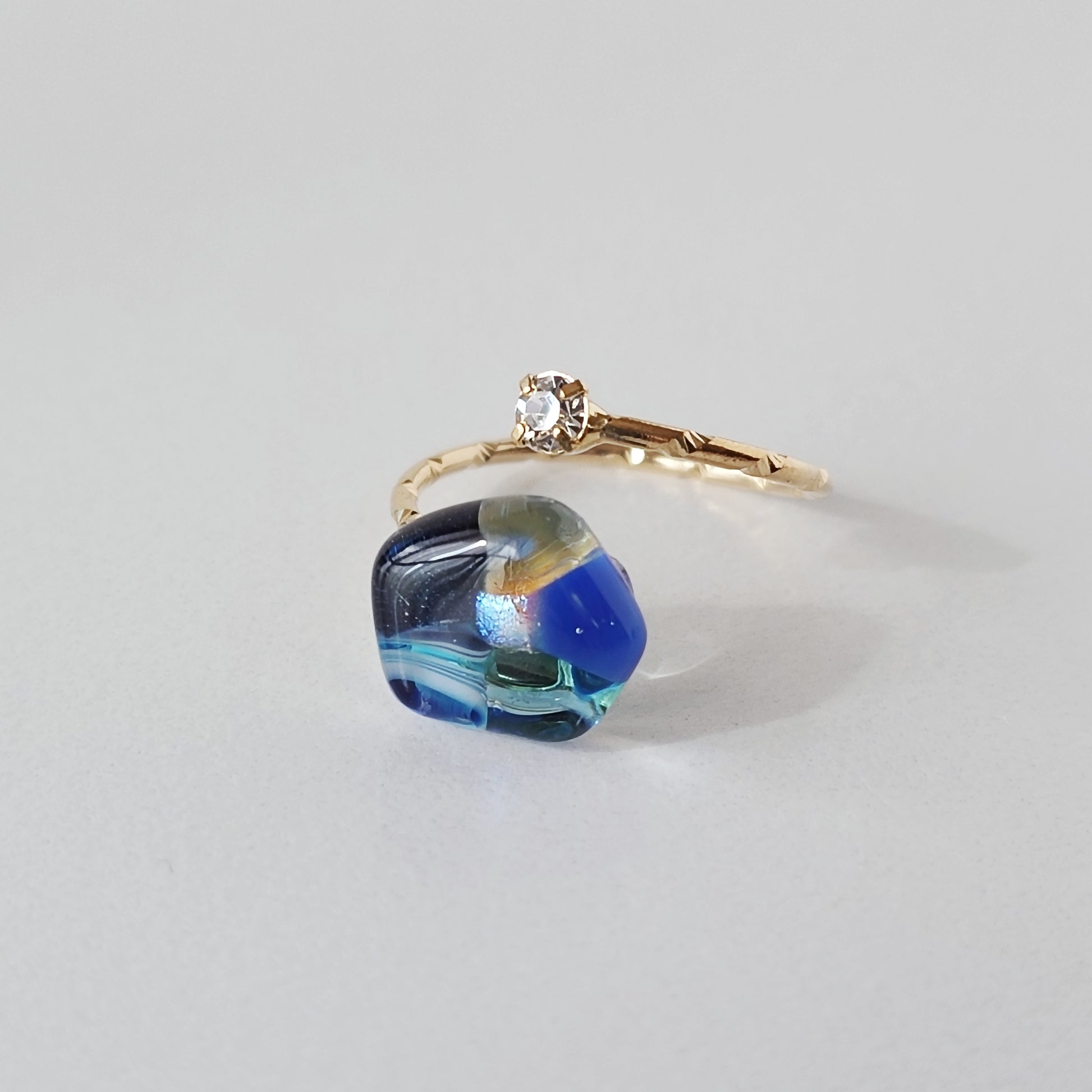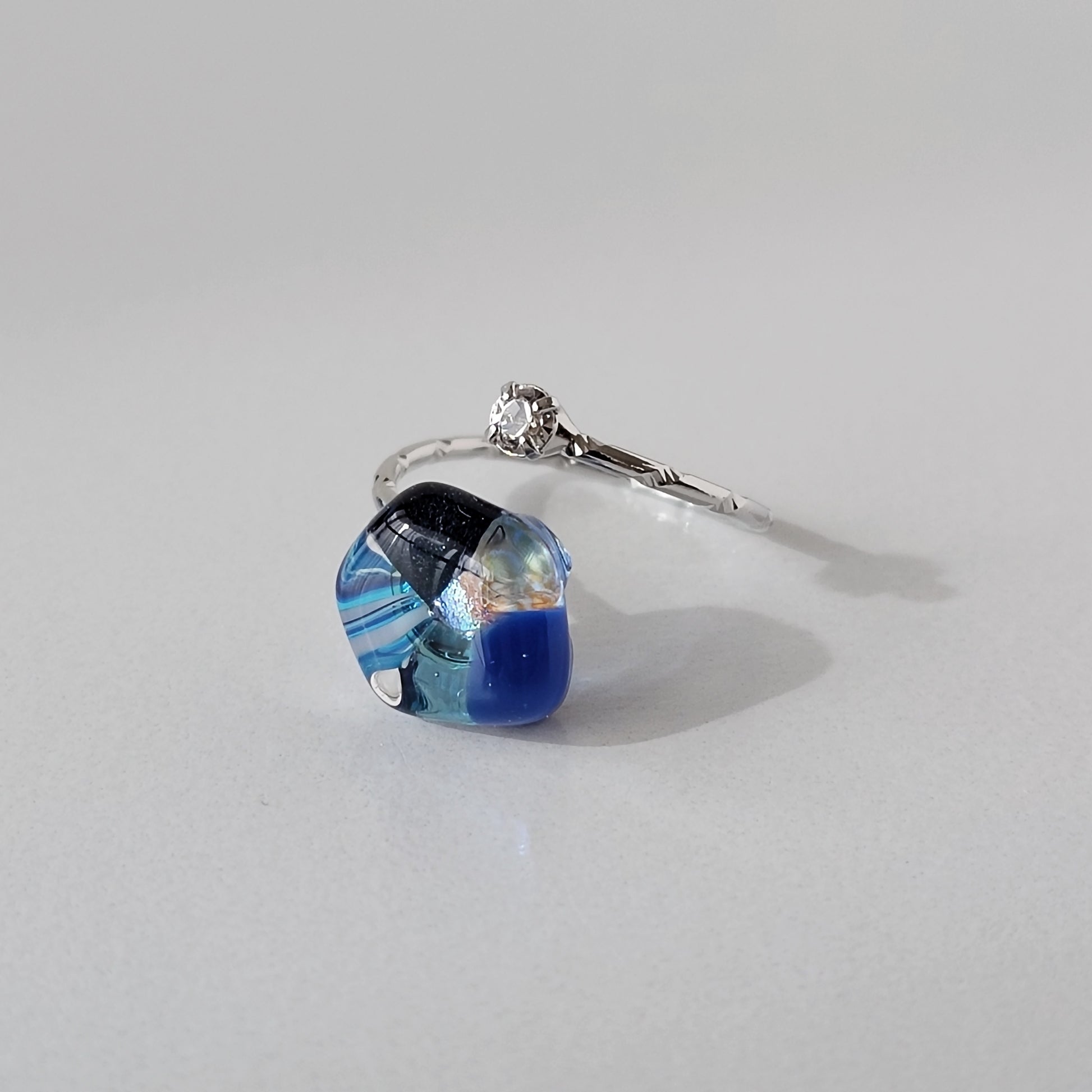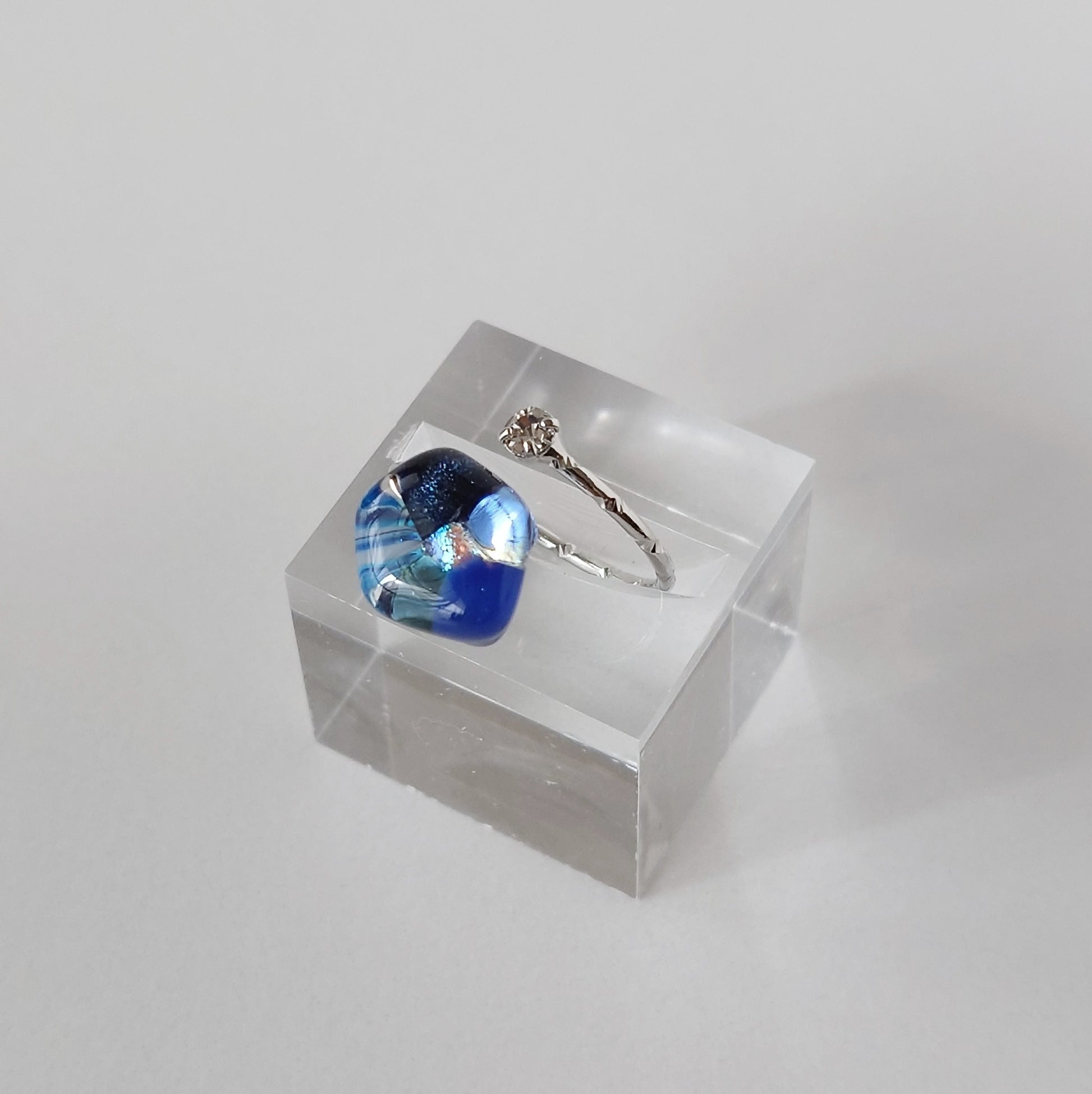 ガラスのカケラをお花のように配置したガラスのリングです。